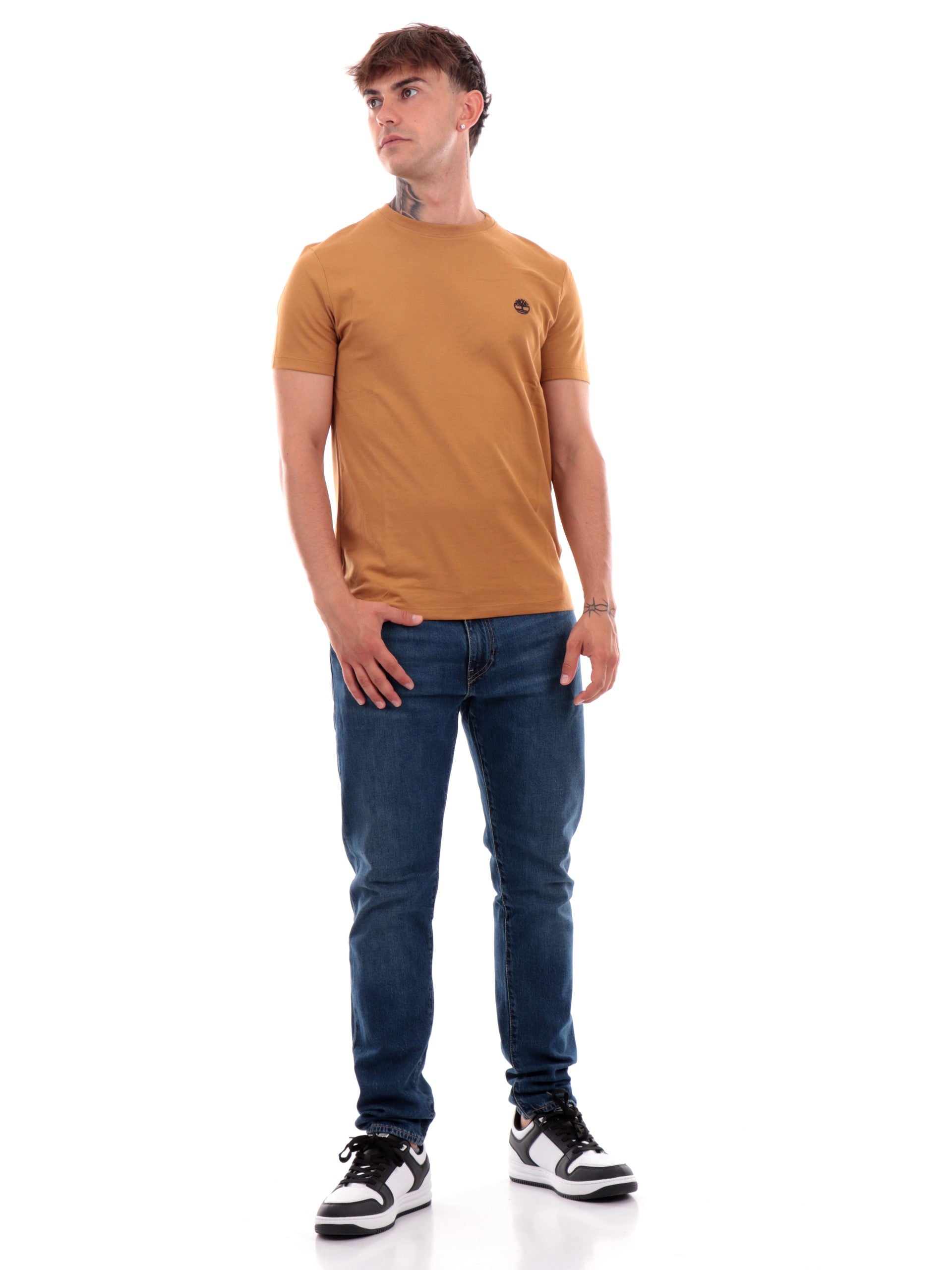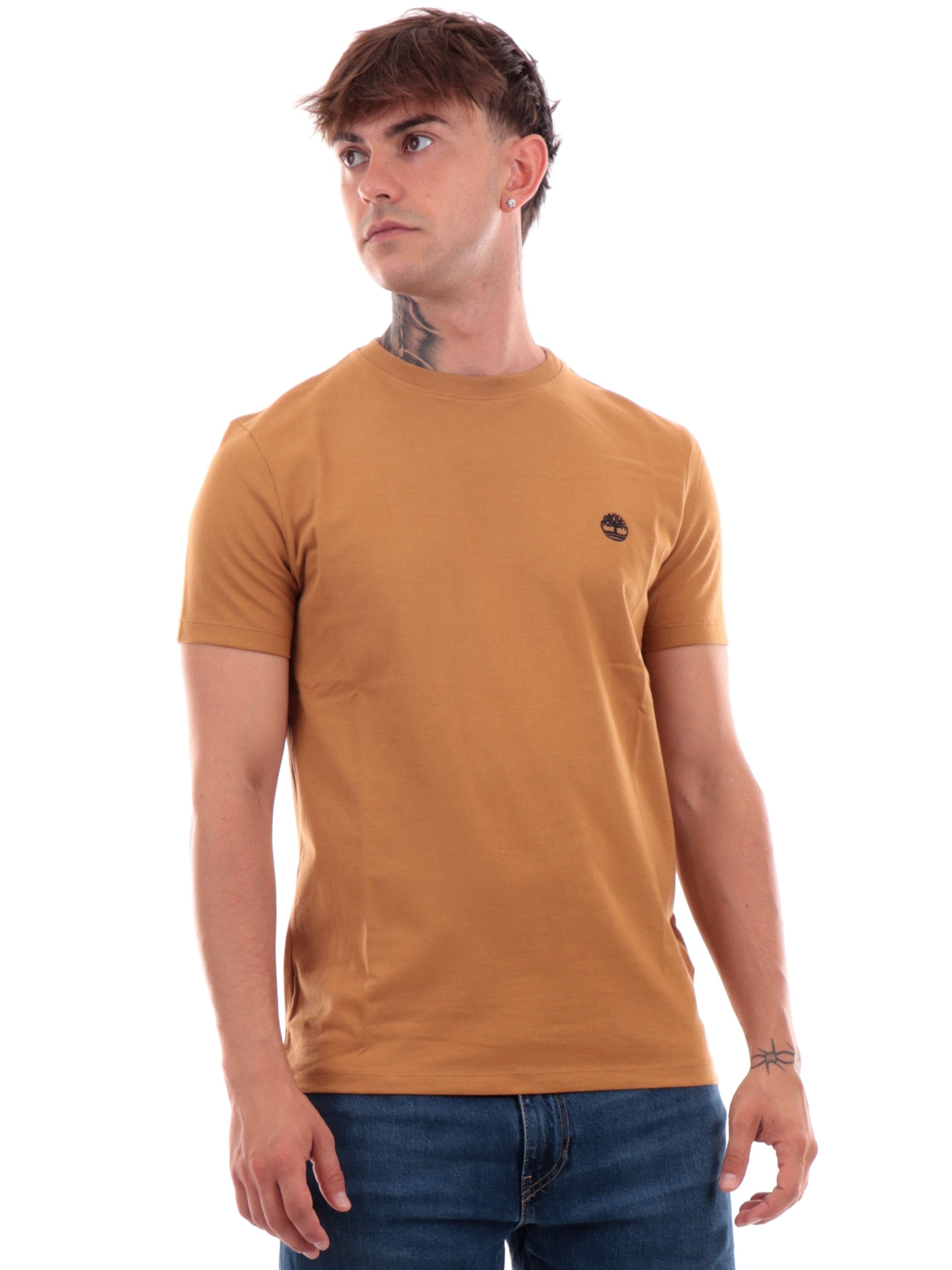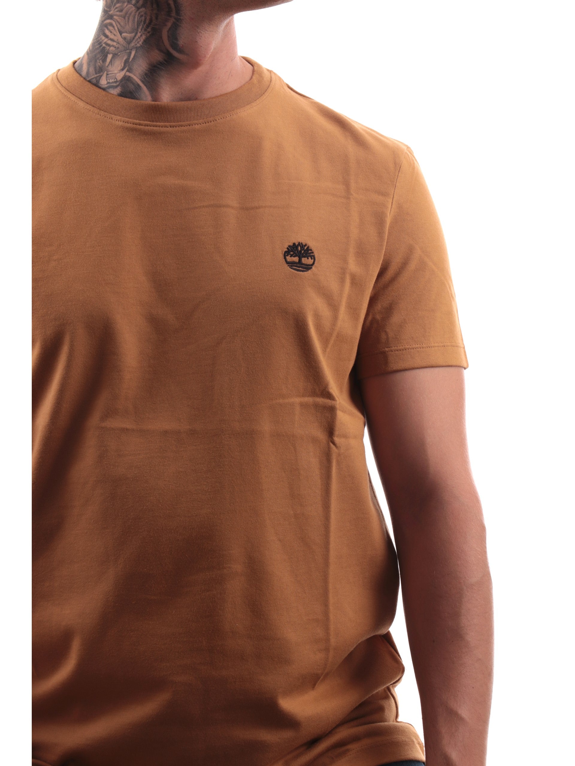 T-shirt Timberland marrone da uomo con logo Dunstan River TB0A2BPR, realizzata in 100% puro cotone. Questa maglia Timberland marrone ha il girocollo realizzato in tessuto a costine, le maniche corte,il fondo regolare e il logo del brand ricamato sul cuore a contrasto colore.