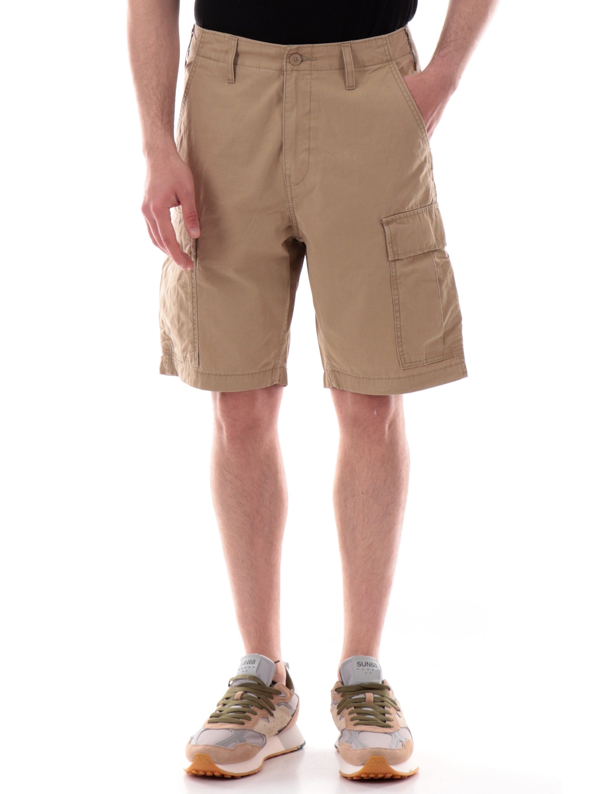 Pantaloncini Levis Cargo marroni da uomo Carrier 001KG00, realizzati in 100% puro cotone. Questi bermuda Levis marroni hanno la chiusura con bottone più zip, due tasche laterali aperte con taglio obliquo, due tasche posteriori con patta, due tasconi e la predisposizione per indossare la cintura.