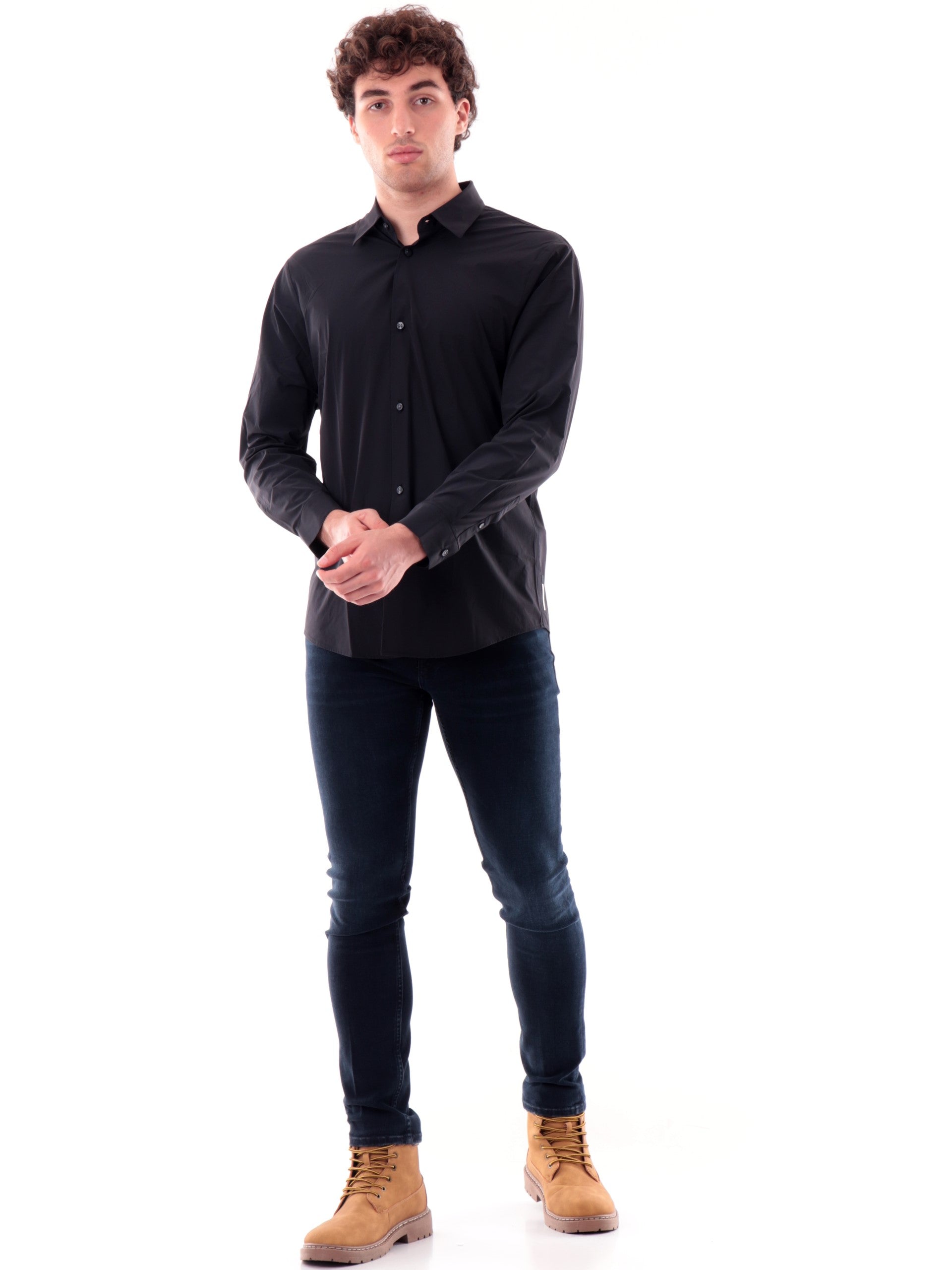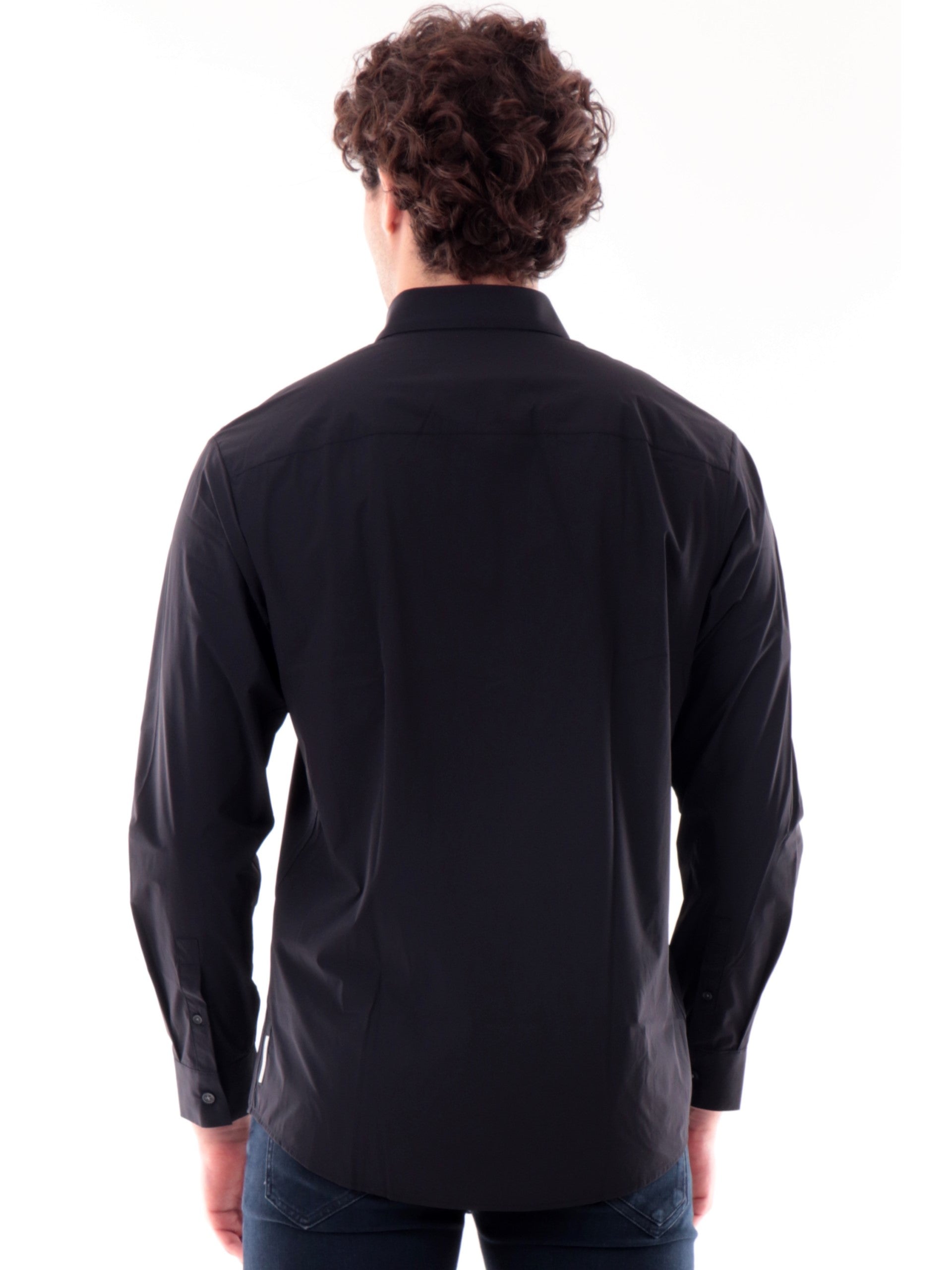 Camicia Armani Exchange AX blu da uomo tessuto tecnico XM001567AF19193. Questa camicia AX blu ha il colletto alla francese, le maniche lunghe con polsini, la chiusura con bottoni e il patch AX cucitosul fondo.