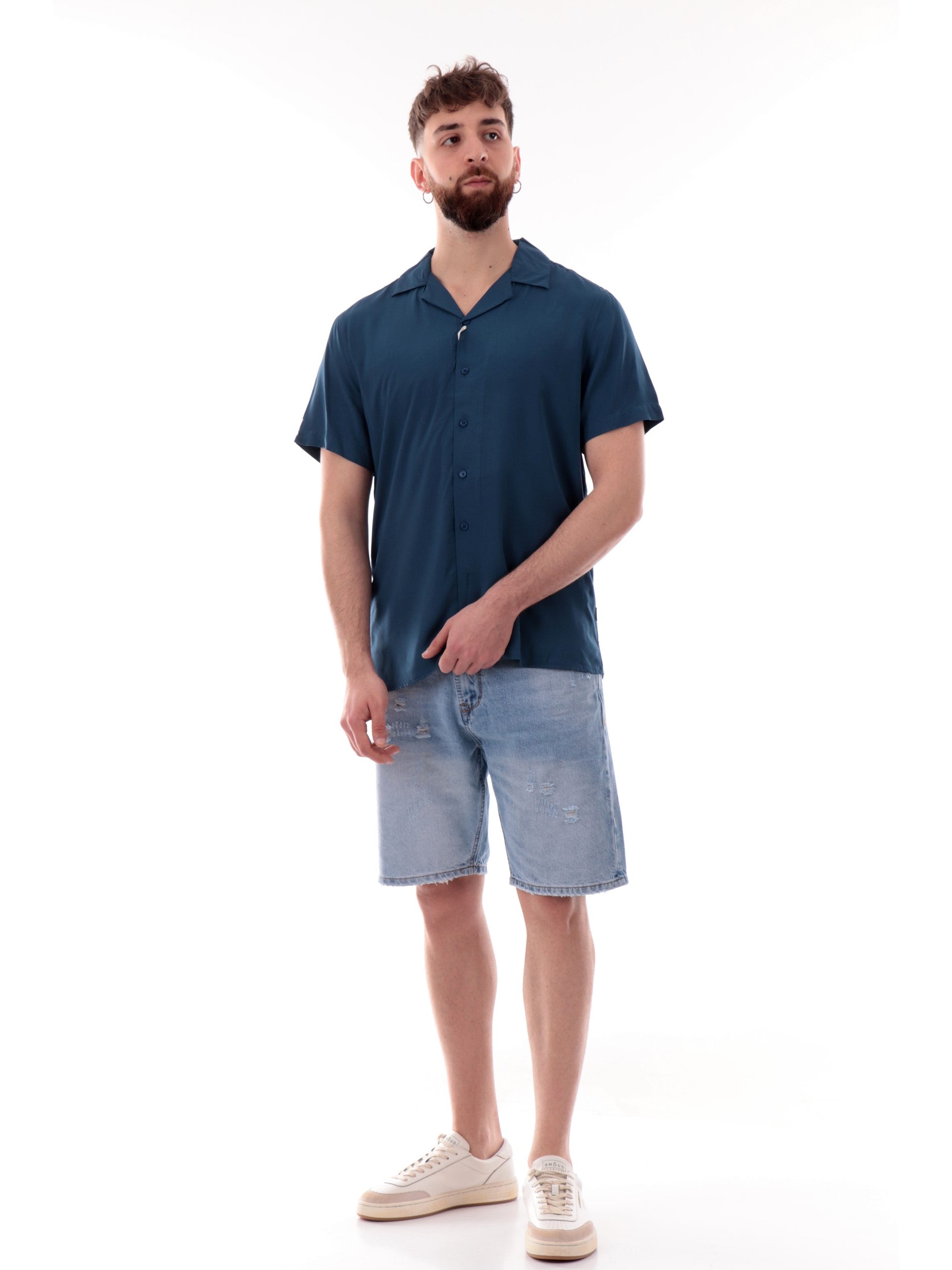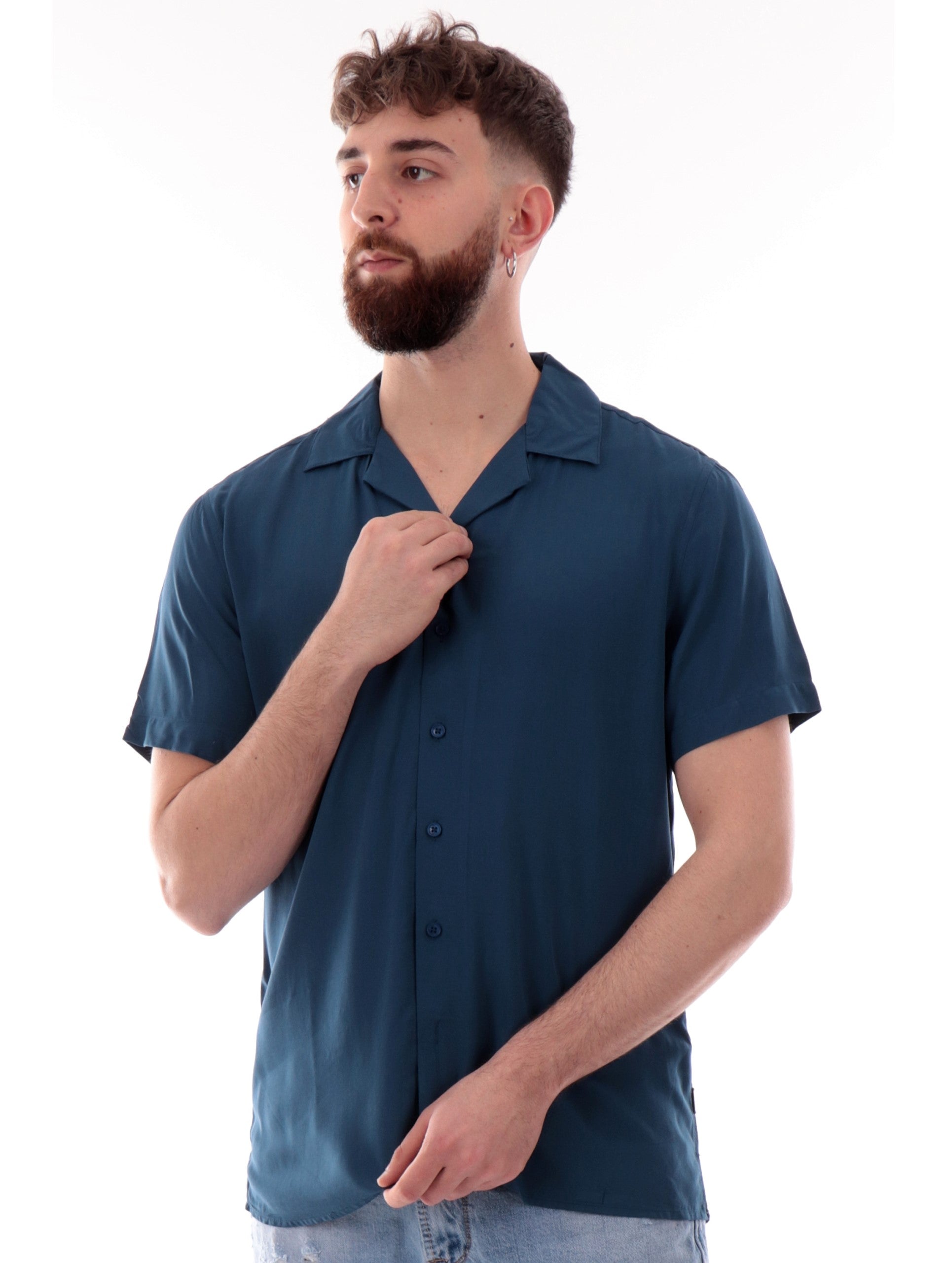 Camicia Gianni Lupo Hawaiana blu da uomo scollo a V GL7678SS25