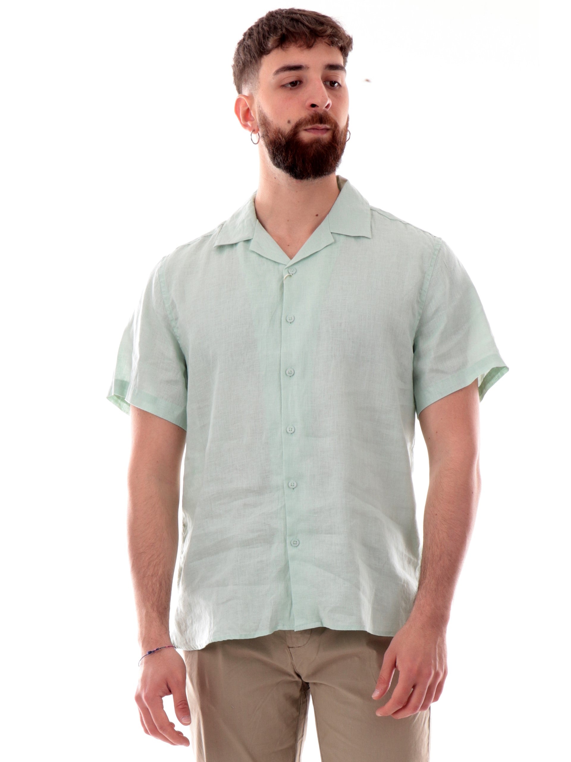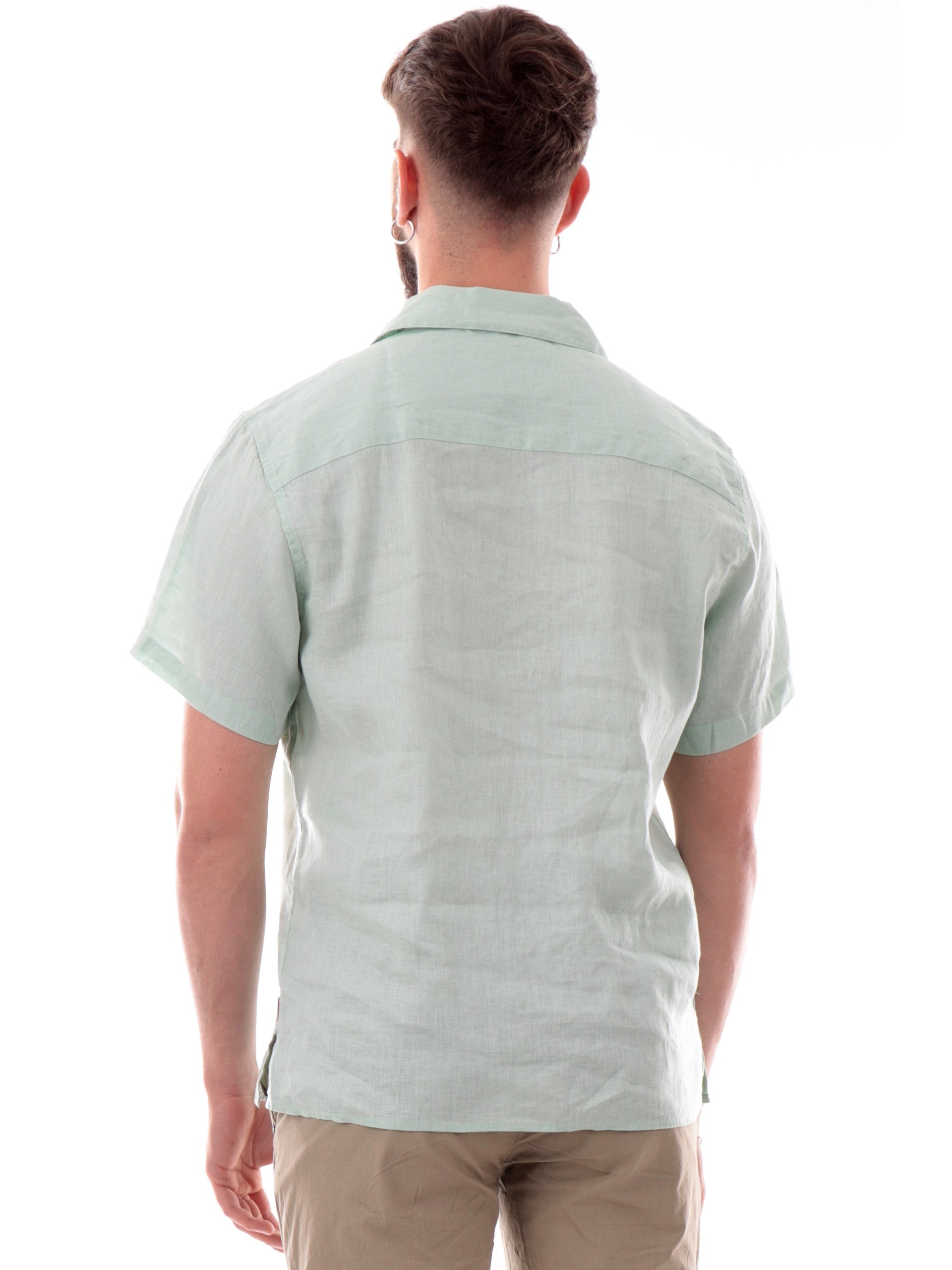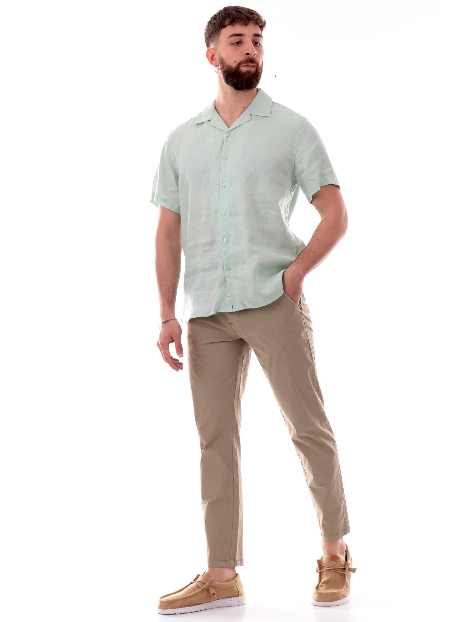Camicia hawaiana Gianni Lupo verde da uomo in lino scollo a V GL7658SS25