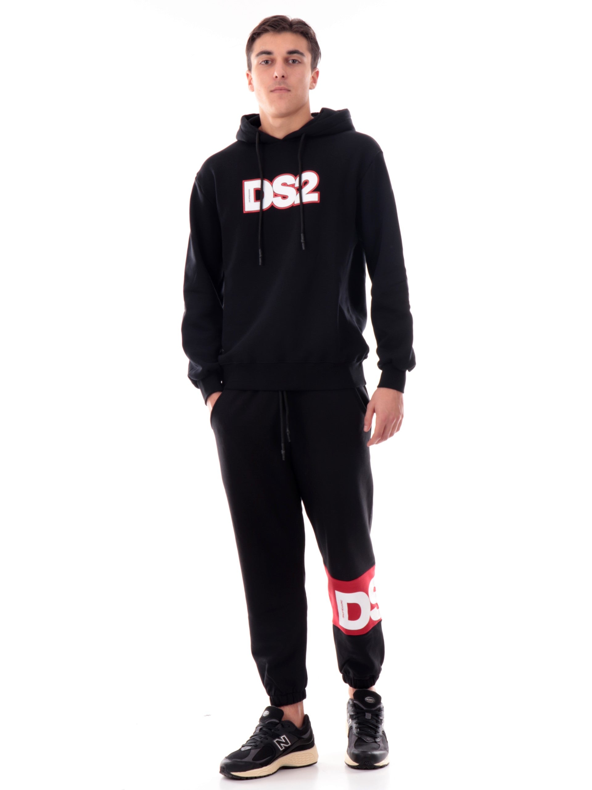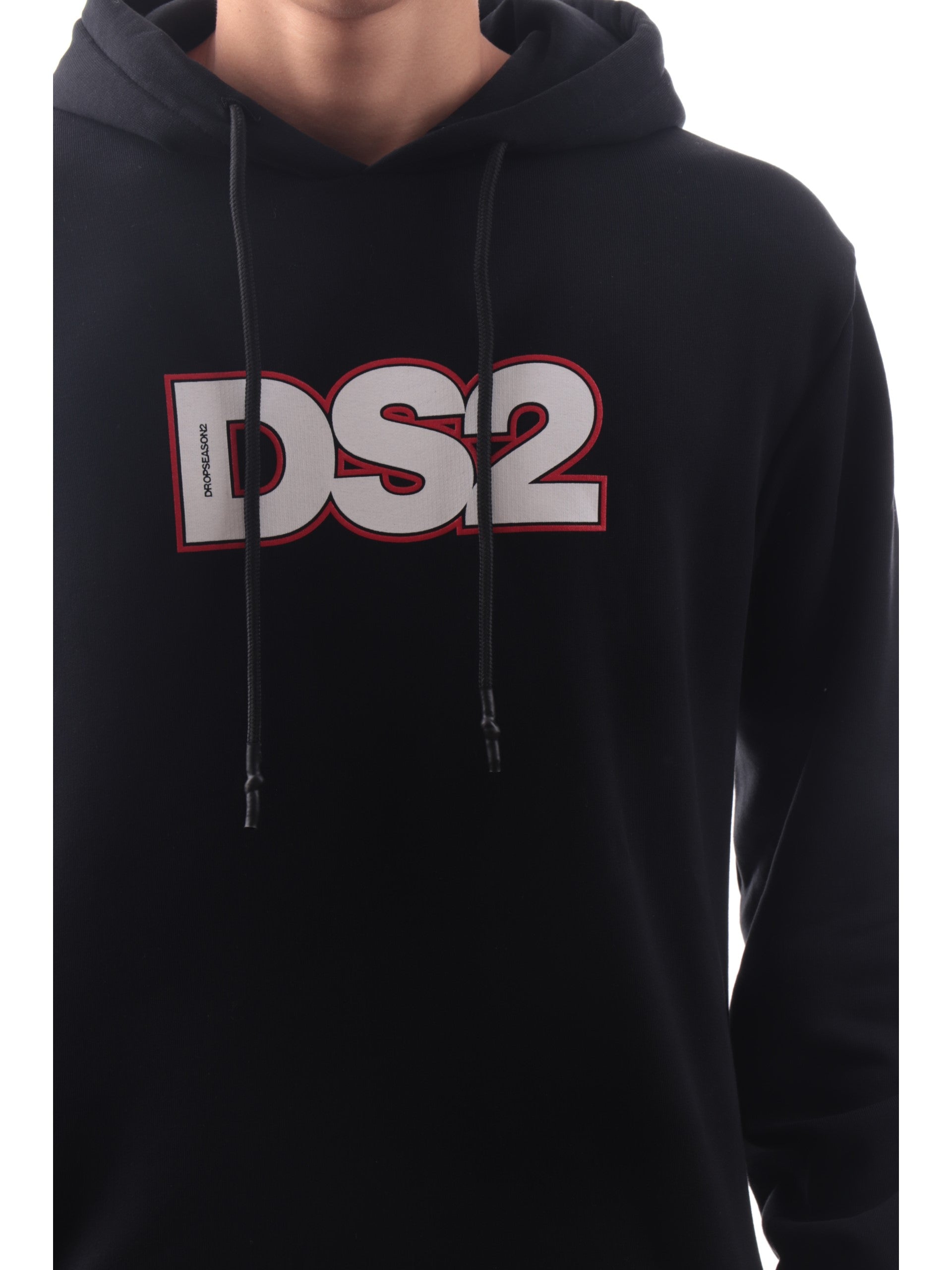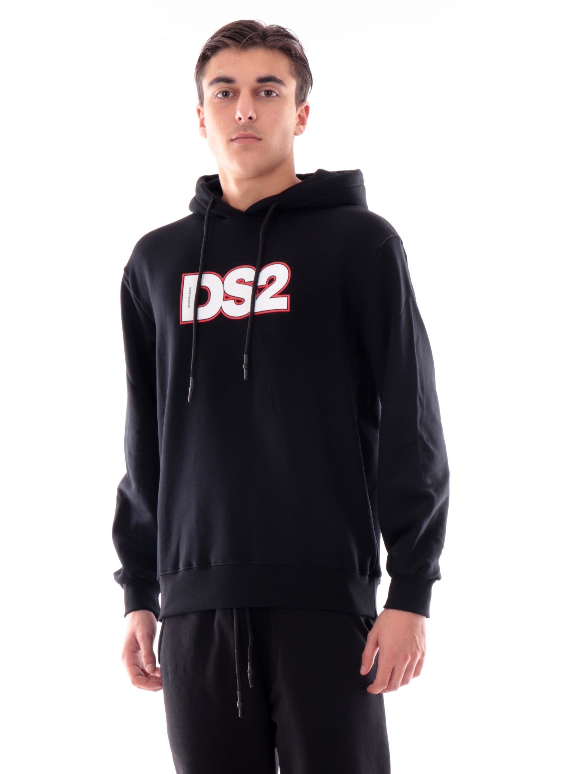 Felpa DS2 con cappuccio da uomo nera felpata. Questa felpa DS2 da uomo è realizzata da 100% in puro cotone ed è caratterizzata da un cappuccio con lacci regolabili, la maxi scritta DS2 centrale, polsini e fondo elasticizzati. Questa felpa grazie al tessuto interno felpato è perfetto per la stagione invernale