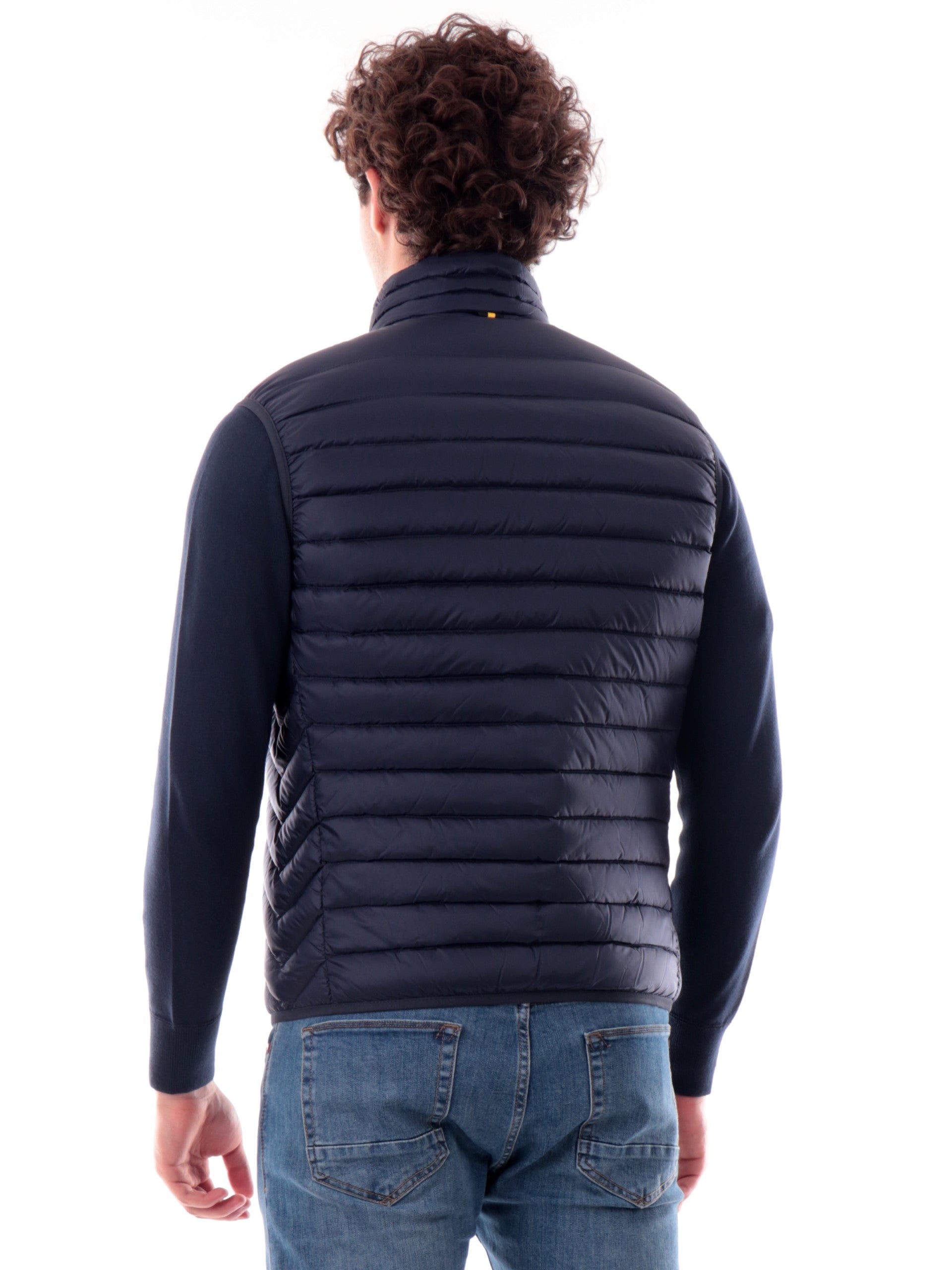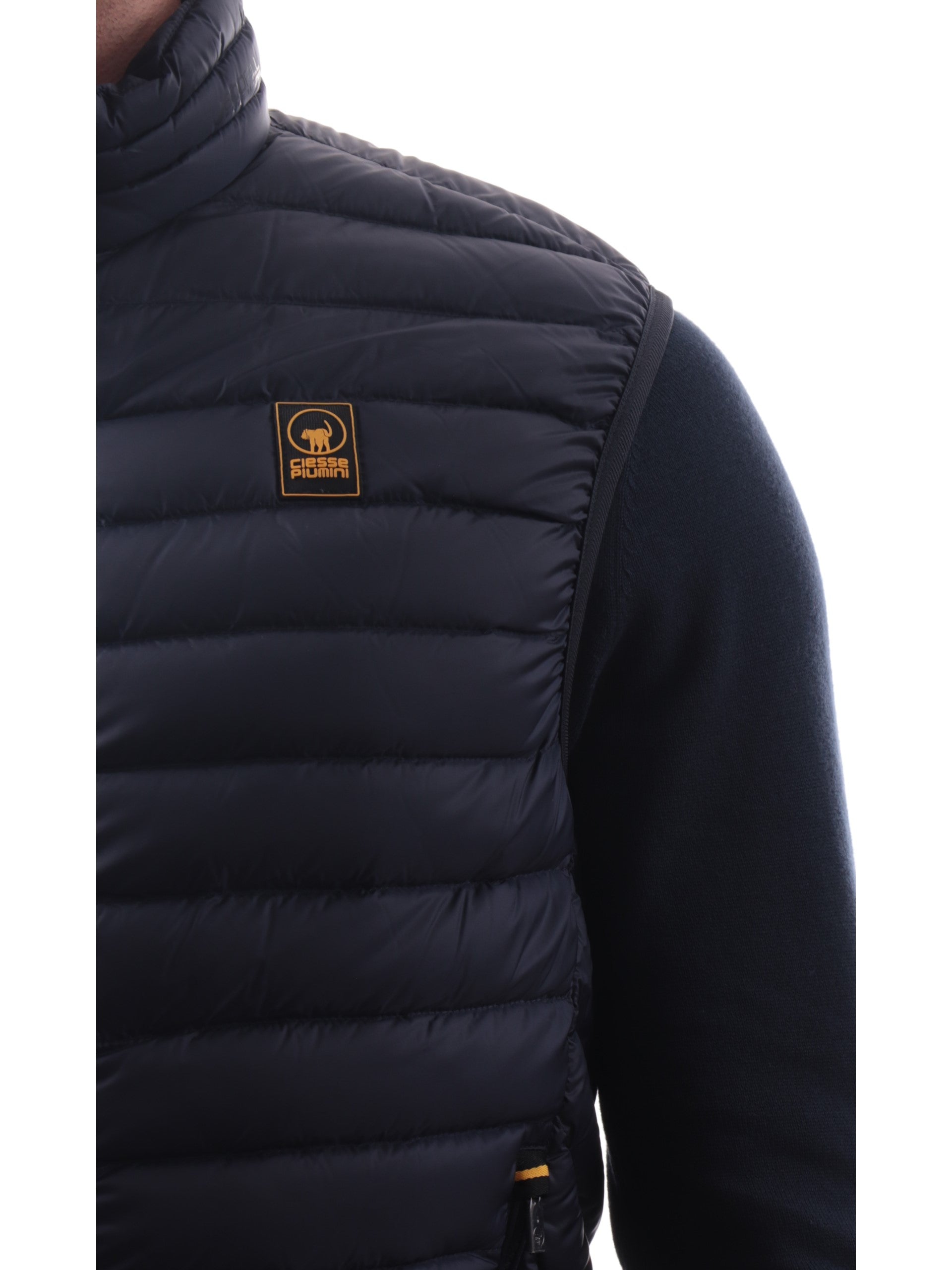 Gilet Ciesse Piumini blu Astor 3.0 da uomo full zip MV20049N3N11D, realizzato con imbottitura in piuma naturale. Questo gilet uomo Ciesse ha la chiusura full zip centrale con doppio cursore, due tasche laterali con zip, il fondo elasticizzato e il patch Ciesse gommato applicato lato cuore.