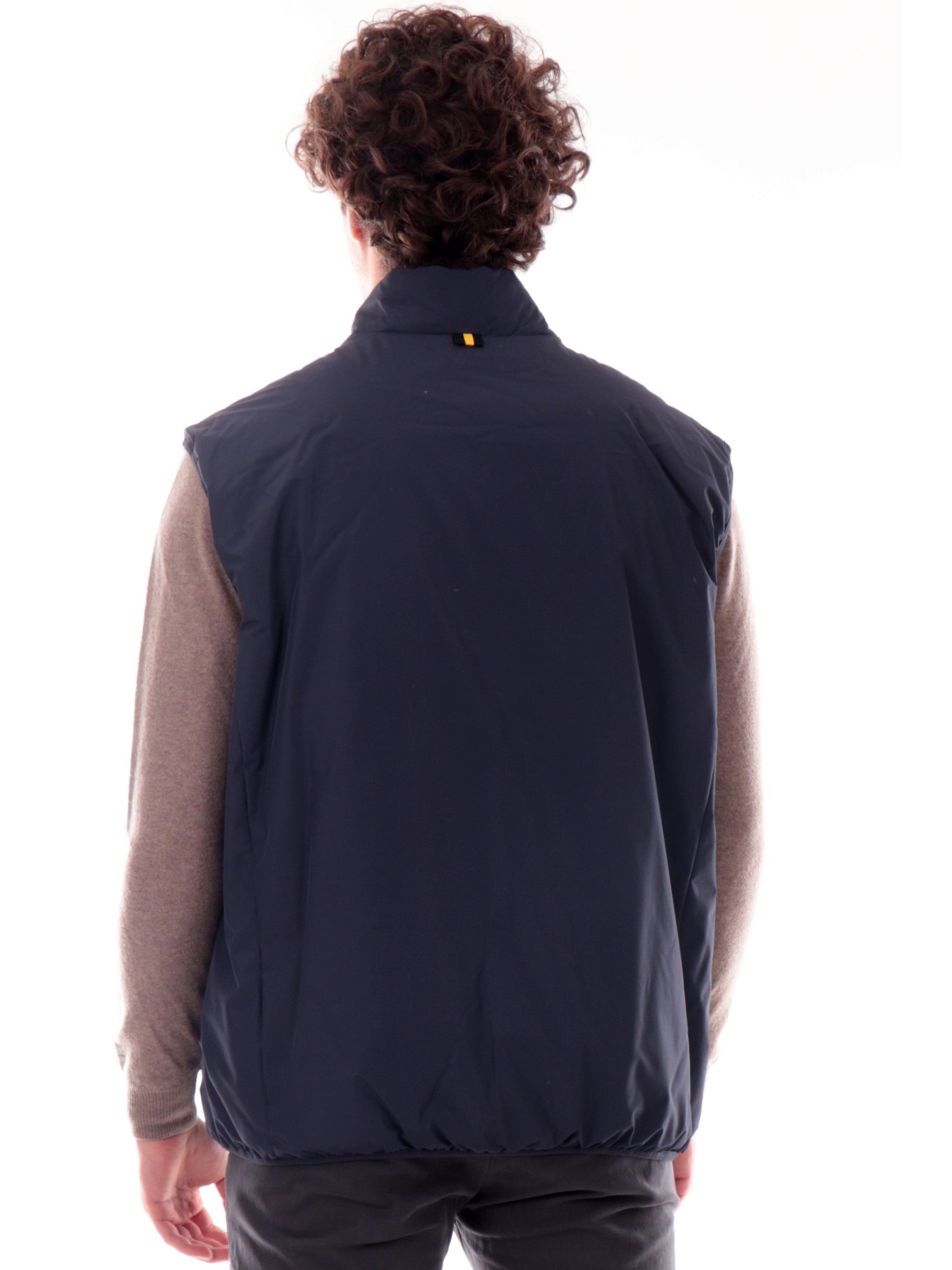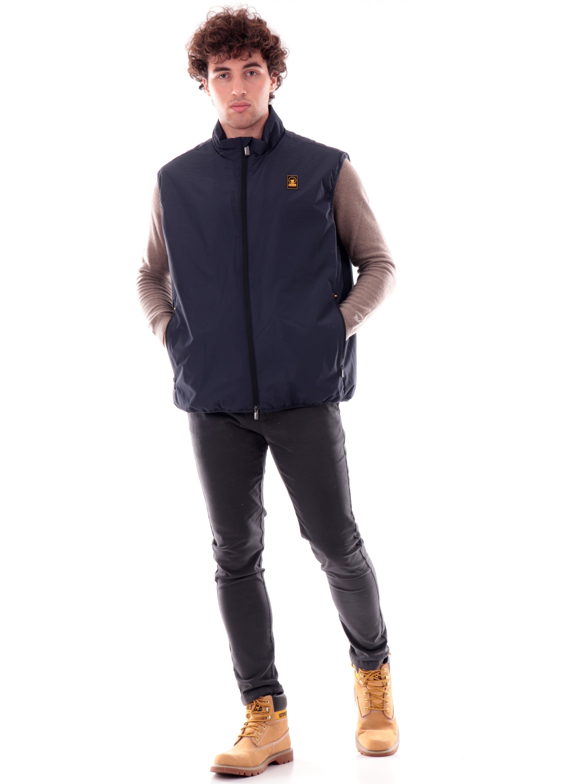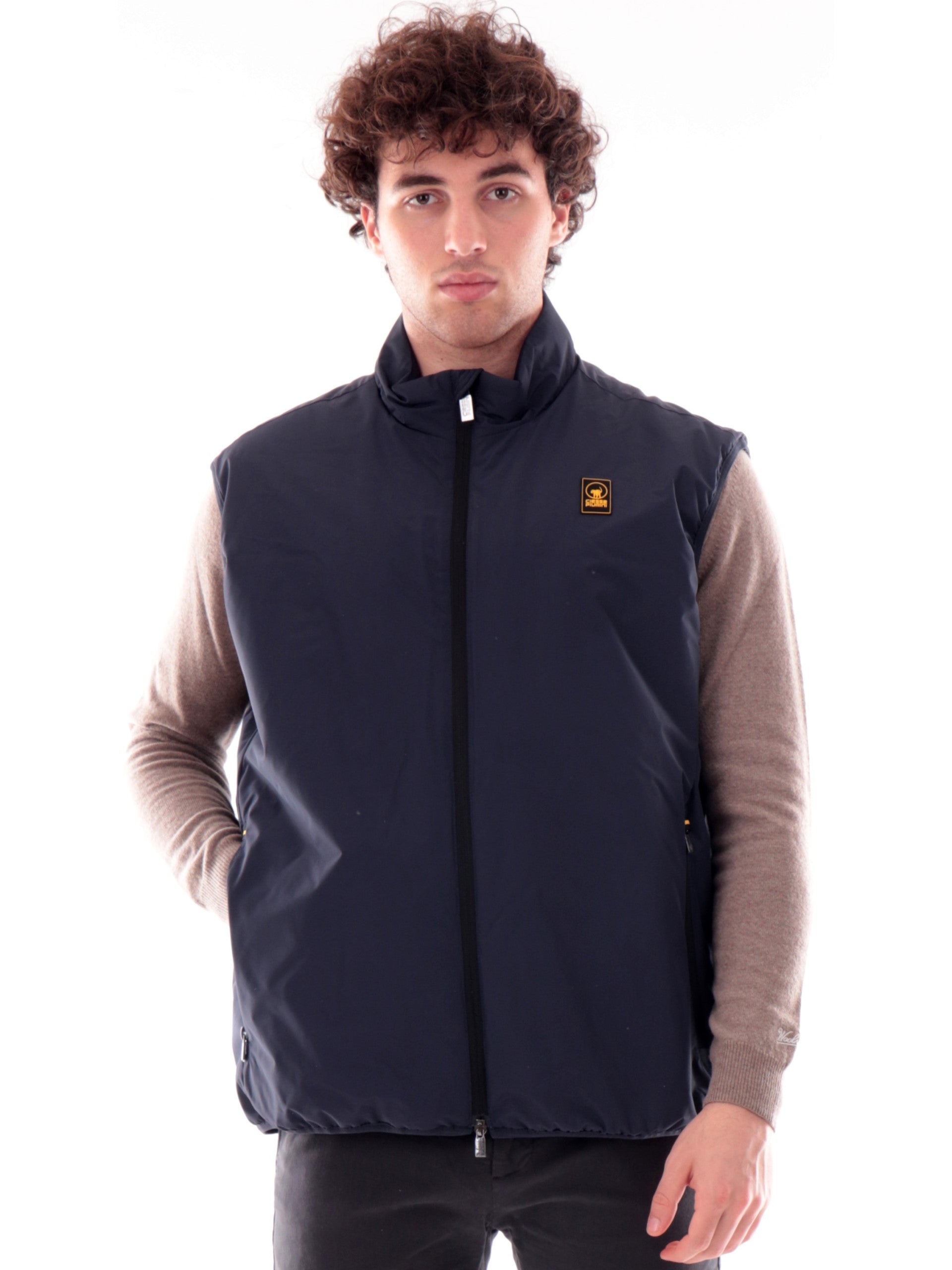 Gilet ciesse Piumini blu da uomo Verry. Questo gilet Ciesse blu realizzato in tessuto impermeabile, resistente all'acqua e antivento è perfetto per le giornate piovose. Questo gilet uomo Ciesse ha lachiusura full zip centrale con doppio cursore, due tasche laterali con zip, il fondo elasticizzato e il patch Ciesse gommato applicato lato cuore.