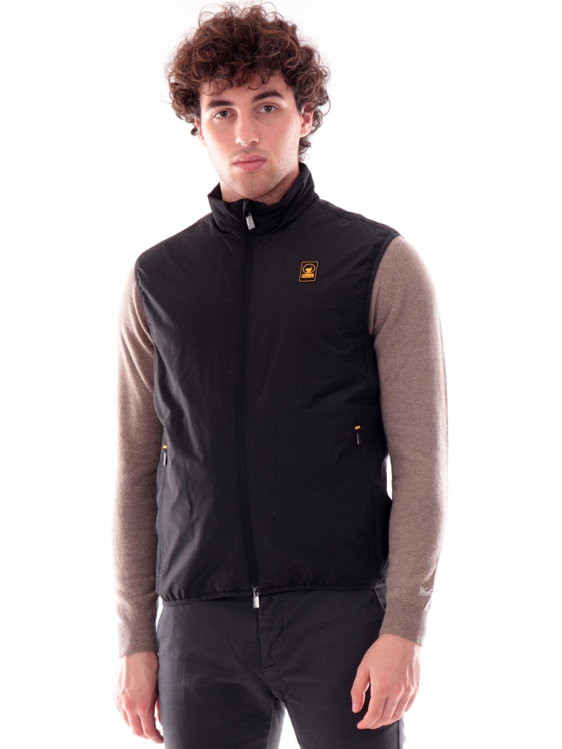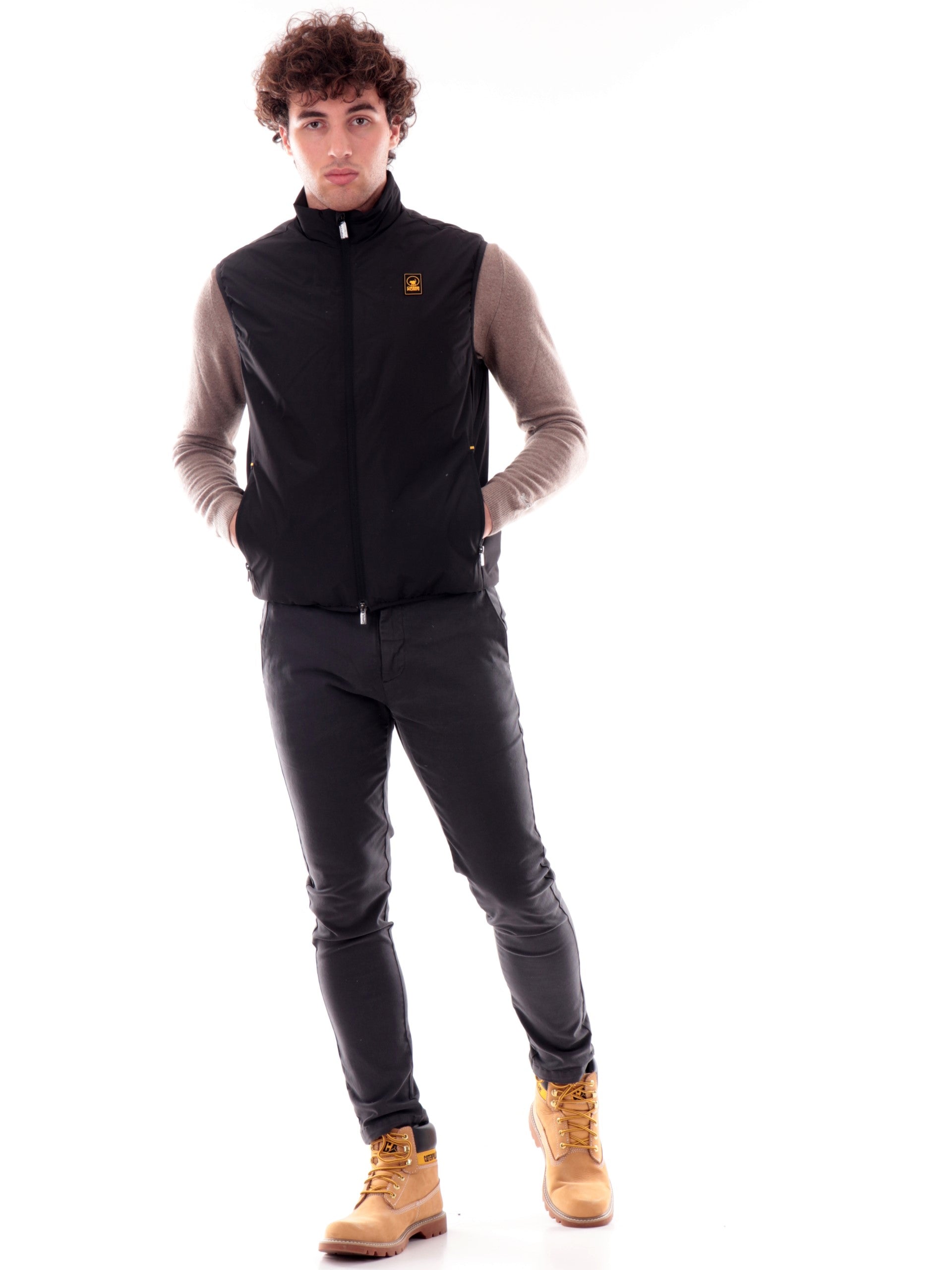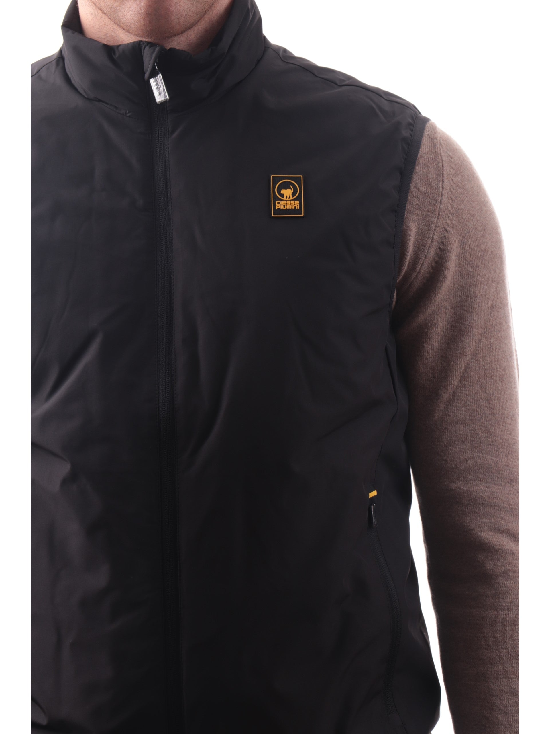 Gilet ciesse Piumini nero da uomo Verry. Questo gilet Ciesse nero realizzato in tessuto impermeabile, resistente all'acqua e antivento è perfetto per le giornate piovose. Questo gilet uomo Ciesse ha la chiusura full zip centrale con doppio cursore, due tasche laterali con zip, il fondo elasticizzato e il patch Ciesse gommato applicato lato cuore.
