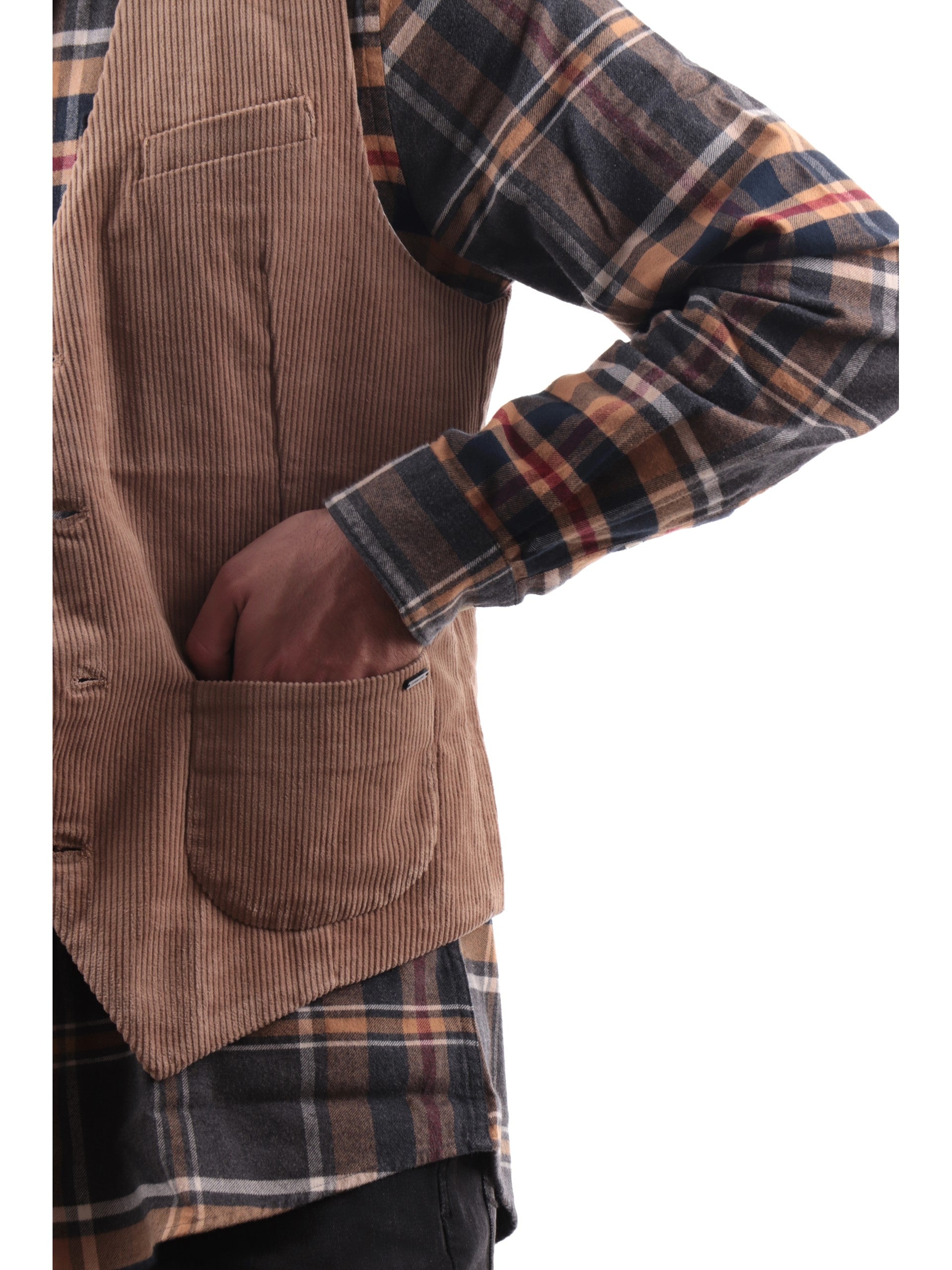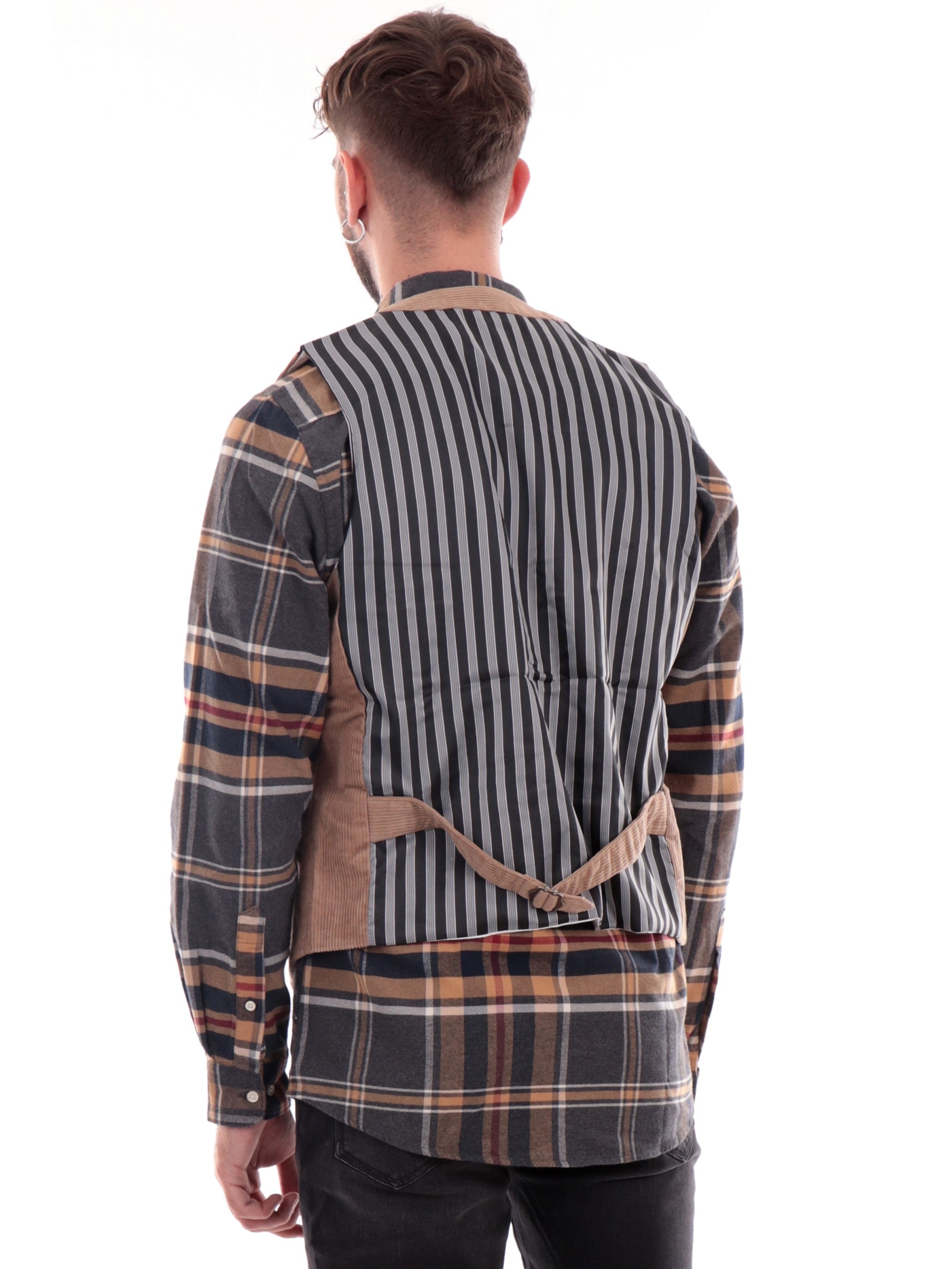 Gilet Gianni Lupo marrone da uomo elegante GL5159BD, realizzato in velluto. Questo gilet elegante Gianni Lupo ha la chiusura con bottoni, due taschini frontali a filo e il lato posteriore regolabile a righe.