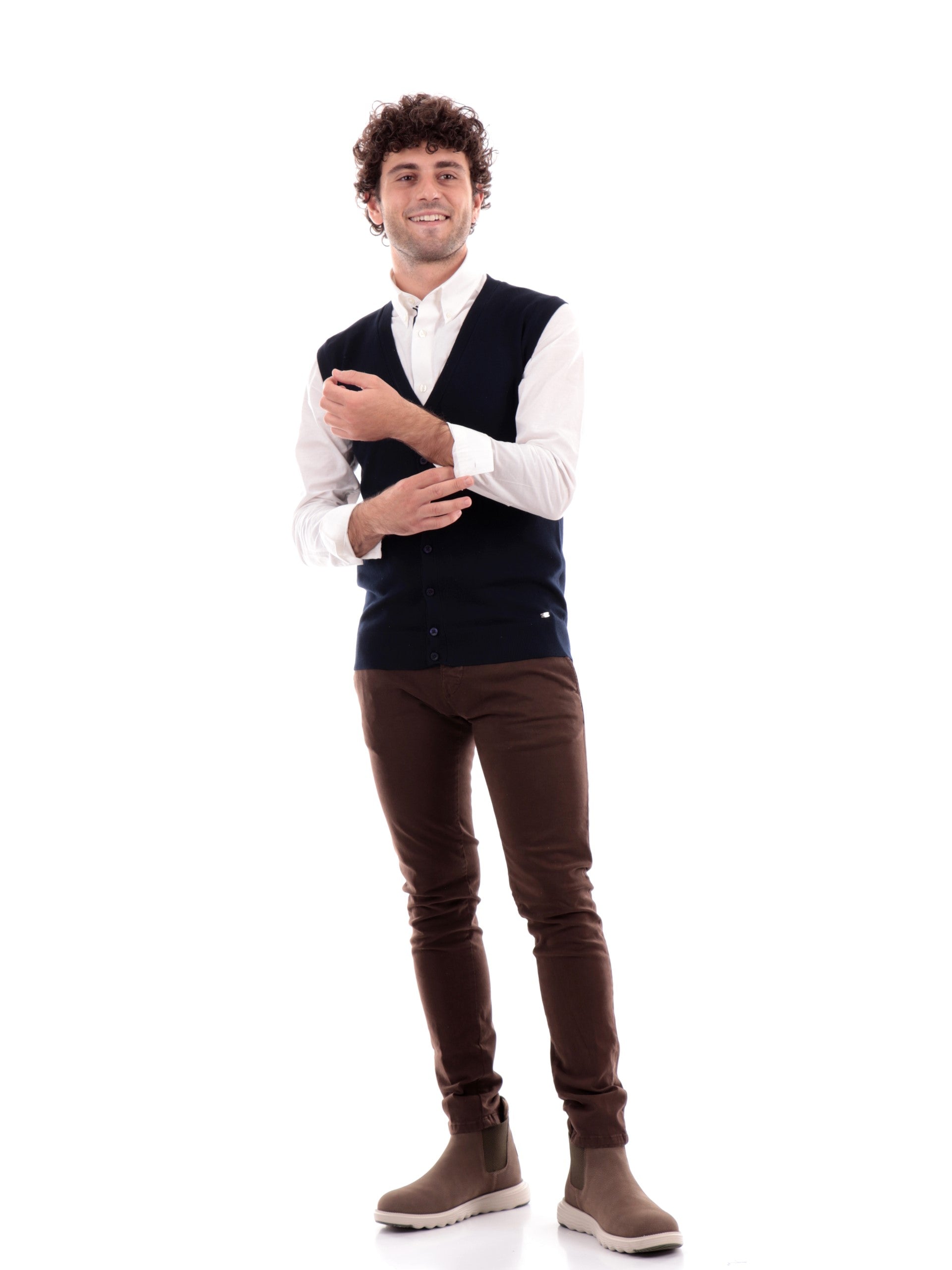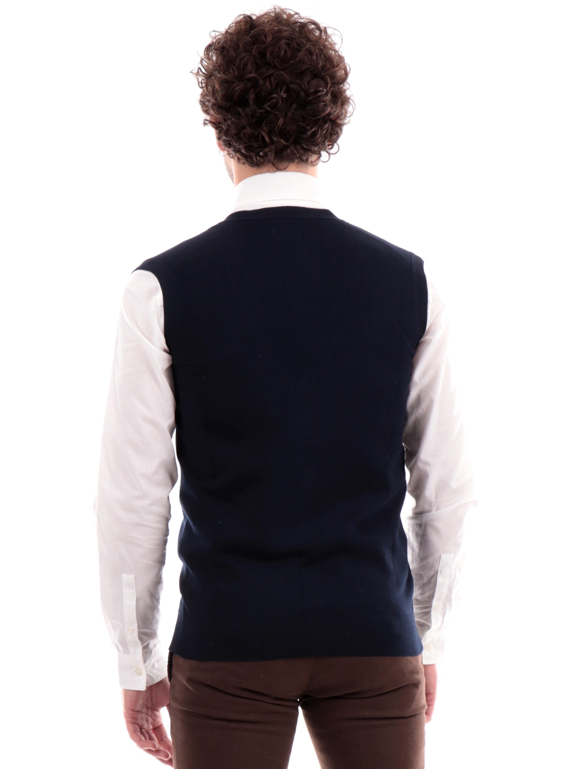 Gilet Markup blu da Uomo realizzato in morbida viscosa elasticizzata. Sul fondo la placchetta Markup metallica. Questo Gilet blu da Uomo con bottoni è perfetto per dare il giusto tocco di eleganza aituoi outfit.