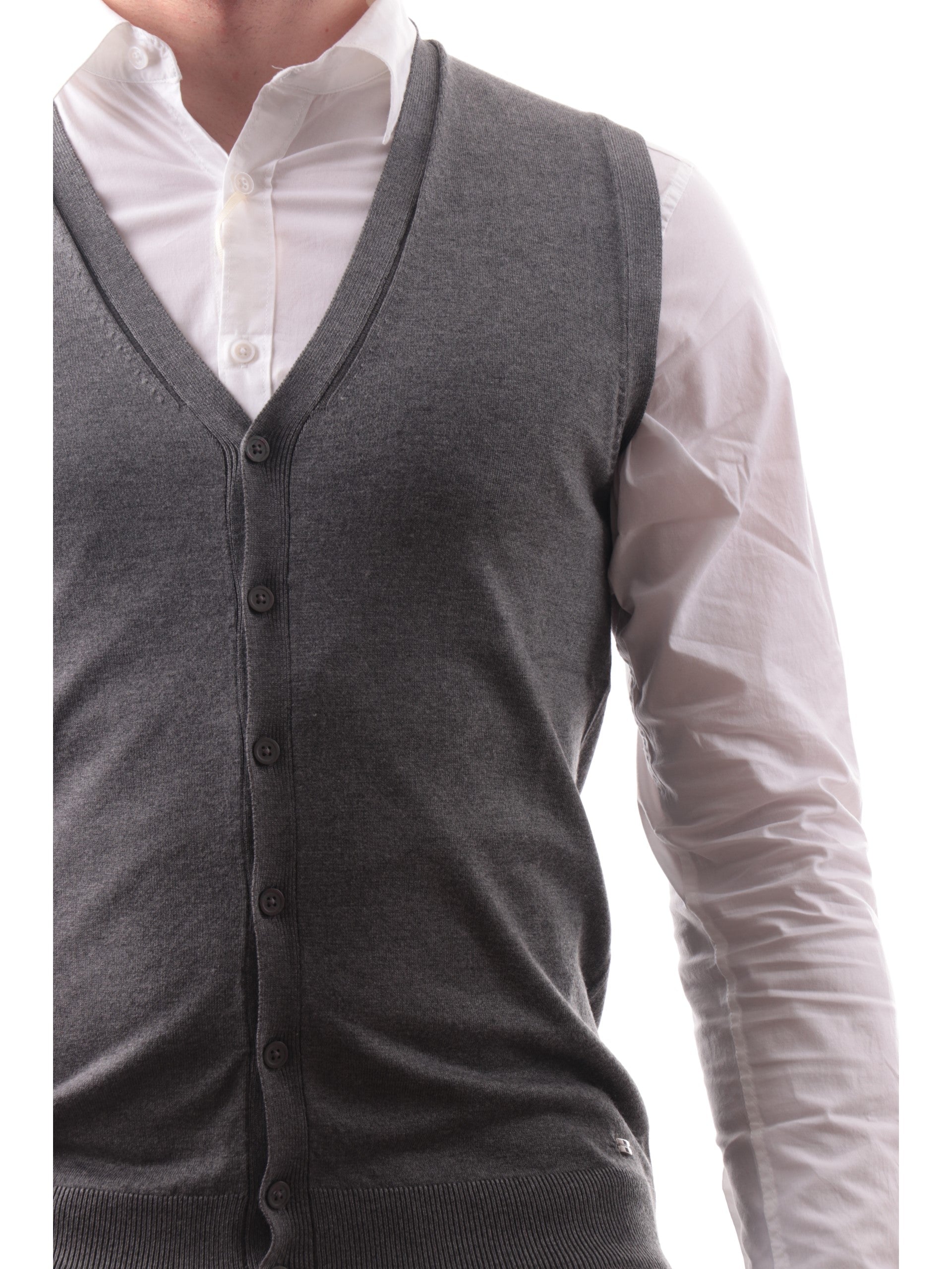 Gilet Markup Grigio da Uomo realizzato in morbida viscosa elasticizzata. Sul fondo la placchetta Markup metallica. Questo Gilet Grigio da Uomo con bottoni è perfetto per dare il giusto tocco di eleganza ai tuoi outfit.
