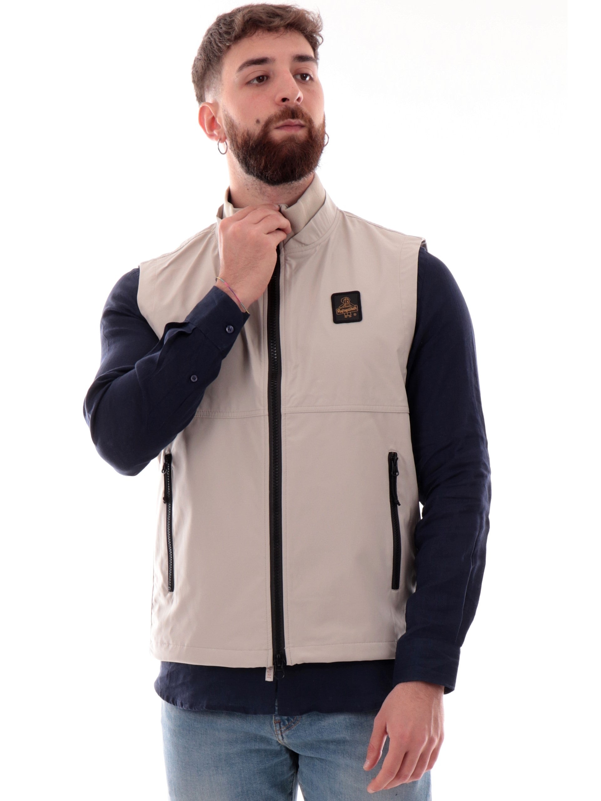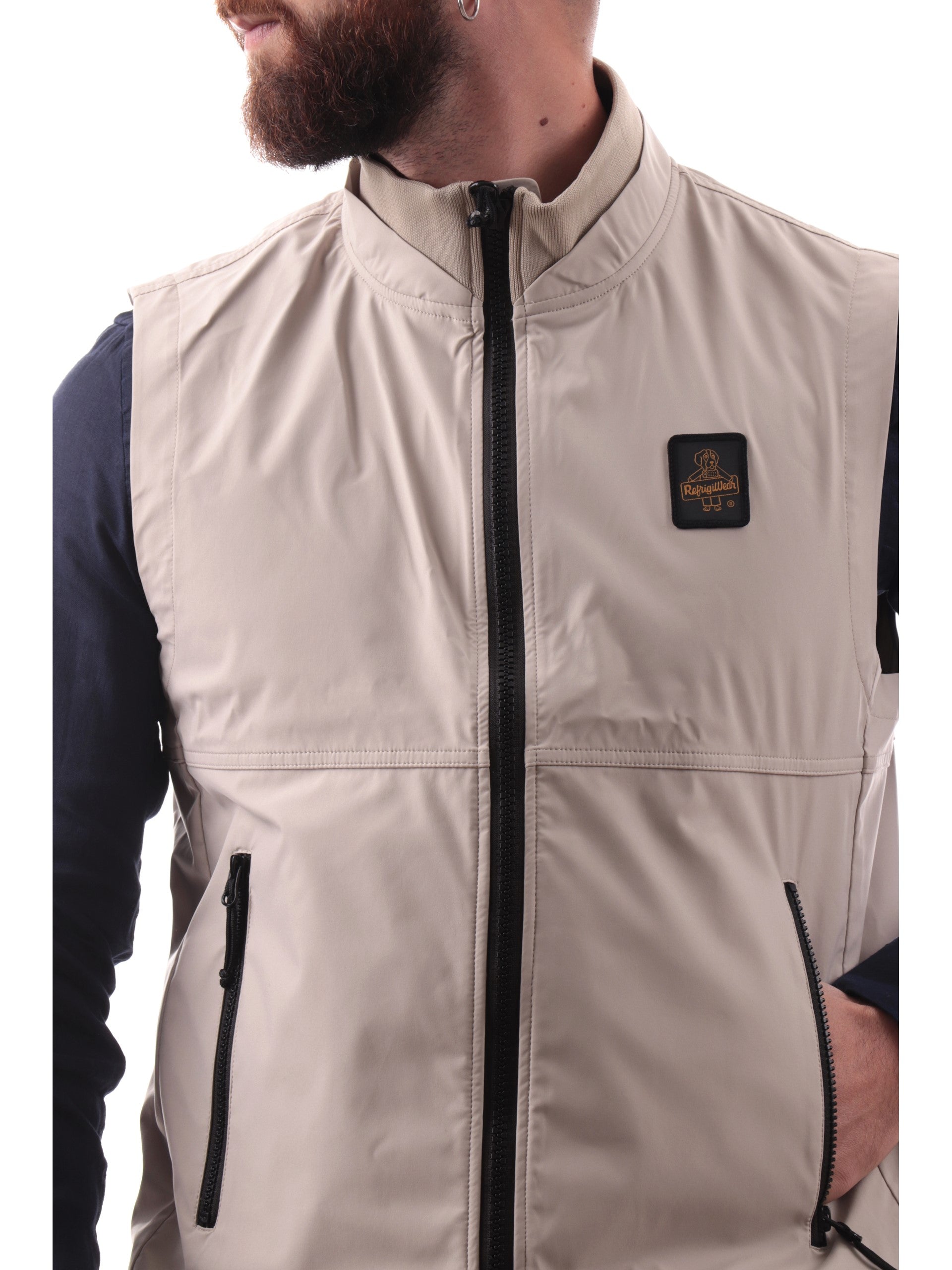 Gilet Refrigiwear beige da uomo realizzato in tessuto tecnico . Questo smanicato Refrigiwear uomo è caratterizzato da logo patch lato cuore e tasche con cerniera. Questo gilet Refrigiwear uomo è caratterizzato da stile trasversale e versatile , perfetto per tutte le stagioni.