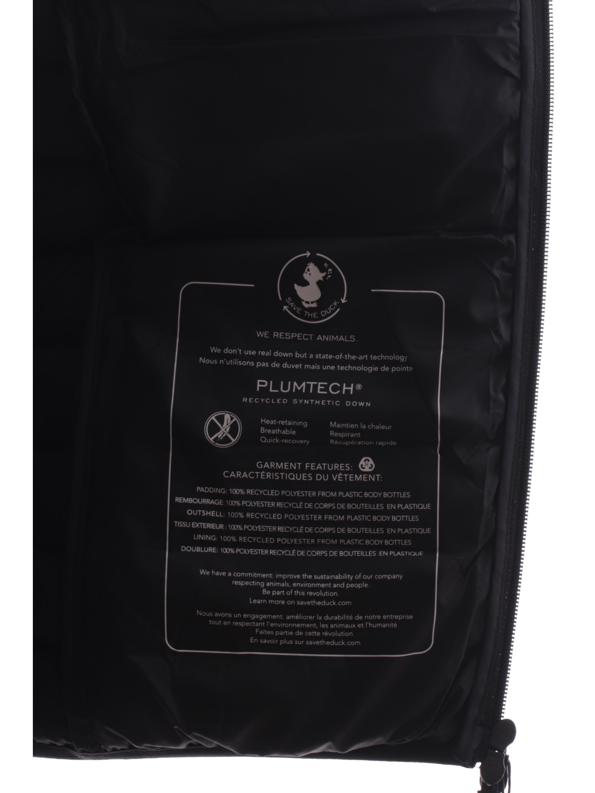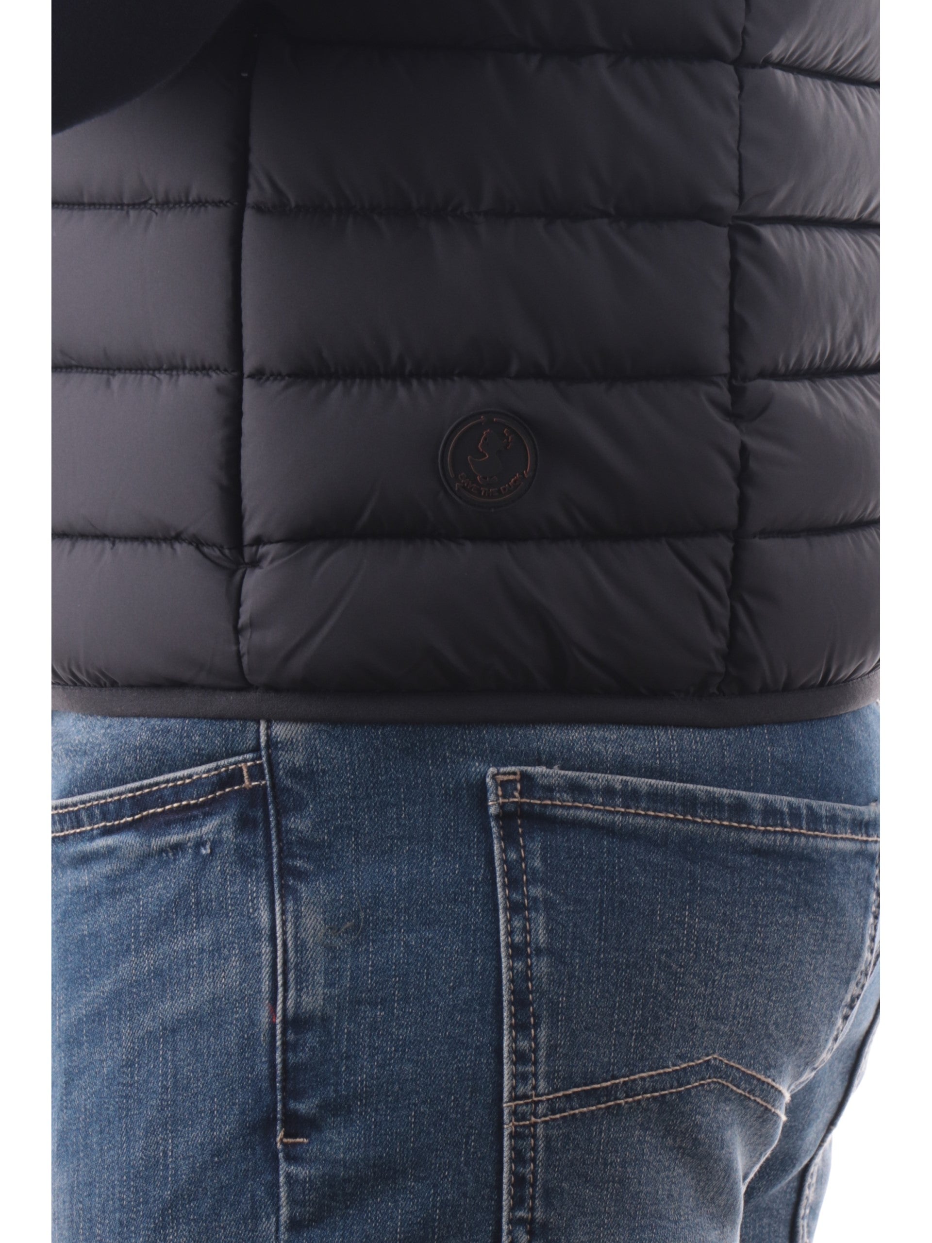 Gilet Save The Duck Rhus nero da uomo full zip D81272MMIRO21, realizzato con imbottitura eco-friendly. Questo gilet uomo Save The Duck nero ha lo scaldacollo, la chiusura full zip centrale, due tasche laterali con zip, un taschino con zip lato cuore e il patch del brand applicato sul fondo.