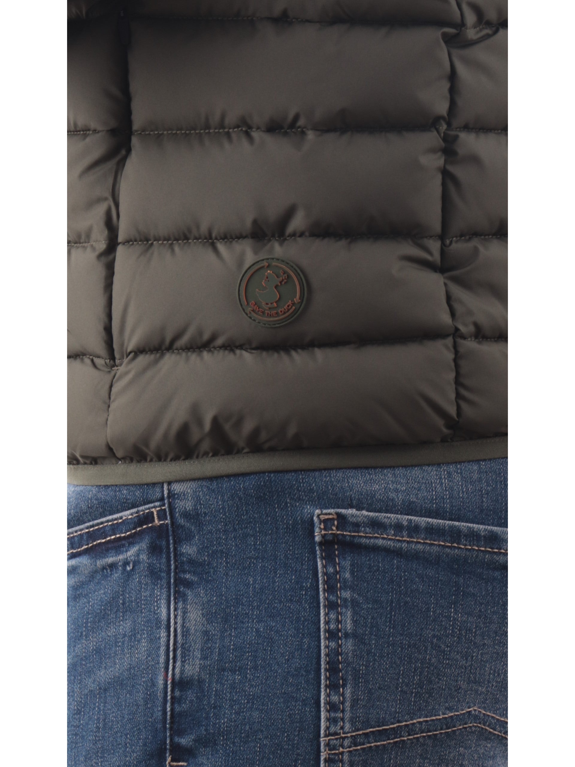 Gilet Save The Duck Rhus verde da uomo full zip D81272MMIRO21, realizzato con imbottitura eco-friendly. Questo gilet uomo Save The Duck verde ha lo scaldacollo, la chiusura full zip centrale, due tasche laterali con zip, un taschino con zip lato cuore e il patch del brand applicato sul fondo.