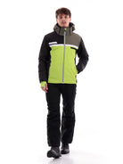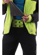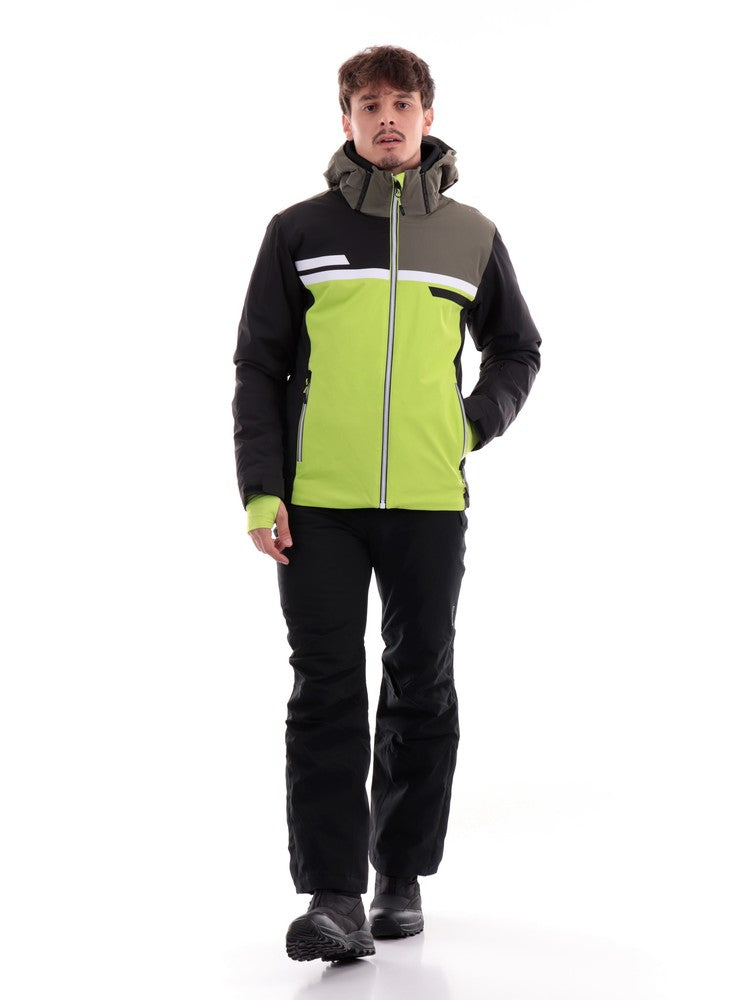 Giacca sci CMP verde, gialla e nera da uomo 33W0747, realizzata con tecnologia Clima Protect Pro: antineve, antivento ed impermeabile (Waterproof: 20000 mm; Breathable: 10000 g/m2/24h). Questo giubbino neve CMP colorblock ha il cappuccio rimovibile, lo scaldacollo regolabile con coulisse, la chiusura full zip centrale, due tasche laterali, polsini con velcro e una tasca sulla manica sinistra per lo skipass. Ghetta interna elasticizzata con bottoni automatici.
