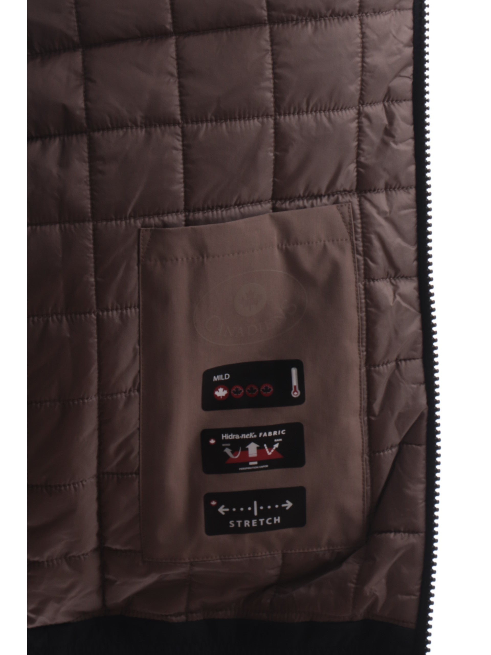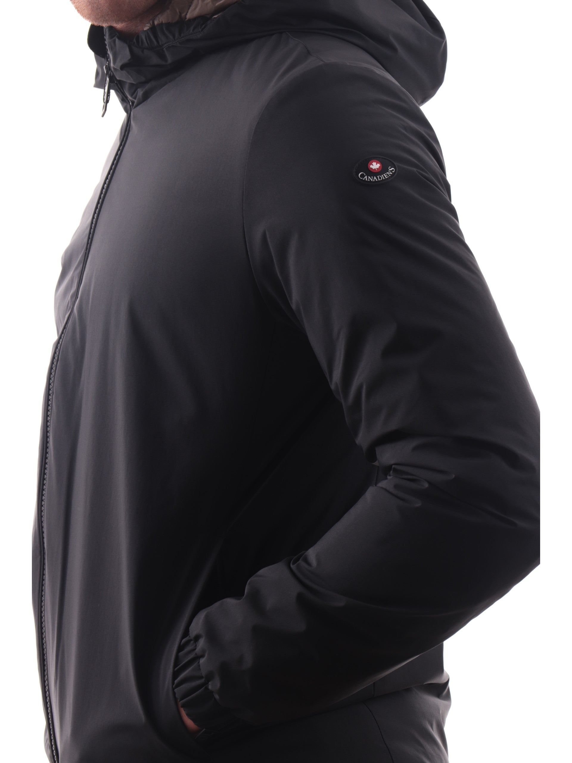 Giubbino nero da uomo Canadiens Dias. Questo giubbino nero Canadiens è realizzato dal tessuto tecnico Hidra-Nek, l’imbottitura in Soft Polyfill garantisce una buona protezione termica, rendendola ideale per affrontare il cambio di stagione. Il tessuto di questo giubbino offre ottime proprietà waterproof e windproof, per un utilizzo versatile in diverse condizioni climatiche. Questo giubbino nero da uomo è caratterizzato dalla chiusura full zip , due tasche laterali con chiusura a zip, un cappuccio fisso e la fodera interna trapuntata, pensata per aggiungere comfort e funzionalità, polsini e fondo elasticizzati