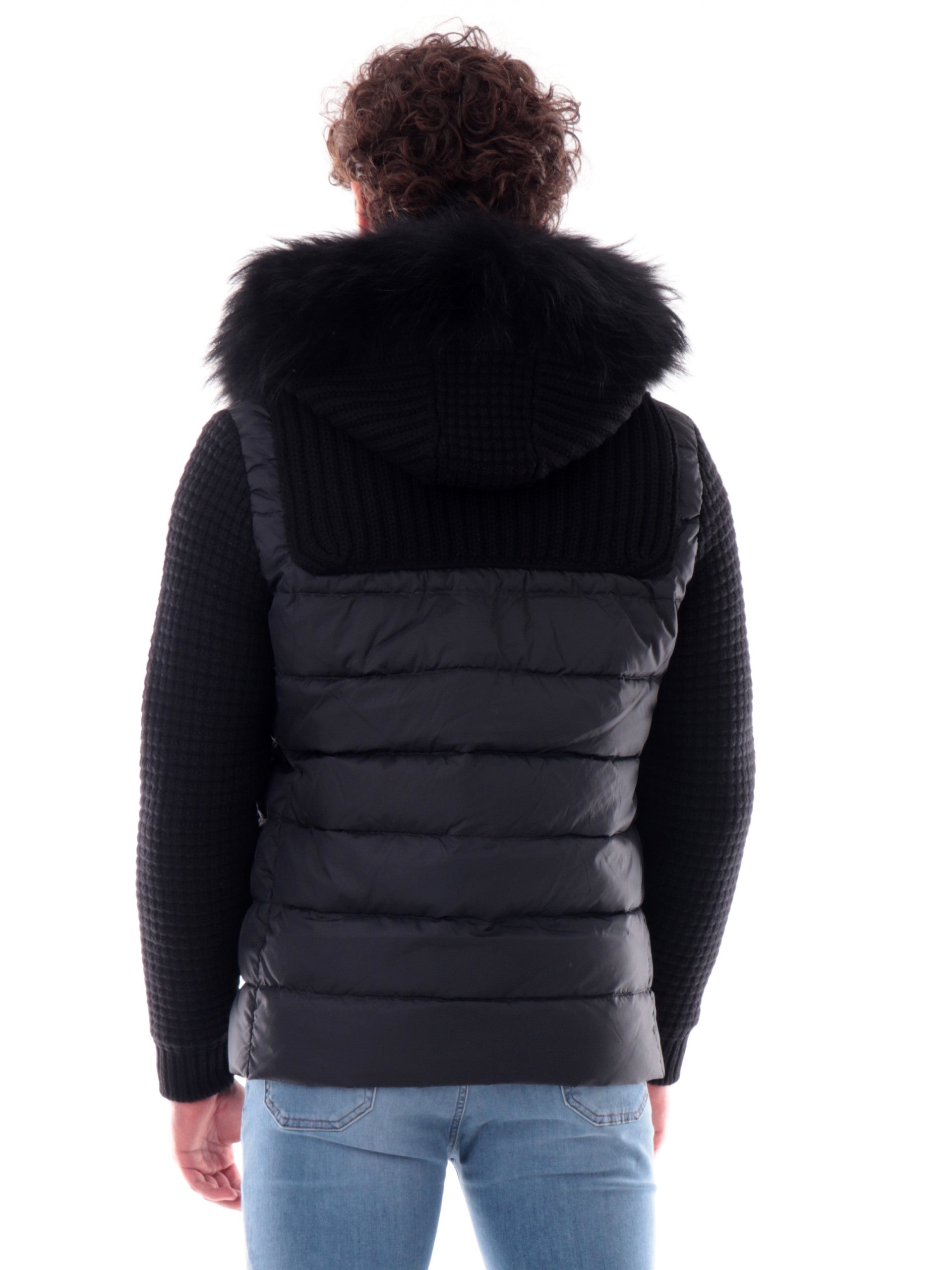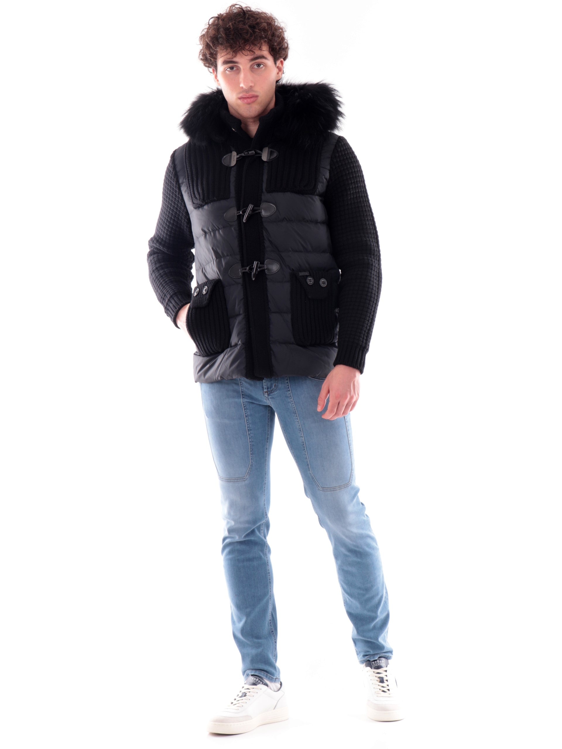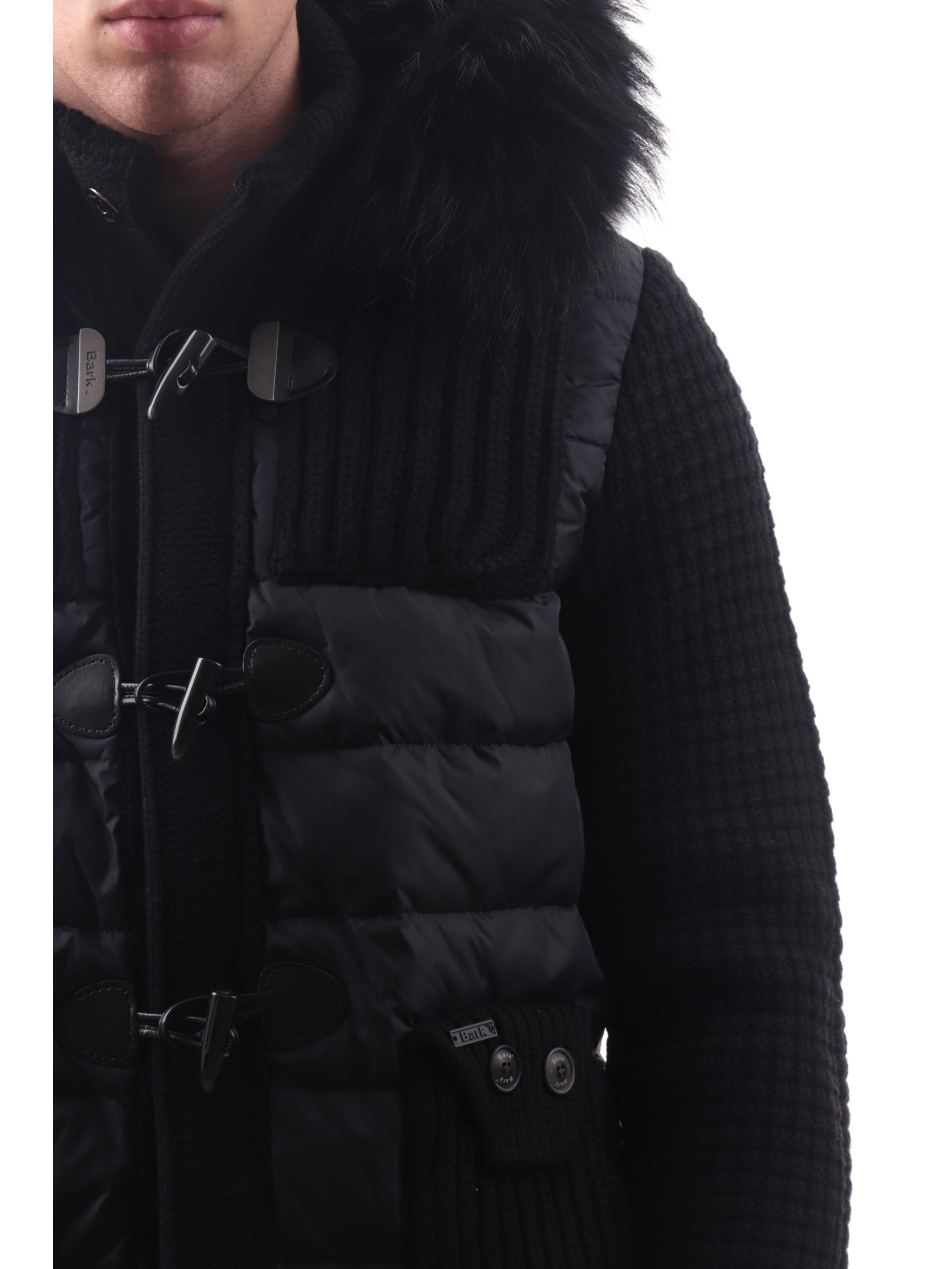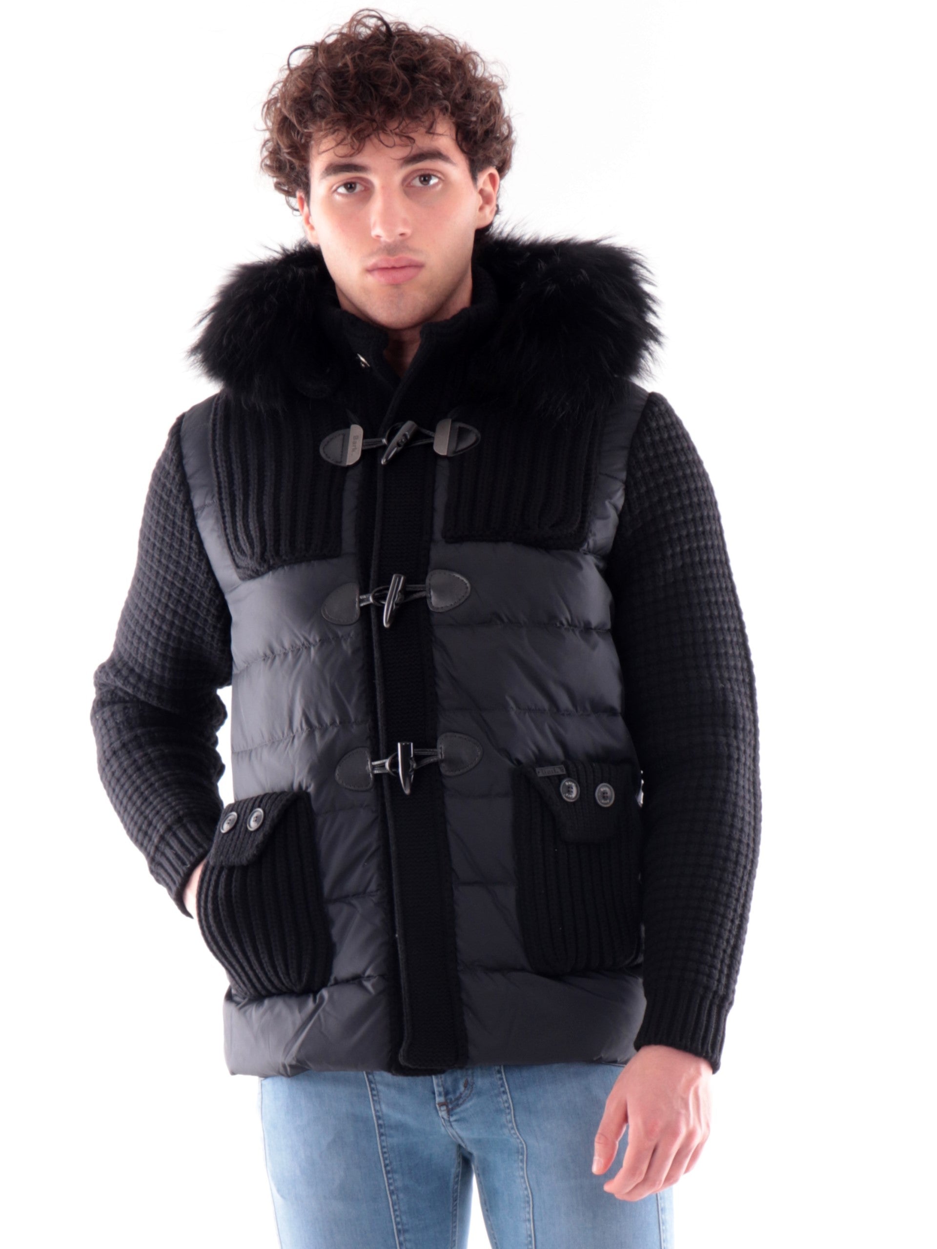 Giubbotto Bark nero da uomo con cappuccio con pelliccia in maglia Duffle Coat 53B8036C