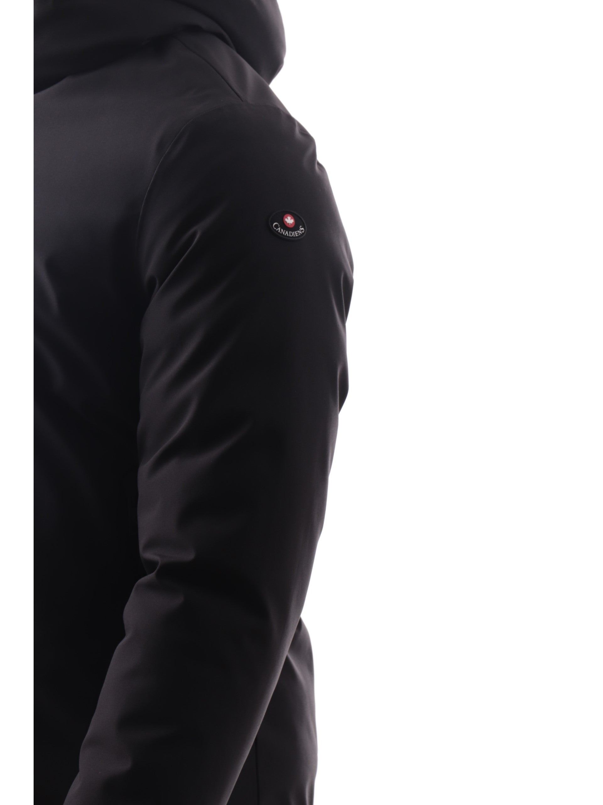 Giacca Canadiens nera da uomo full zip con cappuccio Teck 2.0 CAP0131975000, realizzata con imbottitura eco-friendly. Questo giubbino Canadiens nero ha il cappuccio fisso con bordatura elasticizzata,la chiusura full zip centrale, la chiusura full zip centrale termonastrata, due tasche laterali con zip, il patch gommato applicato sul lato sinistro, polsini e fondo elasticizzati.