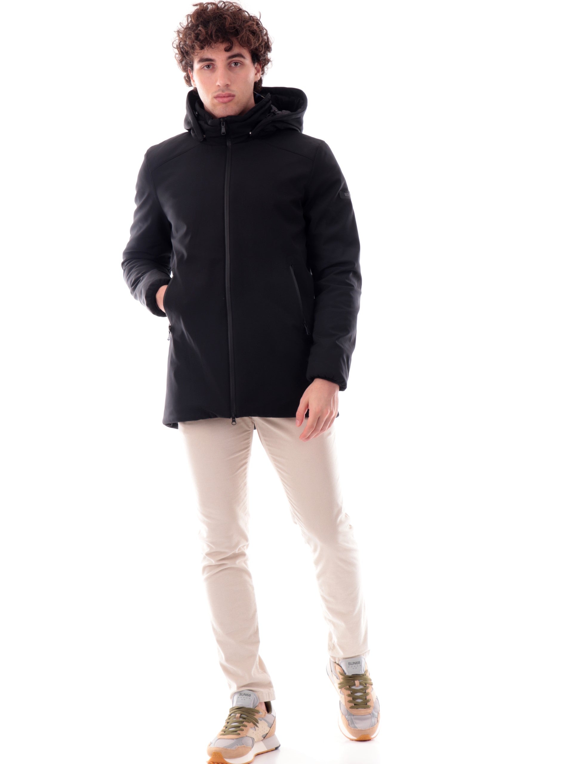 Giubbott Yes Zee nero da uomo, cappuccio e trapunta O834NM00