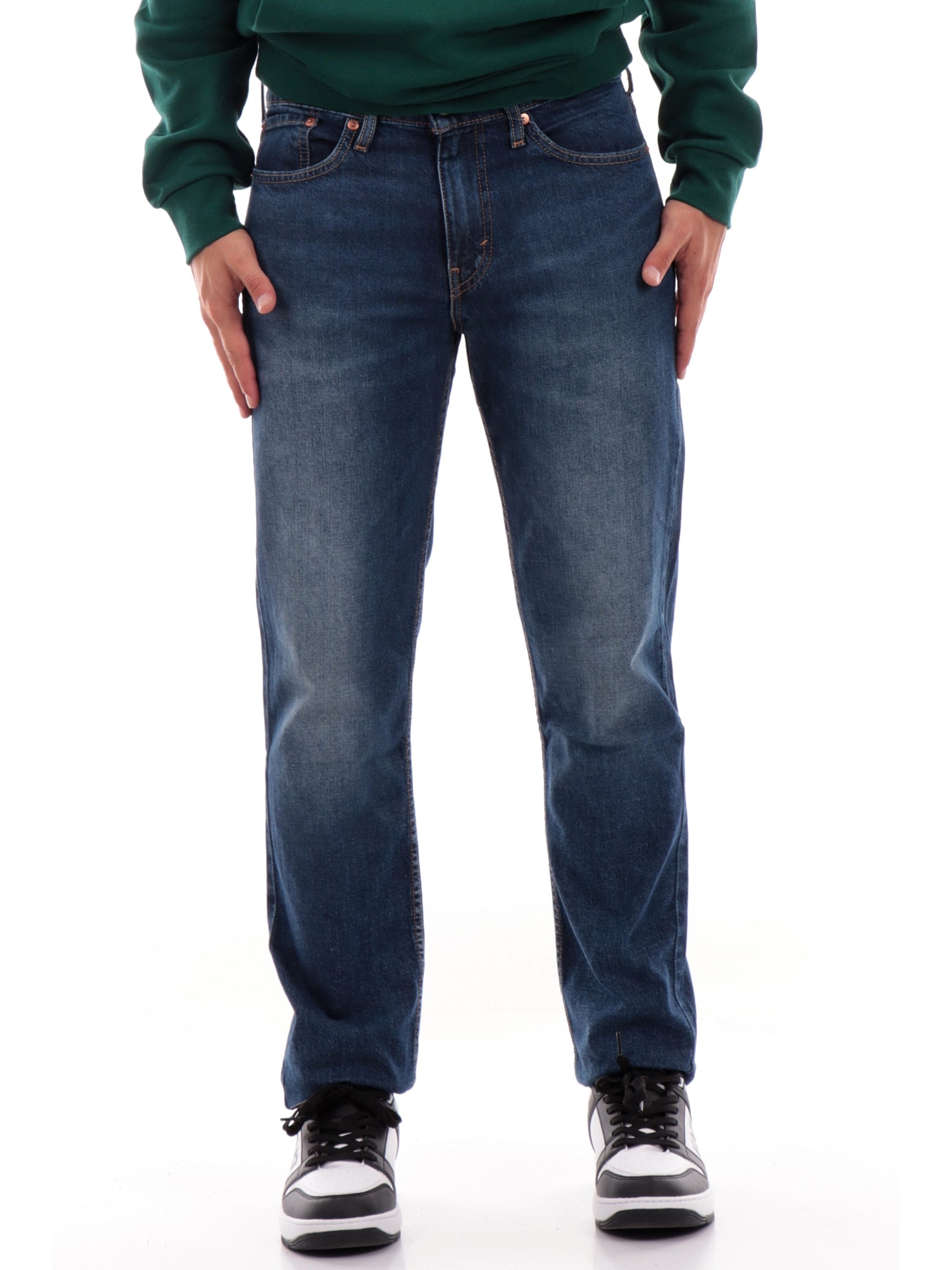 Jeans Levi's 511 Slim blu da uomo 045115. Questi pantaloni jeans Levis hanno la chiusura con bottone più zip, due tasche laterali di cui la destra con taschino, due tasche posteriori e vestibilità slim.