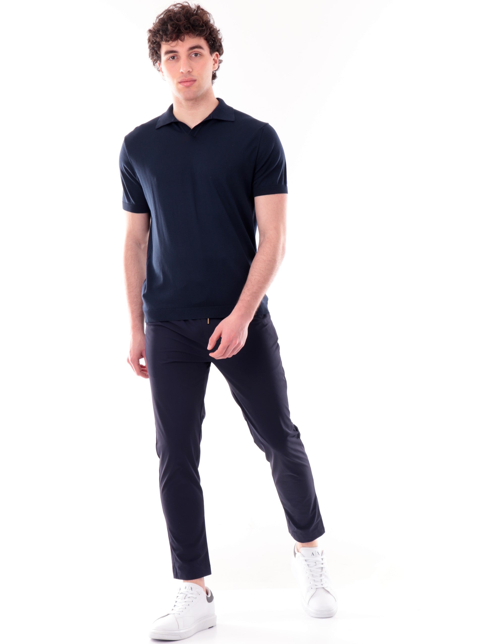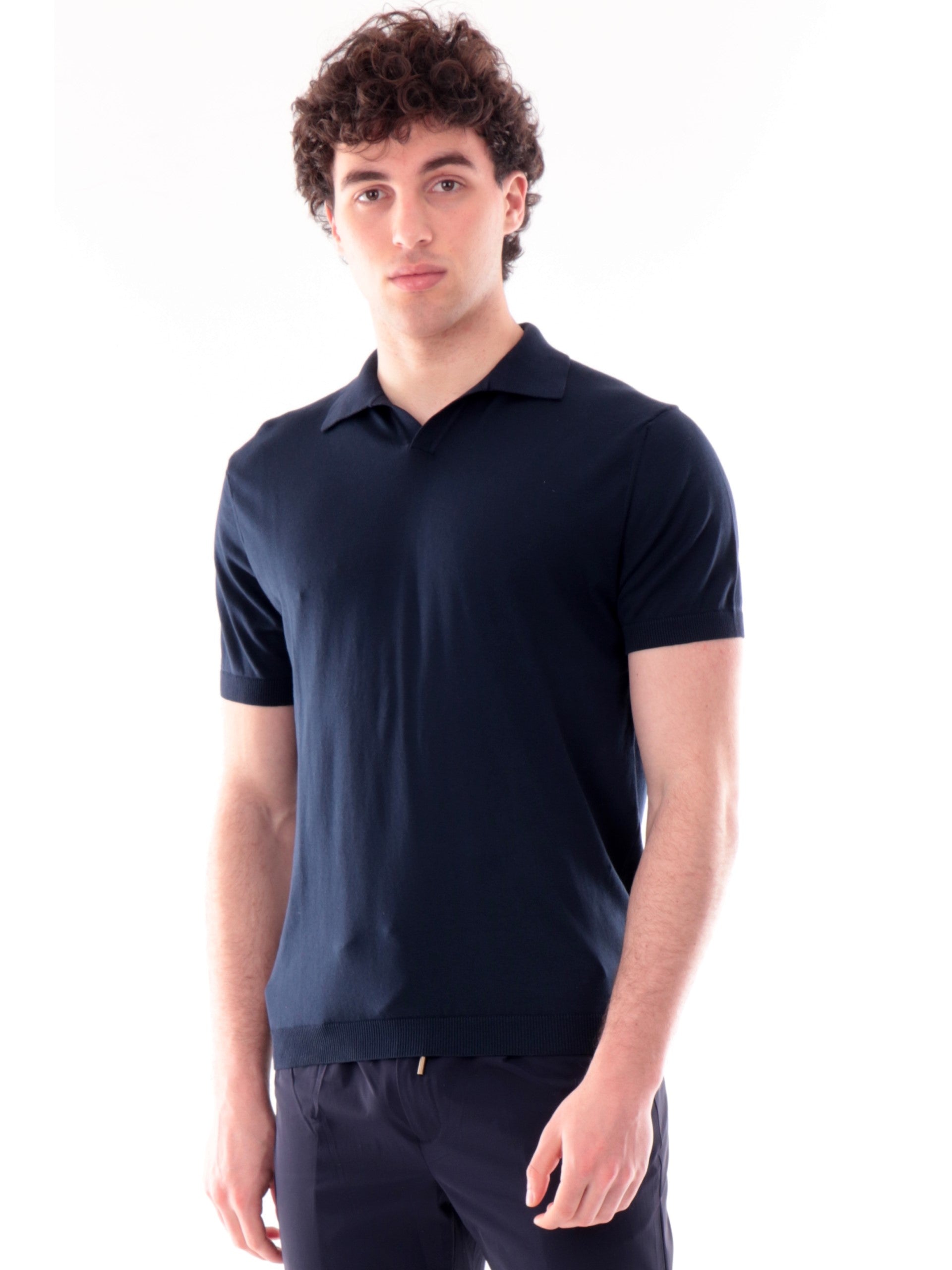 Polo in maglia blu da uomo scollo a V Velk Derby. Questa polo in maglia, realizzata 100% in puro cotone, è caratterizzata dallo scollo a V, maniche corte e fondo elasticizzato a costine. Questa polo da uomo è perfetta per qualsiasi tipo di look