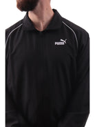 Tuta completa Puma nera Woven Piping da uomo 684849. Questa tuta Puma nera ha la felpa con chiusura full zip, due tasche laterali aperte, il logo ricamato sul davanti lato sinistro e polsini e fondo elasticizzati. I pantaloni di questa tuta Puma hanno la banda elastica sul punto vita regolabile con laccetti, due tasche laterali aperte, il logo Puma ricamato sul davanti lato sinistro e polsini elasticizzati.