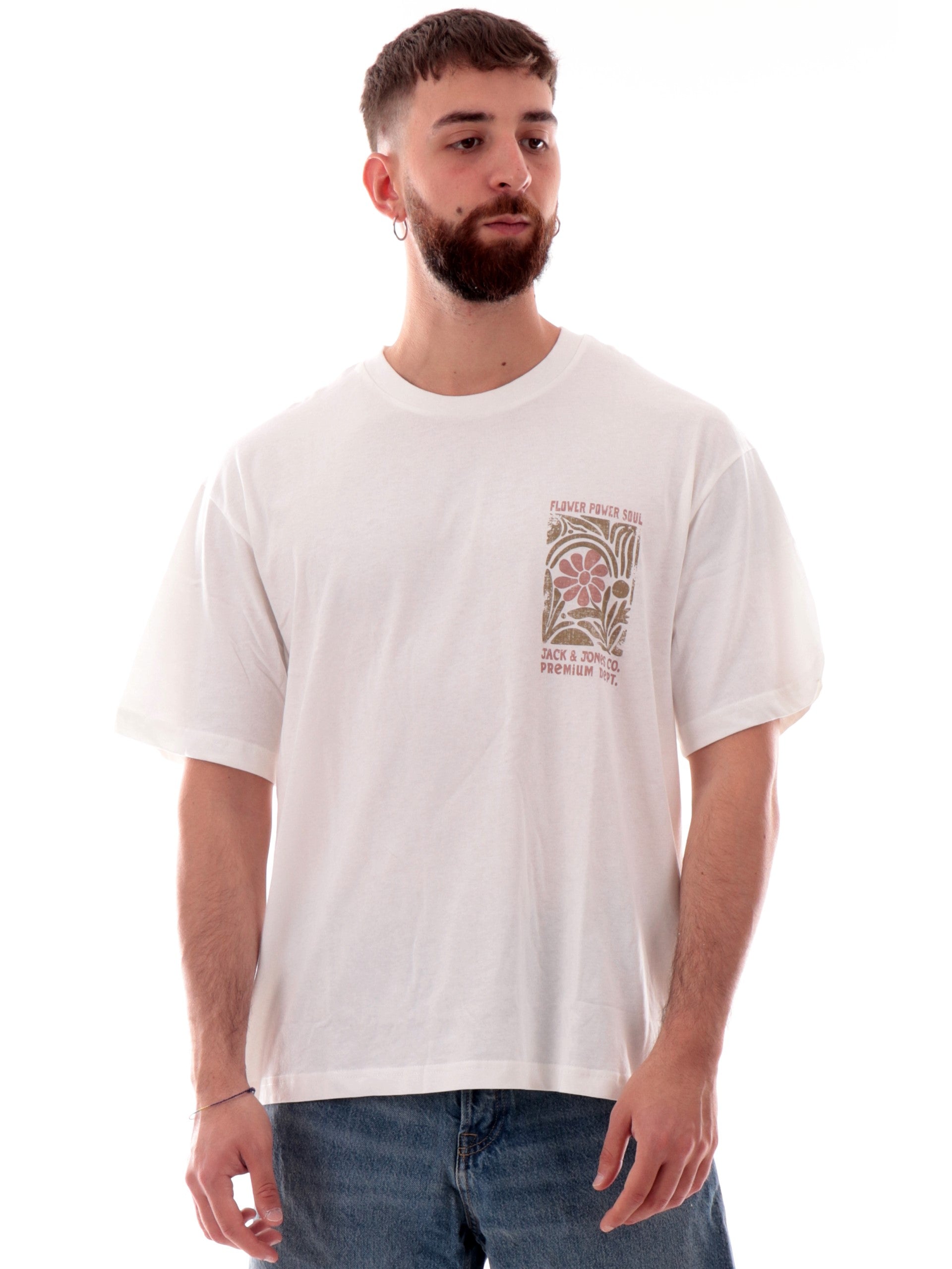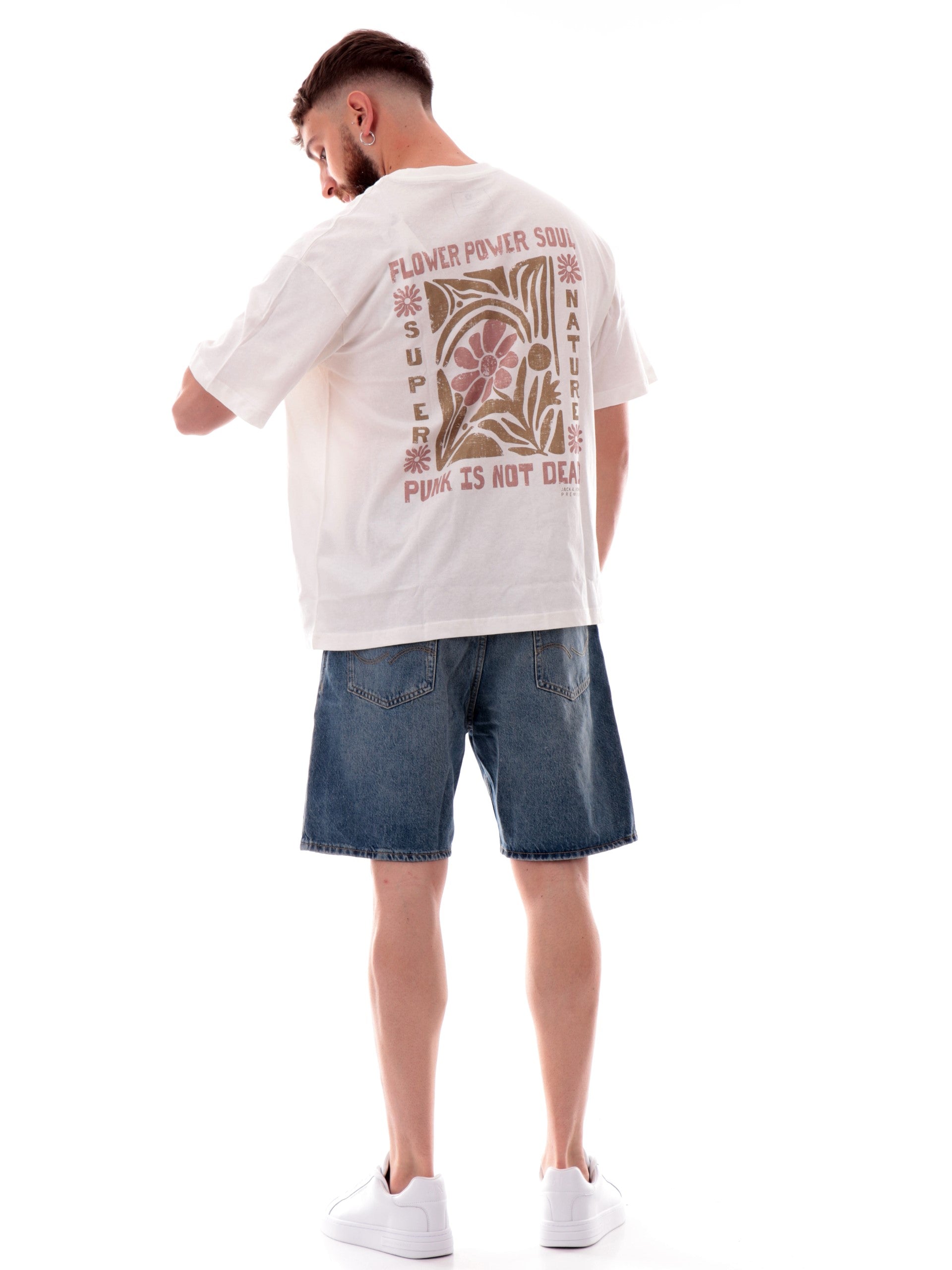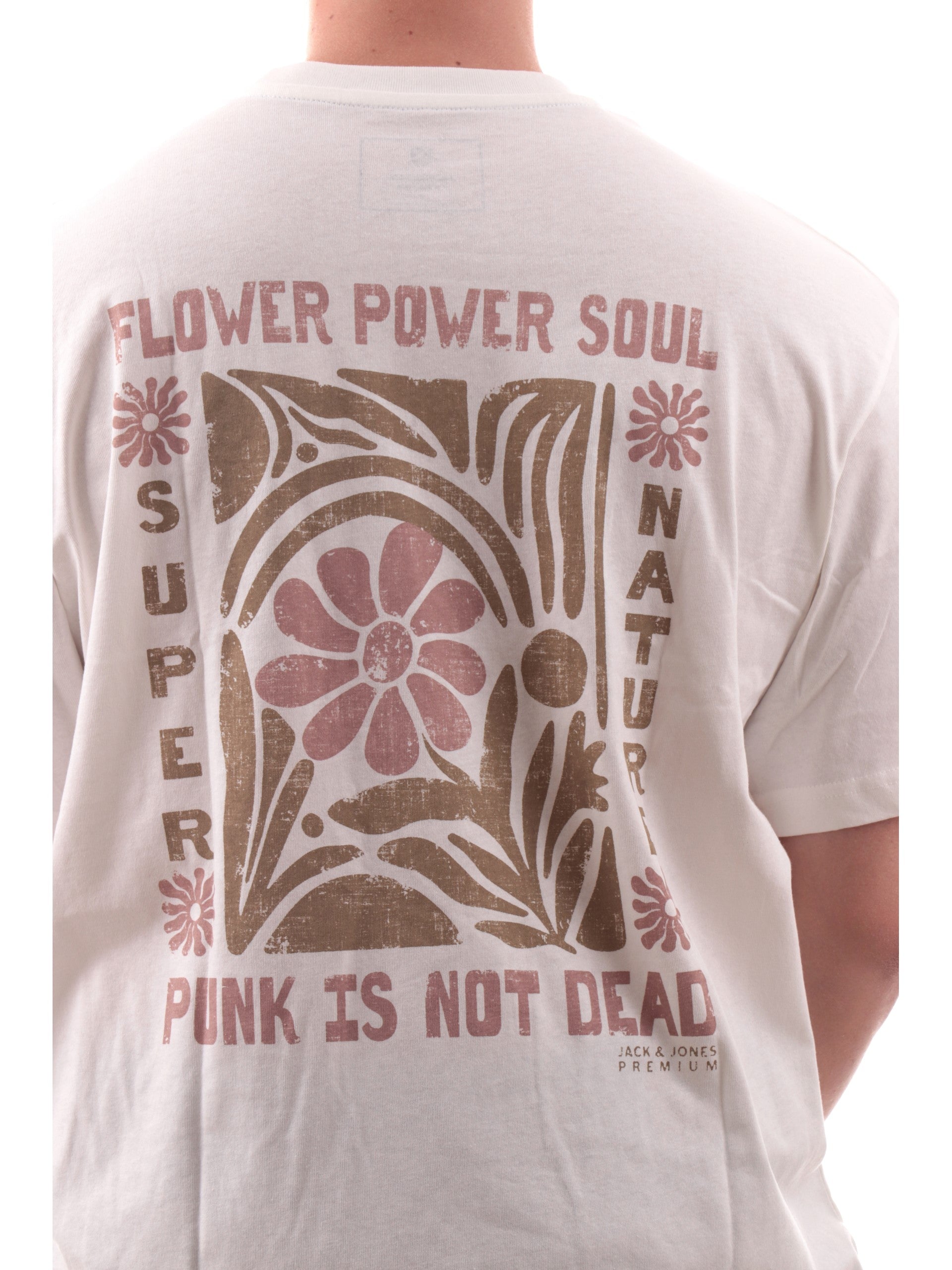 Maglia Jack Jones bianca da uomo maxi stampa flower posteriore 12277775, realizzata in 100% puro cotone. Questa t-shirt Jack Jones bianca girocollo ha le maniche corte e la maxi stampa flower sul lato posteriore.