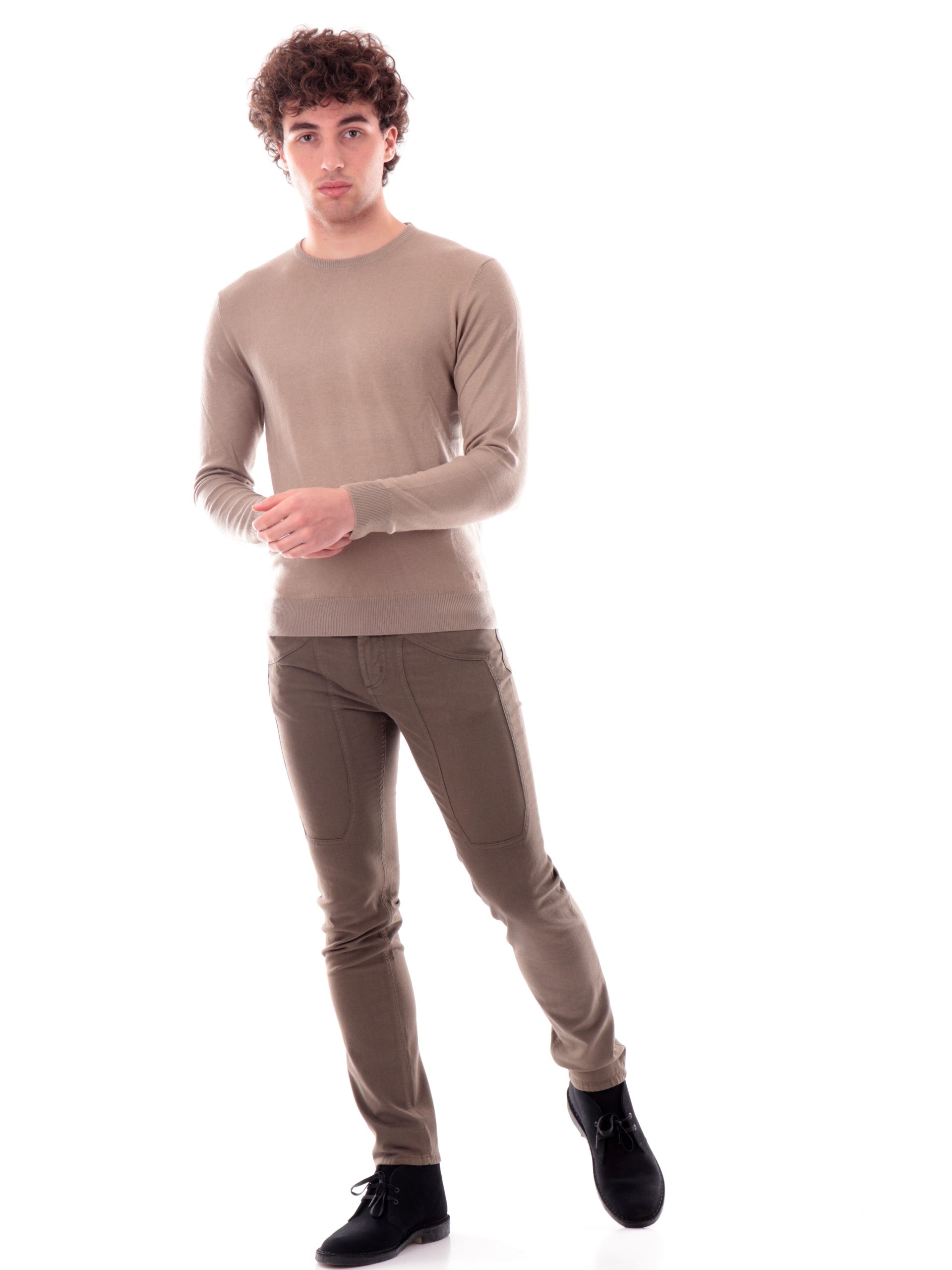 Maglione beige Yes Zee da uomo. Questa maglia girocollo Yes Zee beige da uomo è carattterizzata da posini e fondo elasticizzato a costine, la scritta del brand Yes Zee sul davanti in basso a sinistra. questo maglioncino beige è realizzato da un tessuto caldo ed avvolgente perfetto per le stagioni autunno-inverno