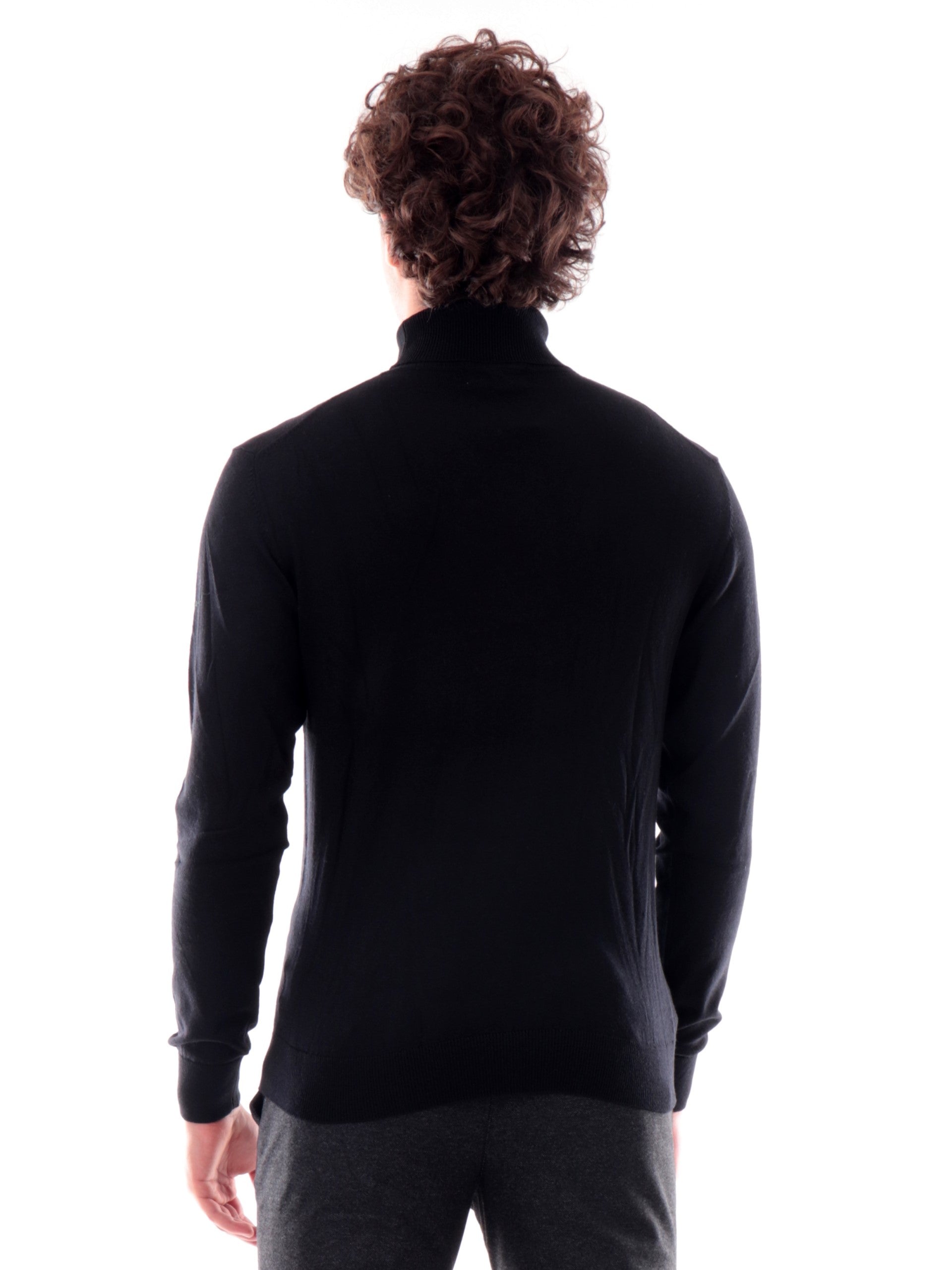 Maglione dolce vita Yes Zee nero da uomo. Questo maglioncino Yes Zee da uomo è realizzato da un tessuto caldo, avvolgente e soffice al tatto perfetto sopra un jeans e un outfit casual. Questa maglia Yes Zee è caratterizzata dal collo alto a costine, polsini e fondo elasticizzato a costine e la scritta Yes Zee sul davanti in basso a sinistra
