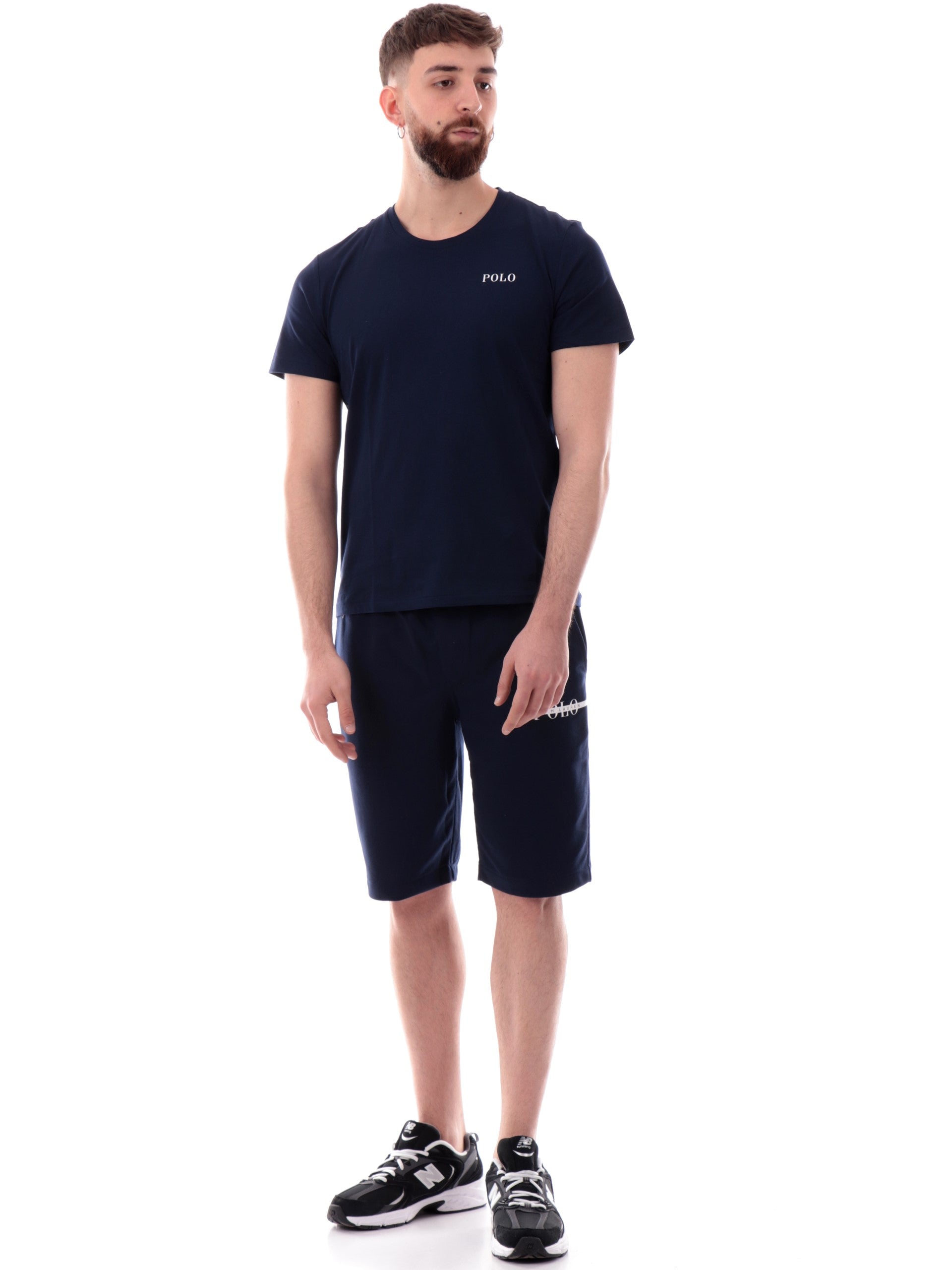Pantaloncini Ralph Lauren blu da uomo Slim logo Polo stampato 714966107. Questi bermuda Ralph Lauren blu hanno la banda elastica sul punto vita, due tasche laterali aperte con taglio obliquo e il logo Ralph Lauren ricamato.