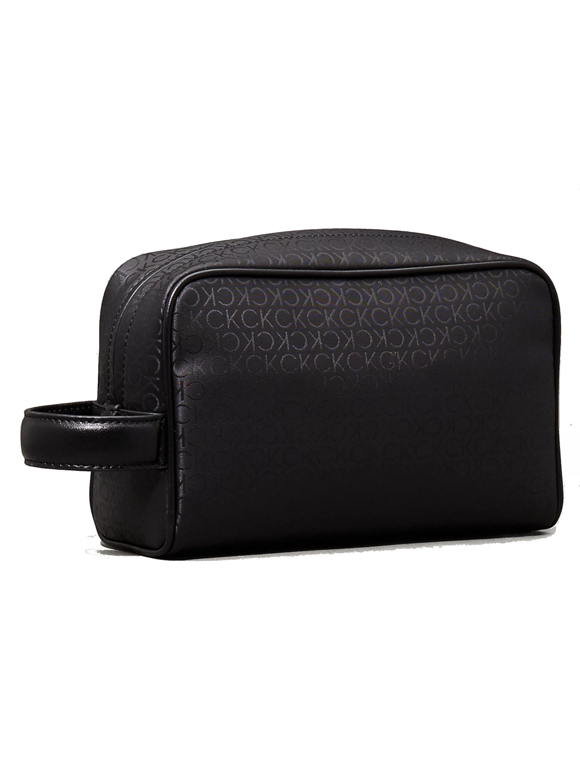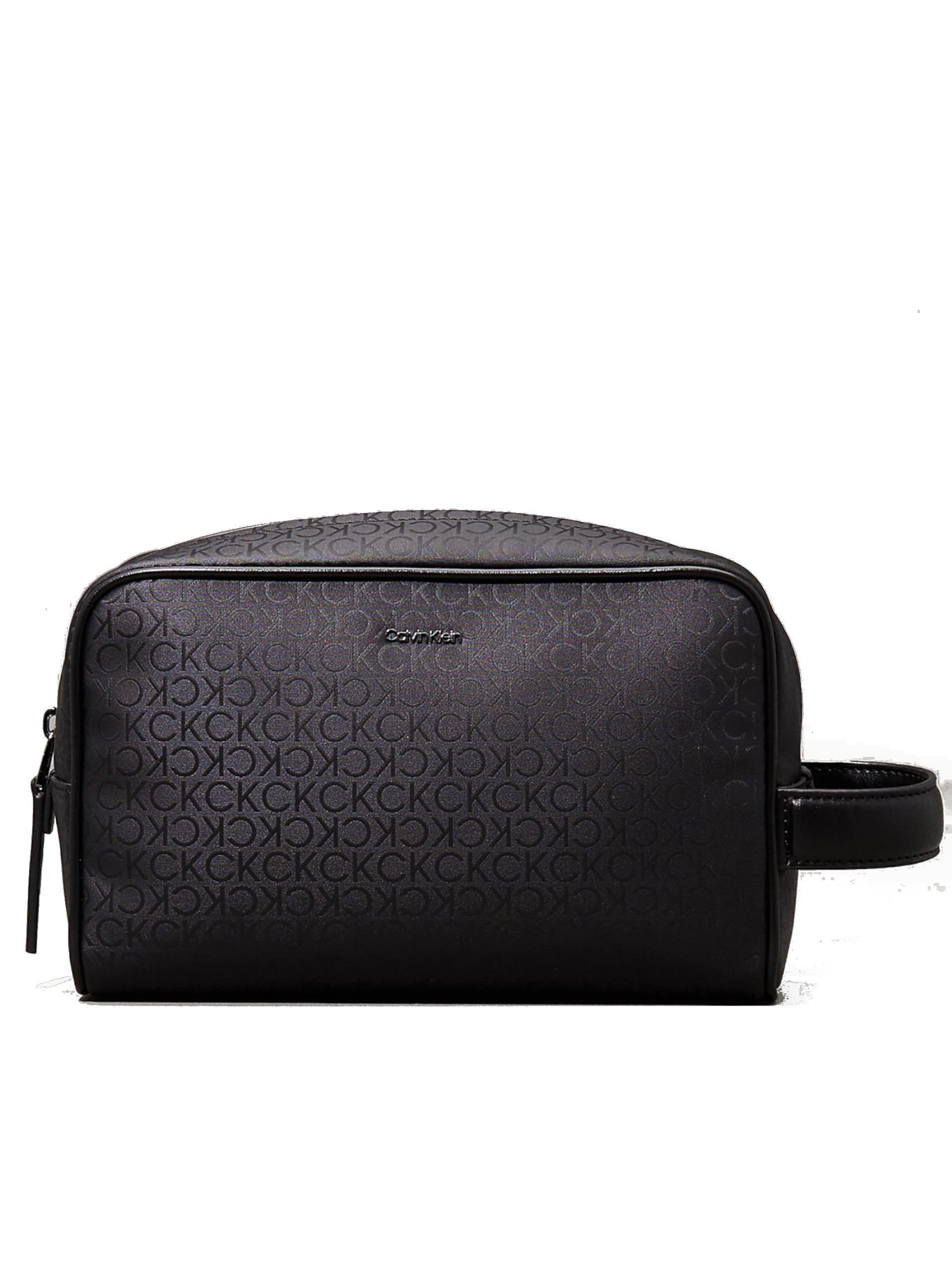 Borsa Calvin Klein nera Sleek Washbag da uomo logo all over K50K512944