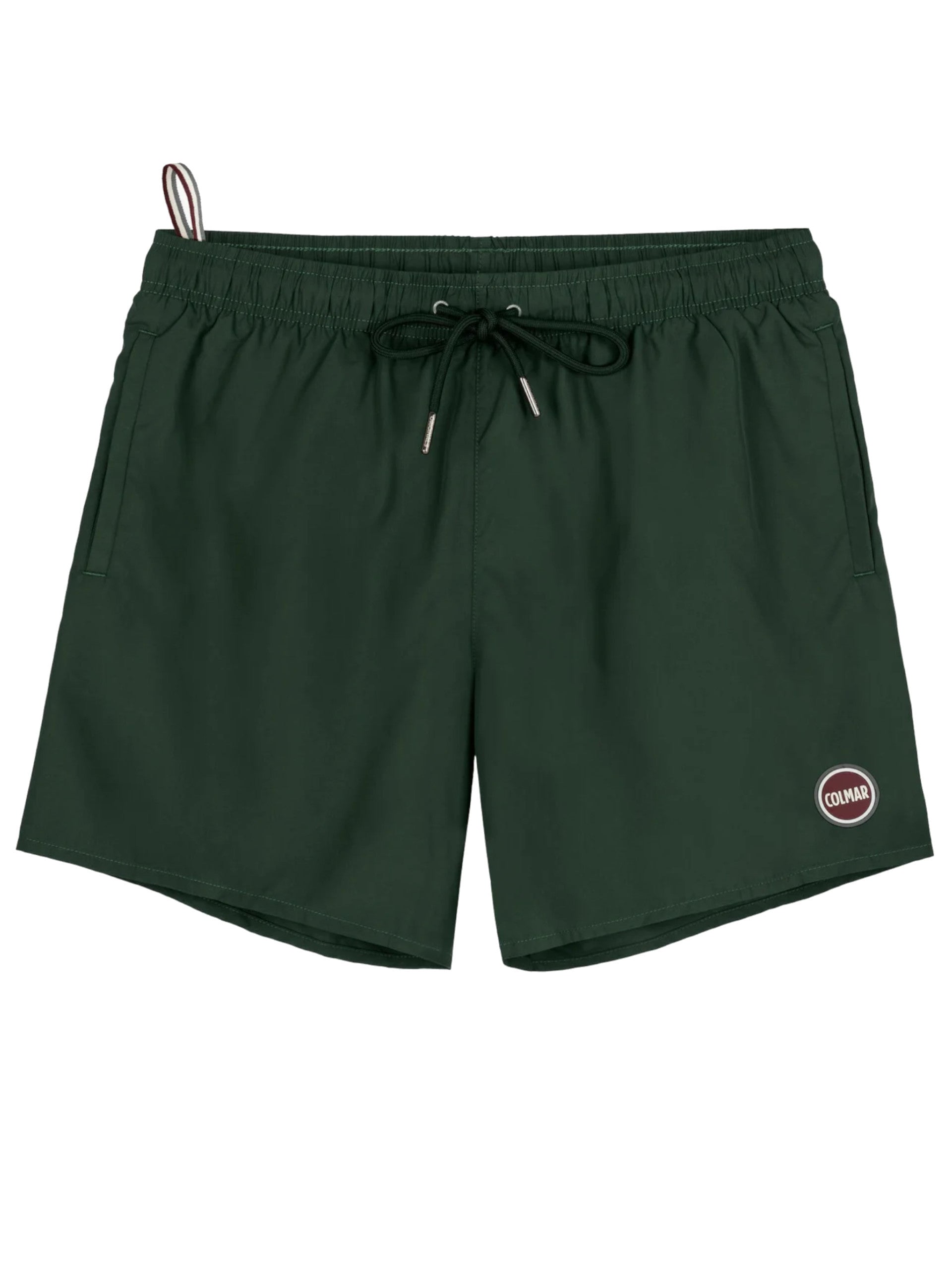 Costume mare Colmar verde da uomo patch gommato 72694XP, realizzato in tessuto in grado di asciugarsi in pochissimi minuti. Questo costume mare Colmar ha la banda elastica sul punto vita regolabile con laccetti, due tasche laterali aperte, il patch gommato del brand applicato sul davanti lato sinistro e sul retro lato destro e la retina traspirante interna.
