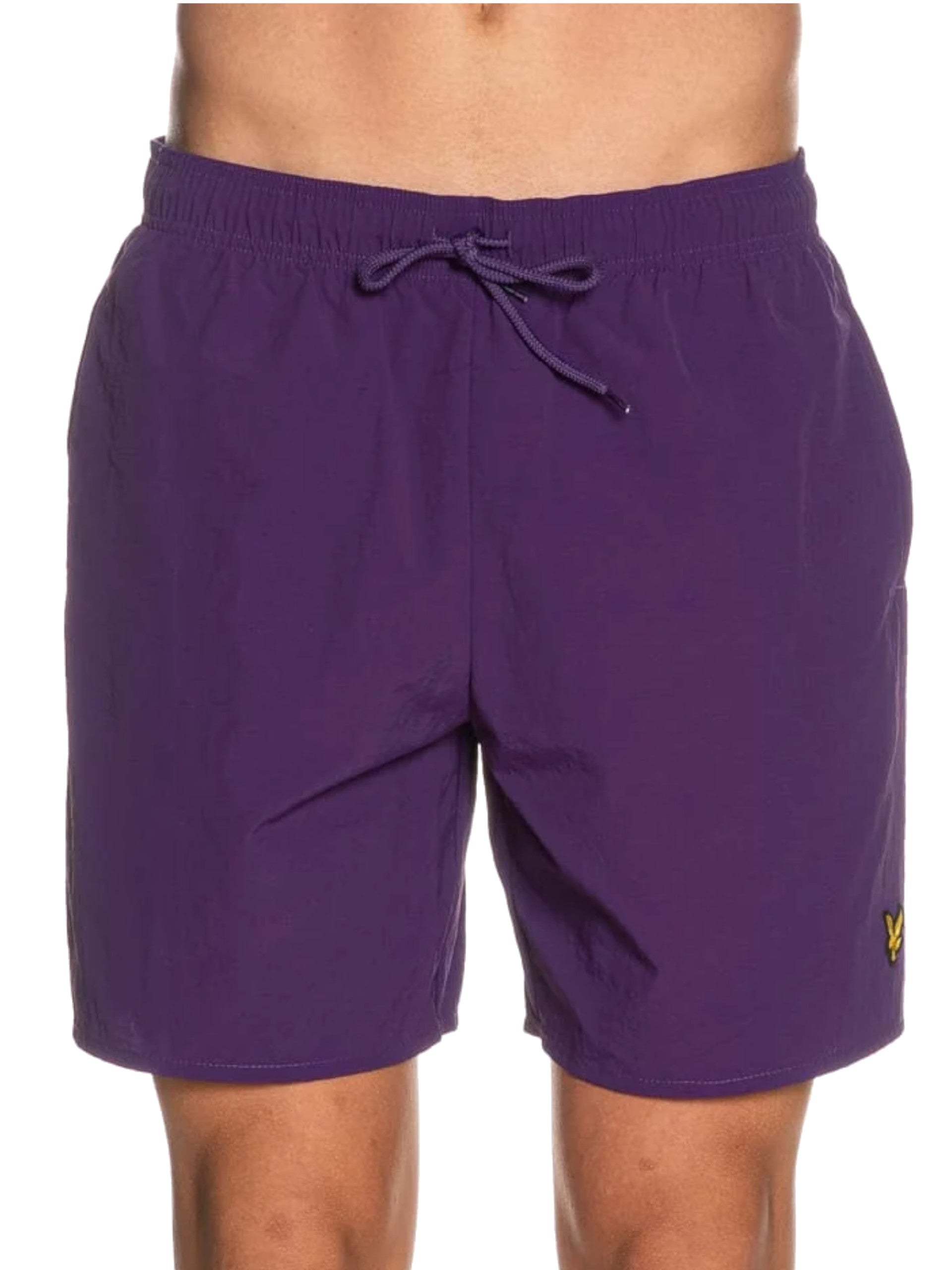 Costume mare Lyle Scott viola da uomo Plain Swim SH1204VB, realizzato in tessuto in grado di asciugarsi in pochissimi minuti. Questo costume Lyle&Scott viola ha la banda elastica sul punto vita regolabile con laccetti, la retina interna traforata, due tasche laterali aperte con taglio obliquo, una tasca posteriore con patta e il patch del brand cucito sul fondo a contrasto colore.