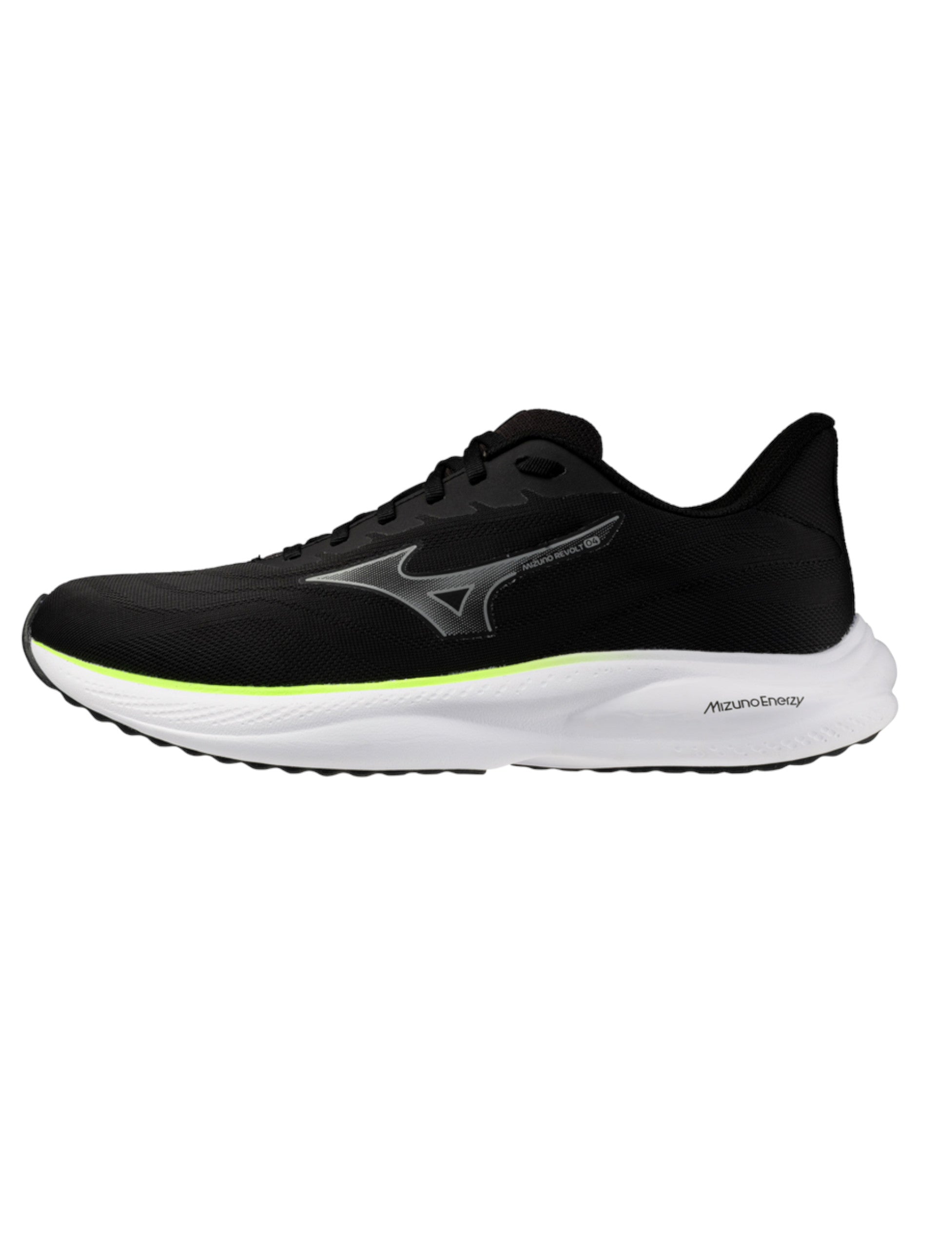 Scarpe Mizuno nere da uomo da corsa Revolt 4, realizzate con tecnologia Mizuno Enerzy, che garantisce il massimo comfort durante la corsa. Queste scarpe da running Mizuno nere hanno la chiusura con lacci, la tomaia realizzata interamente in tessuto e il logo del brand ambo i lati a contrasto colore.