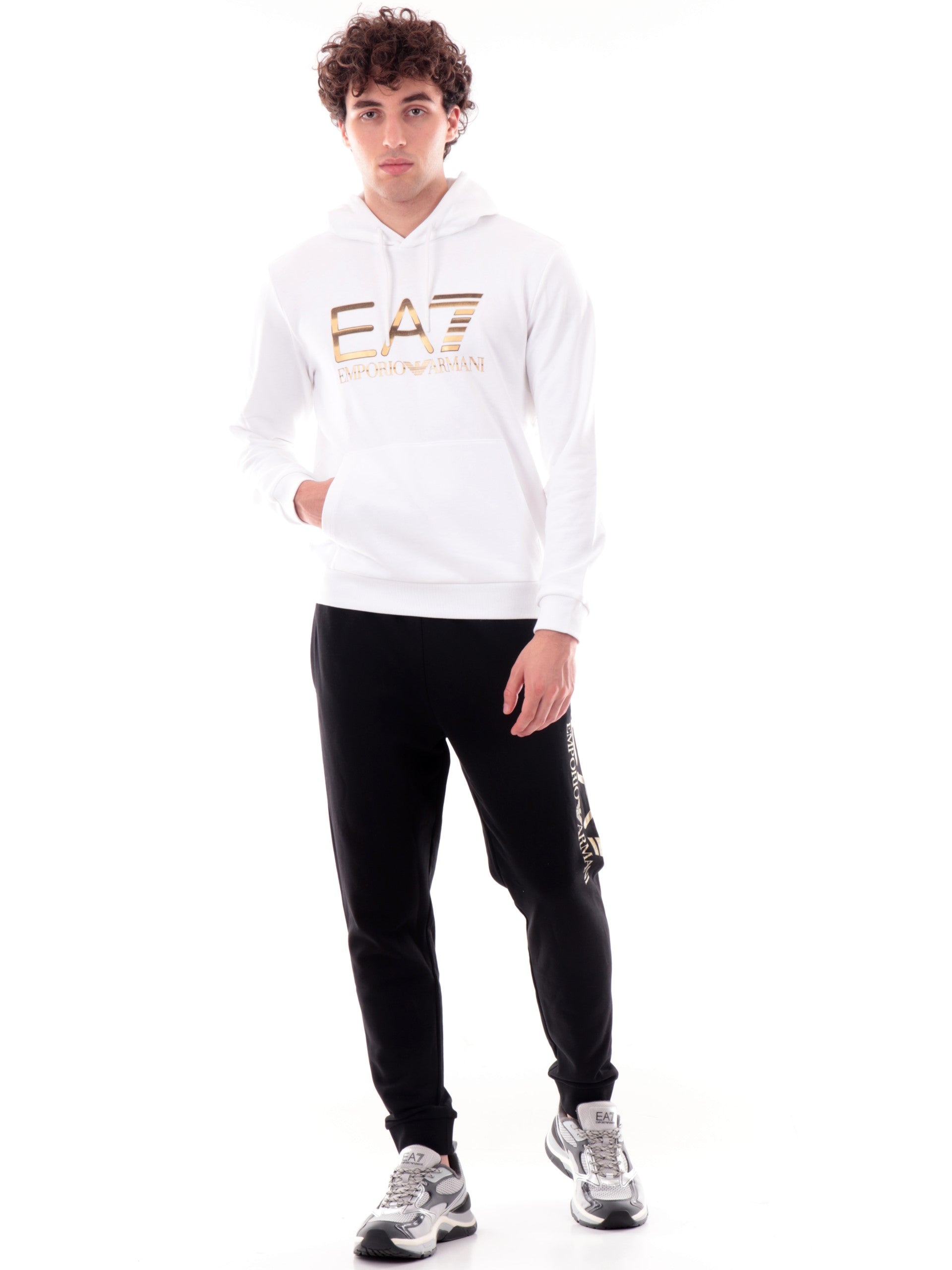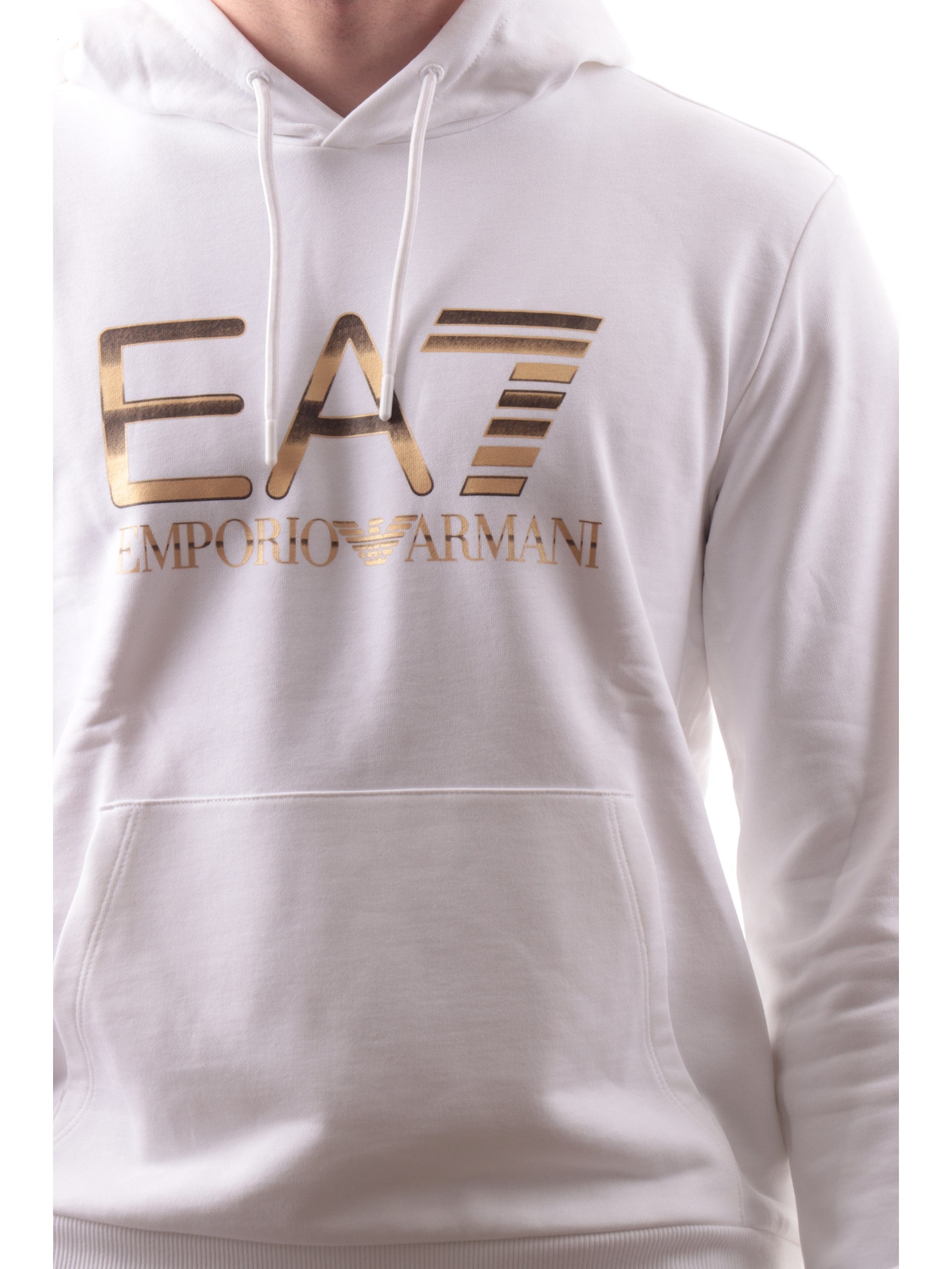 Felpa Emporio Armani EA7 bianca da uomo con cappuccio logo dorato 7M001190AF17787