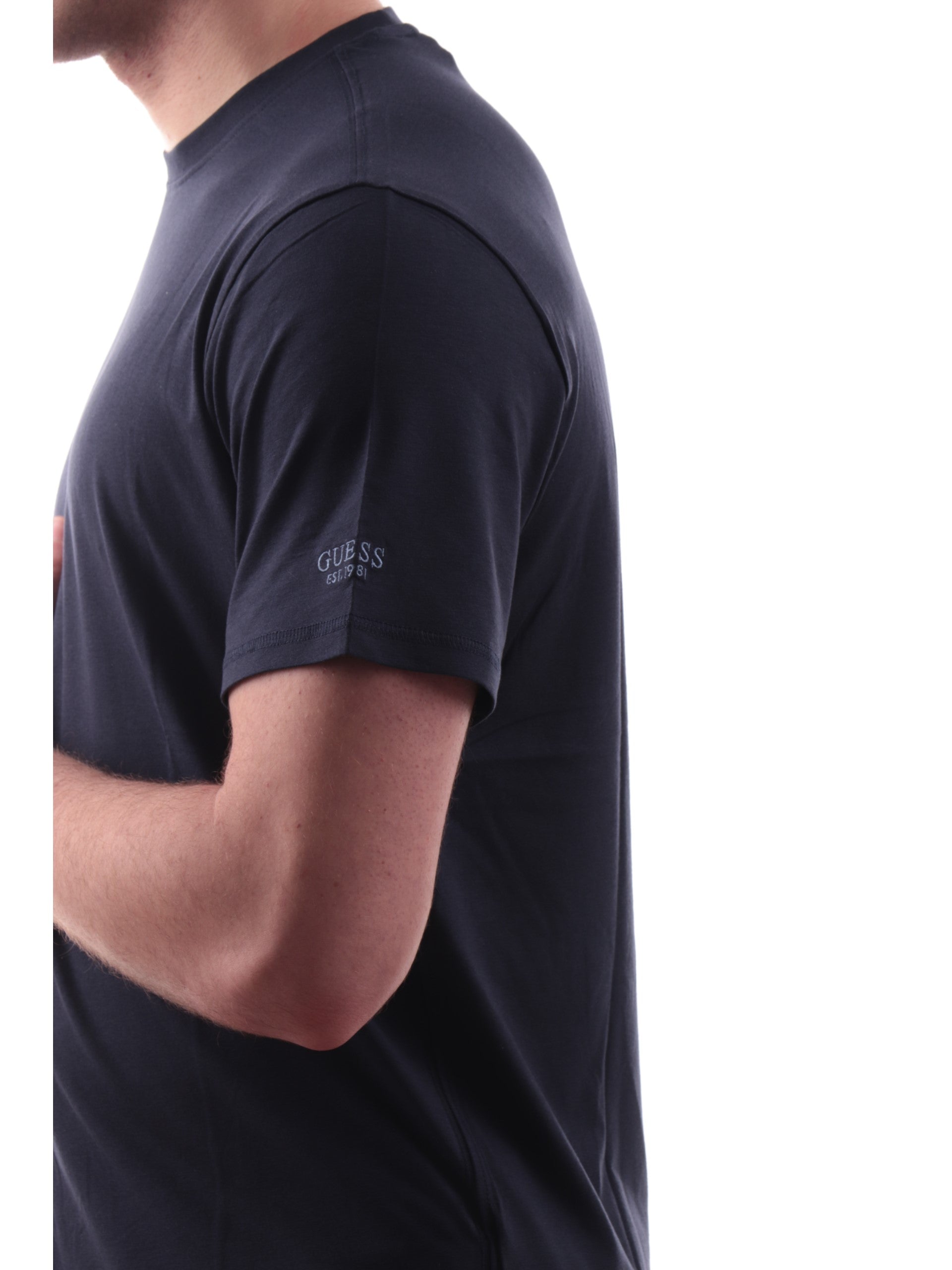 T-shirt Guess blu da uomo Logo Script Tee, realizzata in cotone. Questa maglia Guess girocollo ha le maniche corte, la vestibilità regular e il logo ricamato sulla manica sinistra. Questa T-shirt Guess da uomo è perfetta per qualsiasi outfit, può essere abbinata sia su un look elegante, casual e sportivo.