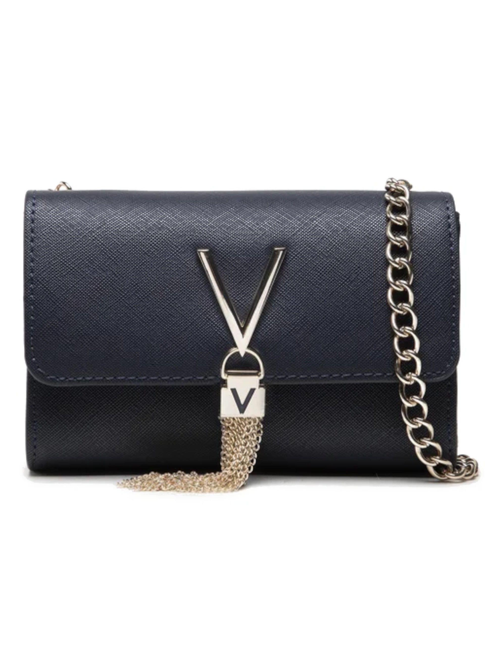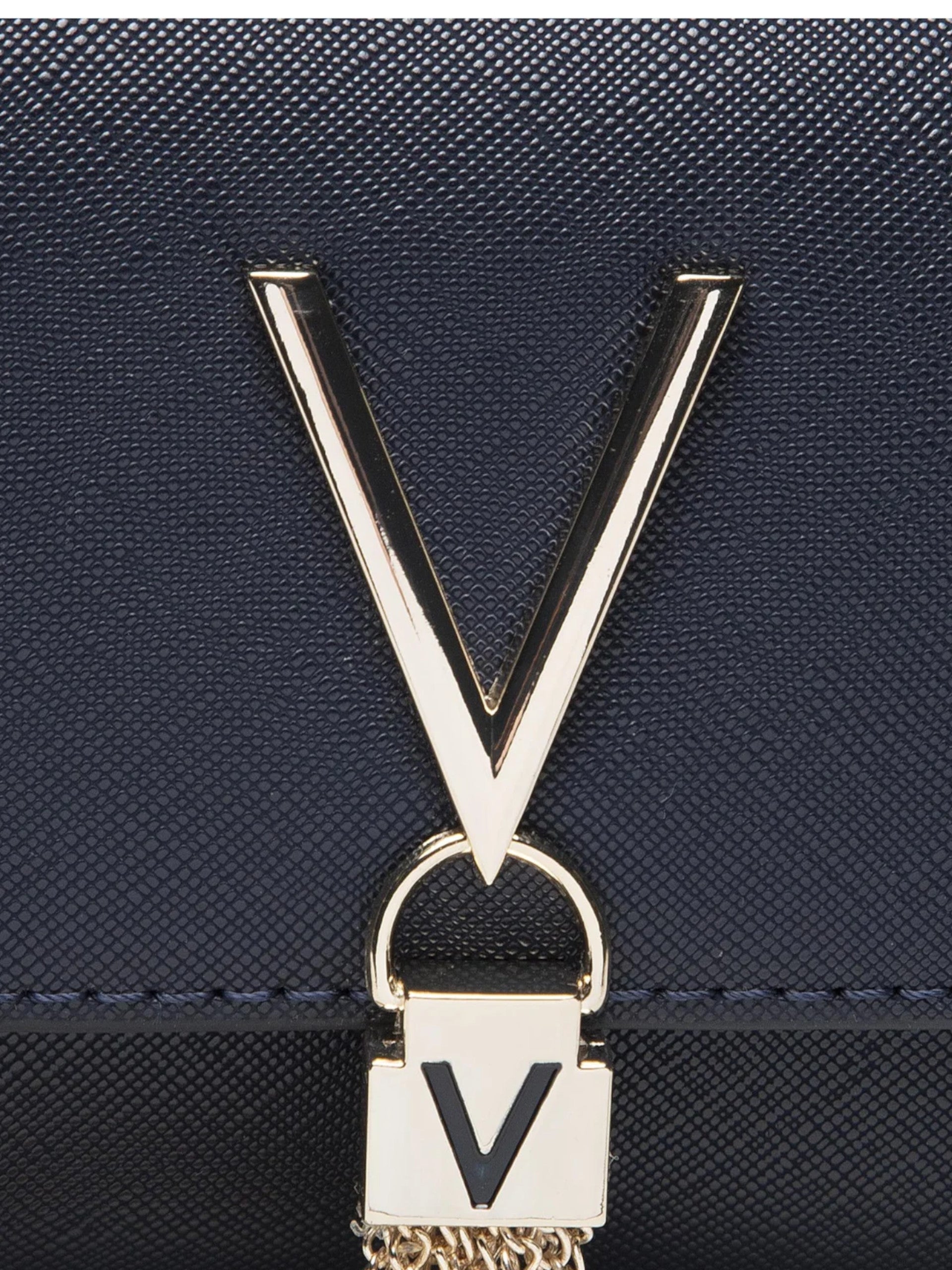 Borsa Valentino Divina Sa Small nera da donna con tracolla catenella VBS1IJ03. Questa borsa donna Valentino nera ha la tracolla con catenella, la chiusura con bottone automatico e il logo Valentino applicato sul davanti. All'interno di questa tracolla Valentino troviamo unico scomparto con due tasche interne (una con zip ed una aperta).