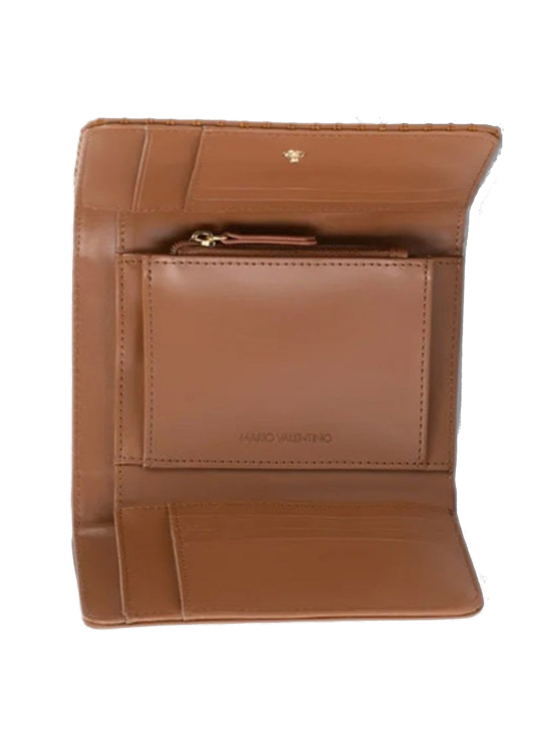 Portafoglio Valentino marrone da donna Ersa cuoio. Questo portafoglio Valentino marrone ha la chiusura con bottone e il logo del brand applicato sul davanti. All'interno di questo portafoglio donna Valentino troviamo un unico scomparto per monete, uno scomparto per le banconote e dieci tasche per tessere e documenti