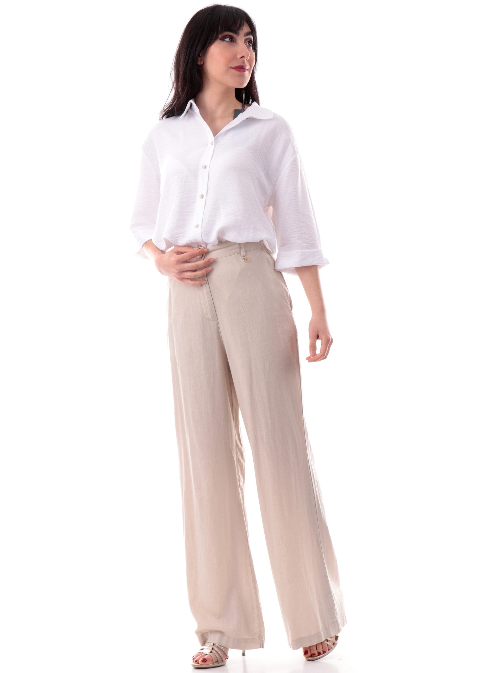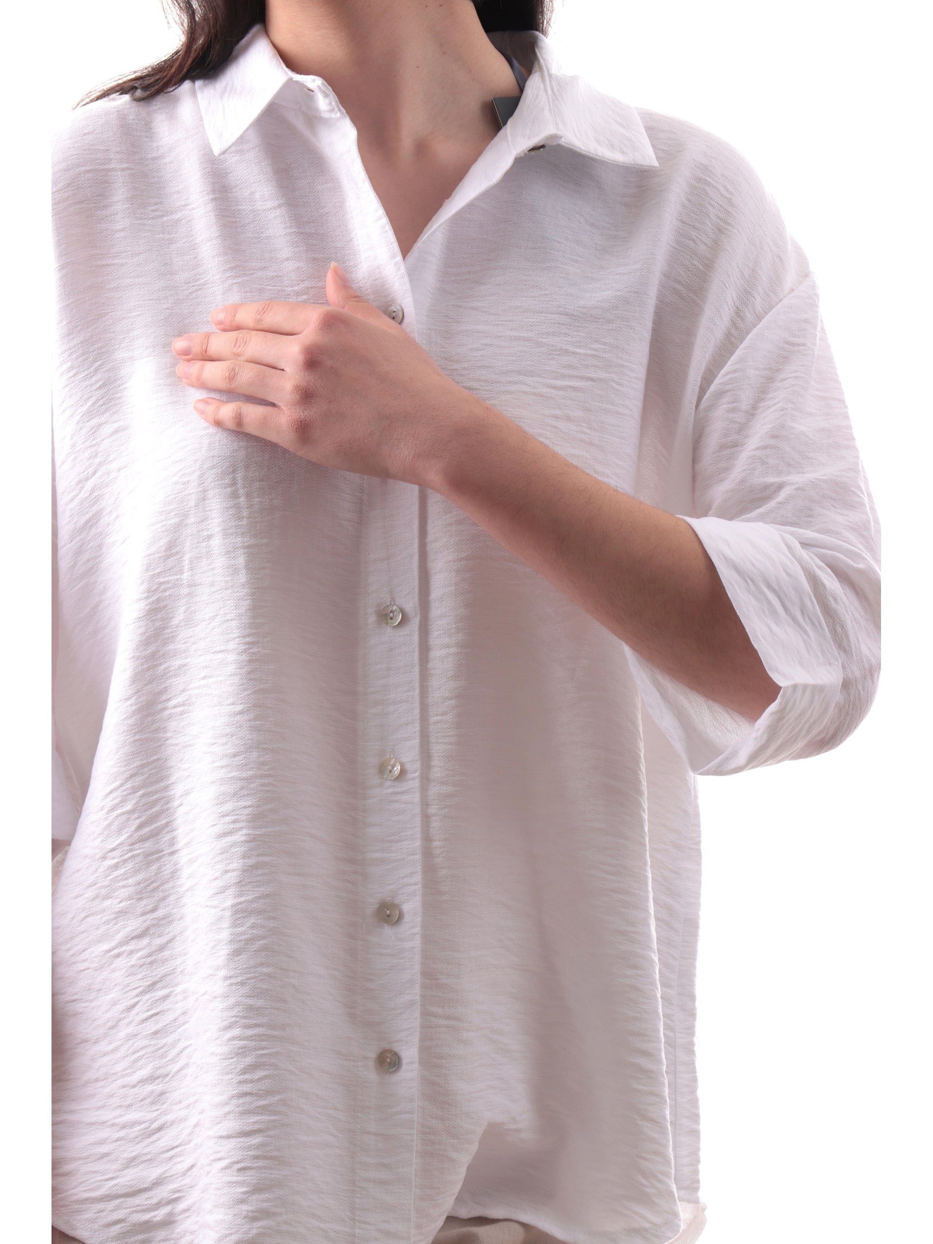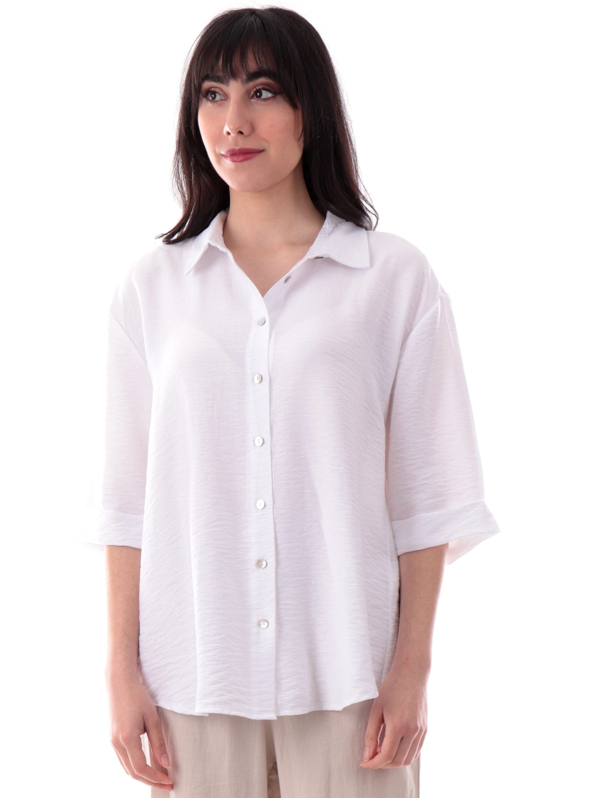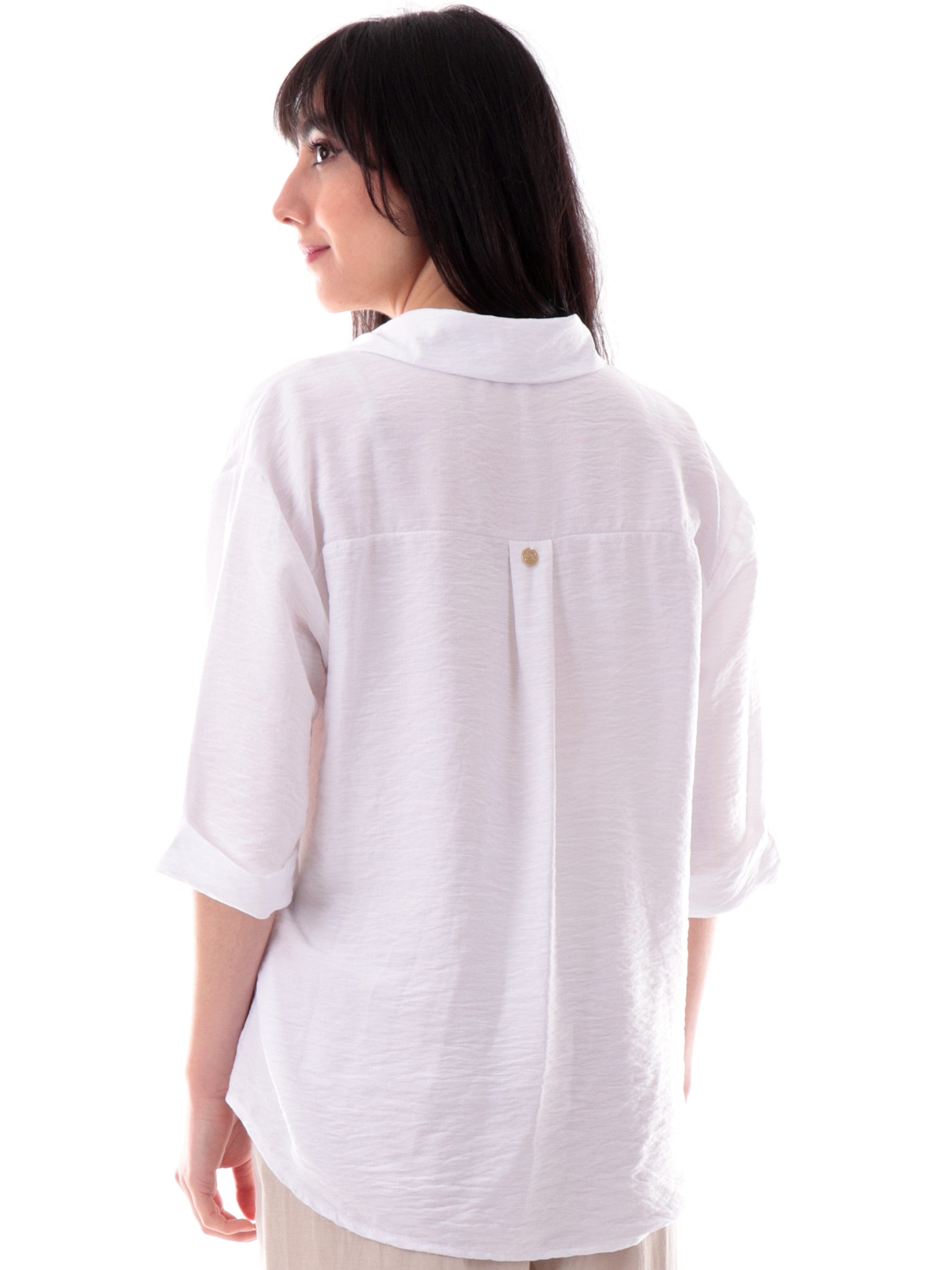 Camicia Yes Zee bianca da donna maniche corte con risvolto C210YV00, realizzata in morbida viscosa. Questa camicia donna Yes Zee bianca ha il colletto alla francese, la chiusura con bottoni, le maniche corte con risvolto ed è stata realizzata in tessuto morbido e leggero perfetto per l'estate.