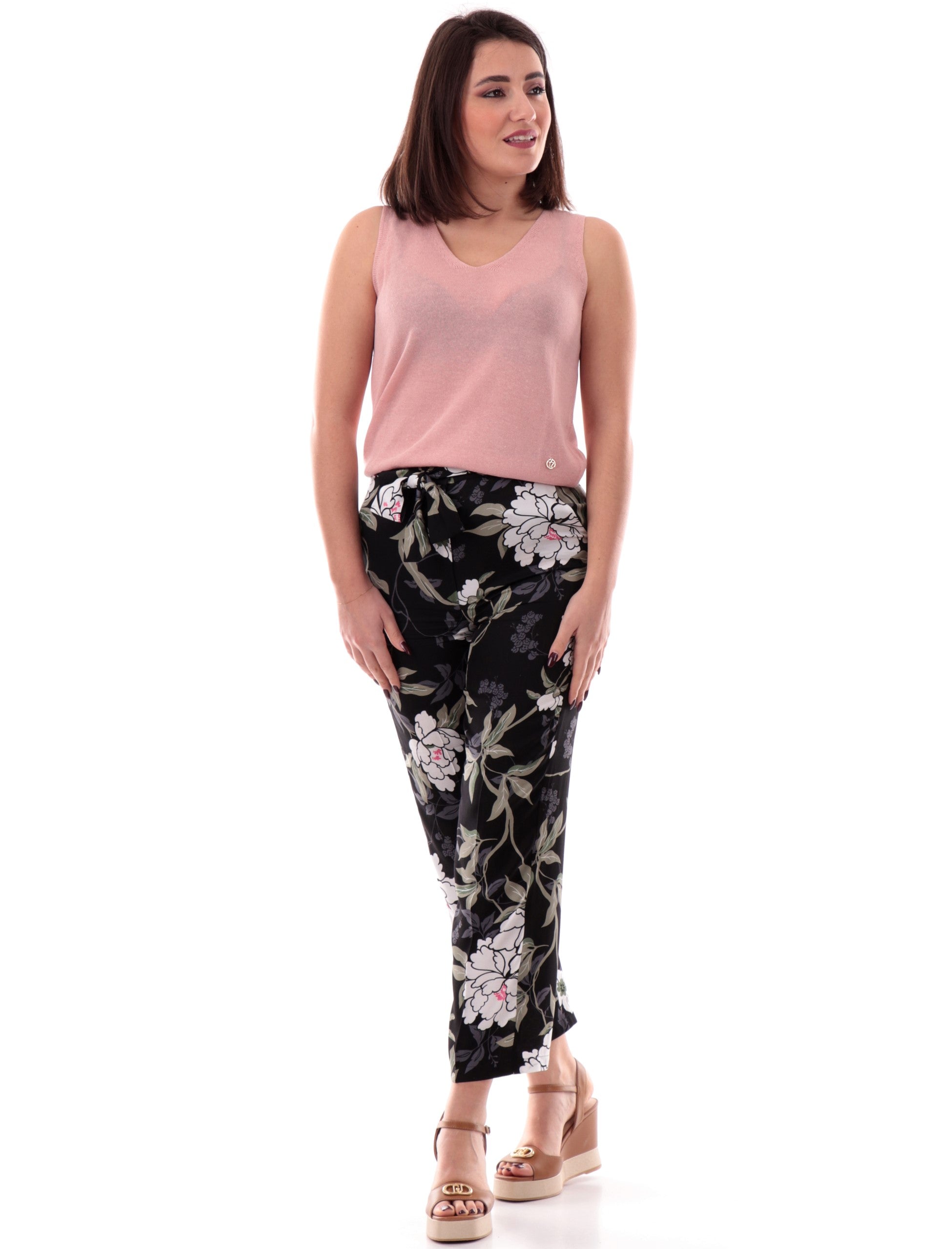 Canotta lino Yes Zee rosa da donna scollo a V M232HF00. Questo top Yes Zee rosa ha lo scollo a V, la vestibilità morbida e il logo del brand applicato sul fondo.