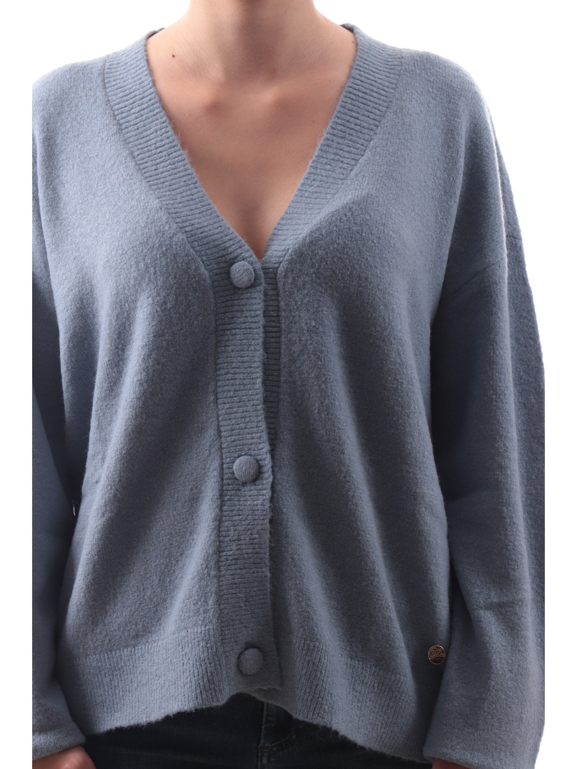 Cardigan Yes Zee celeste da donna con bottoni M004BT00. Questo maglione donna Yes Zee celeste ha la chiusura con bottoni, lo scollo a V, la vestibilità morbida, polsini e fondo elasticizzati.