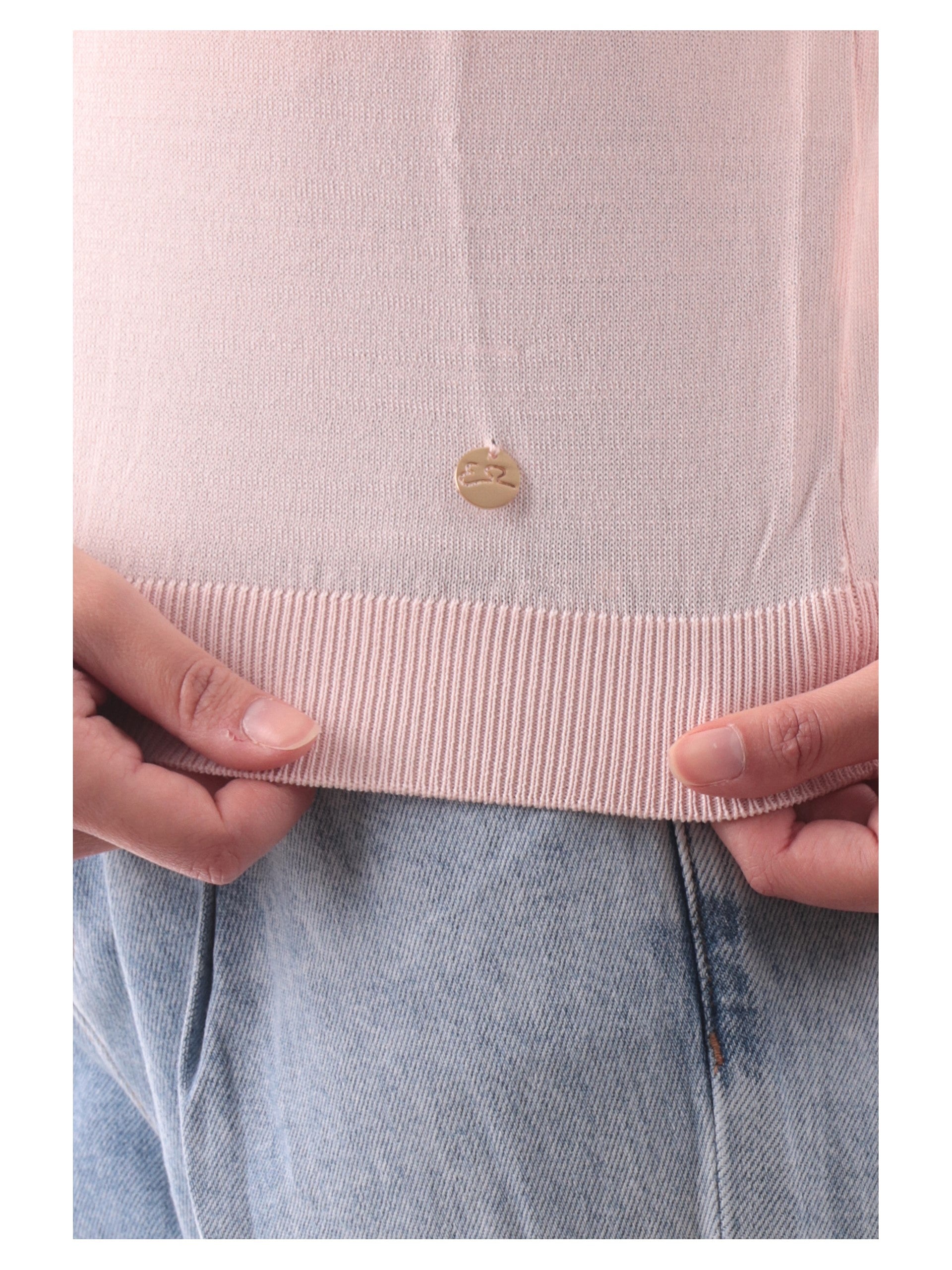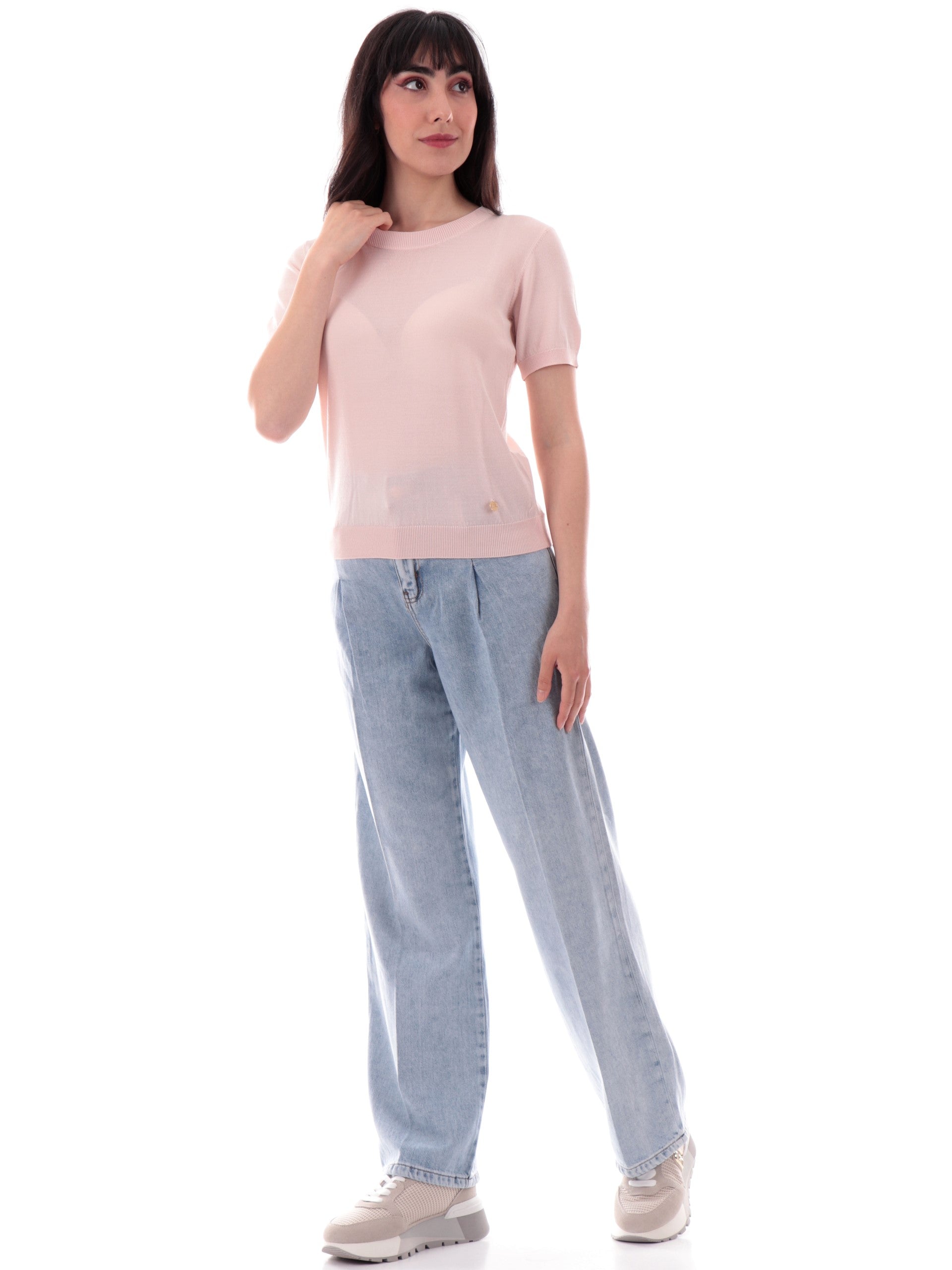 T-shirt girocollo Yes Zee rosa da donna tessuto in maglia M230LG00