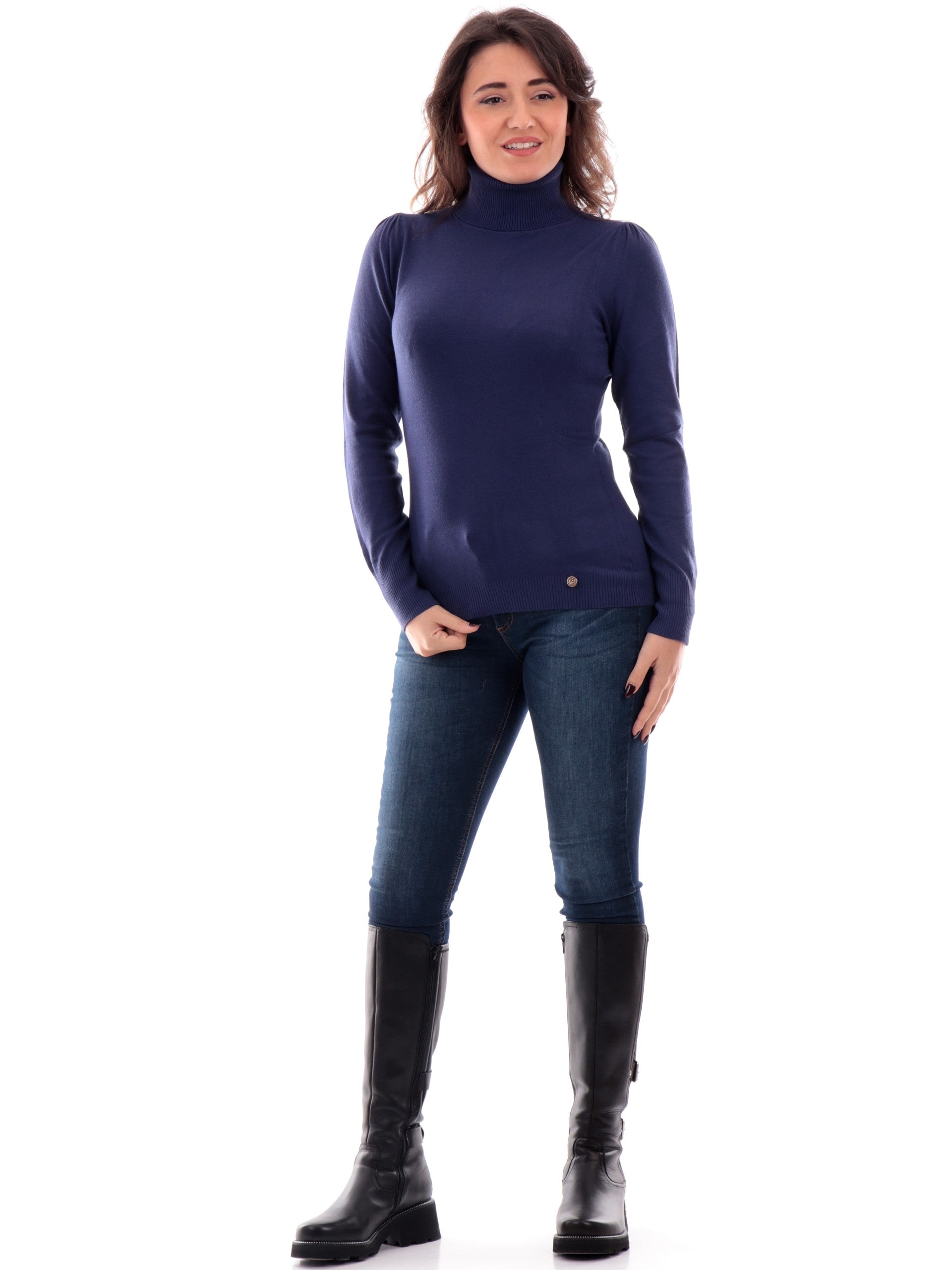 Maglione Dolcevita Blu da Donna a Collo Alto M038RU000-710