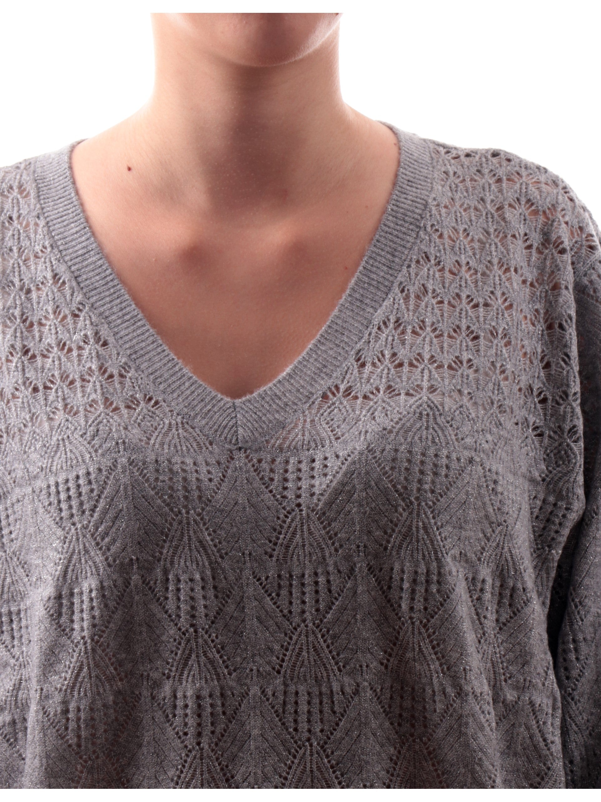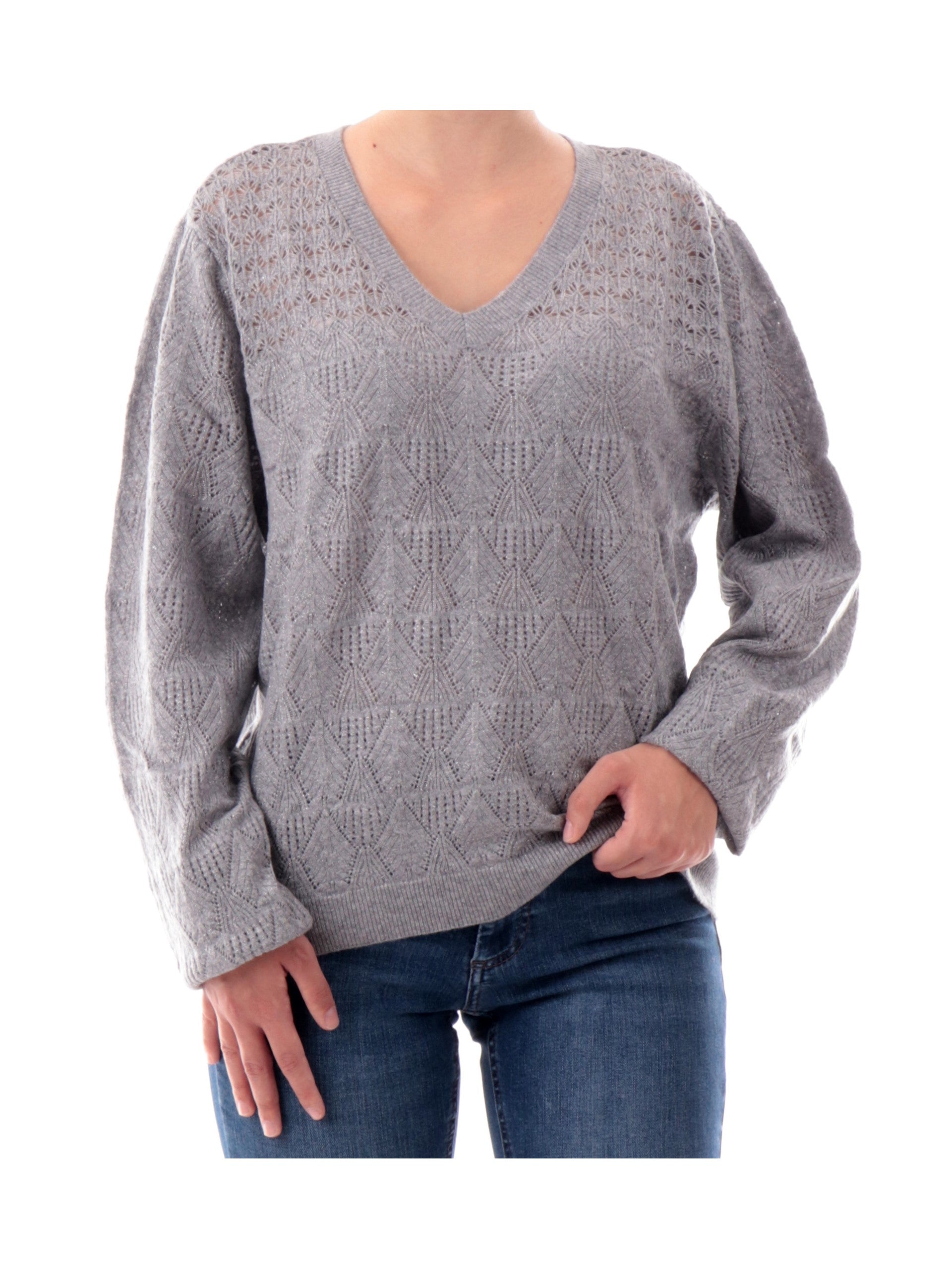 Maglione Yes Zee grigio in lurex da donna scollo a V M019IQ00. Questo maglione donna Yes Zee grigio ha lo scollo a V, polsini e fondo elasticizzati.