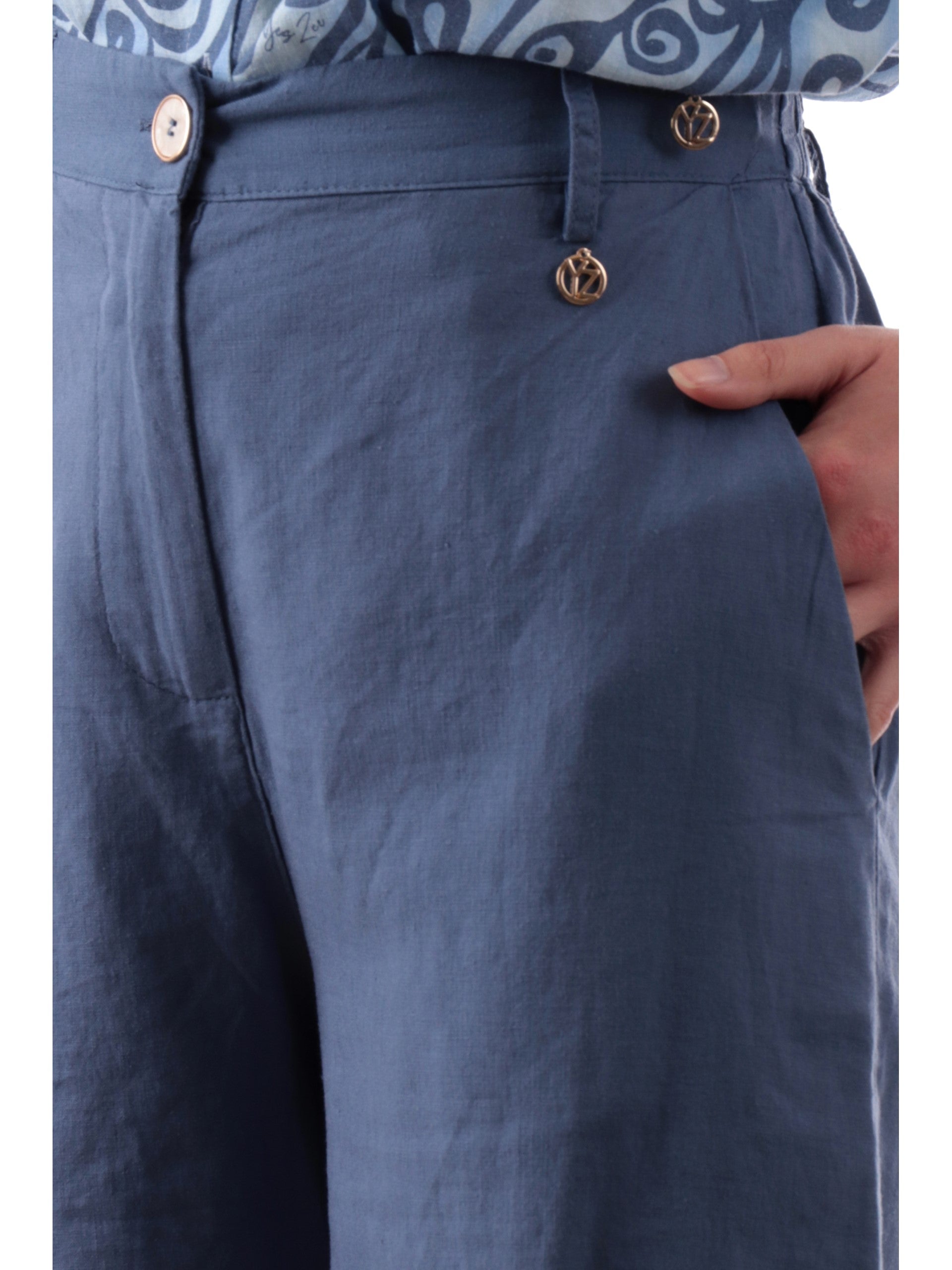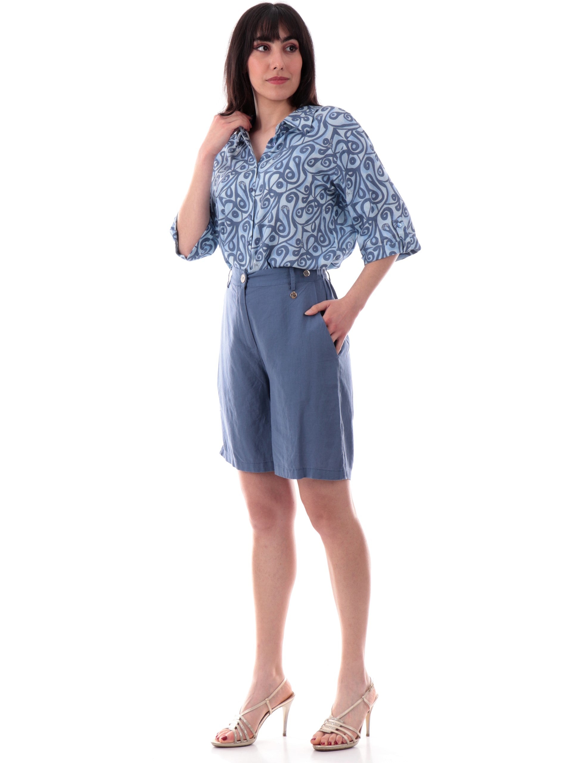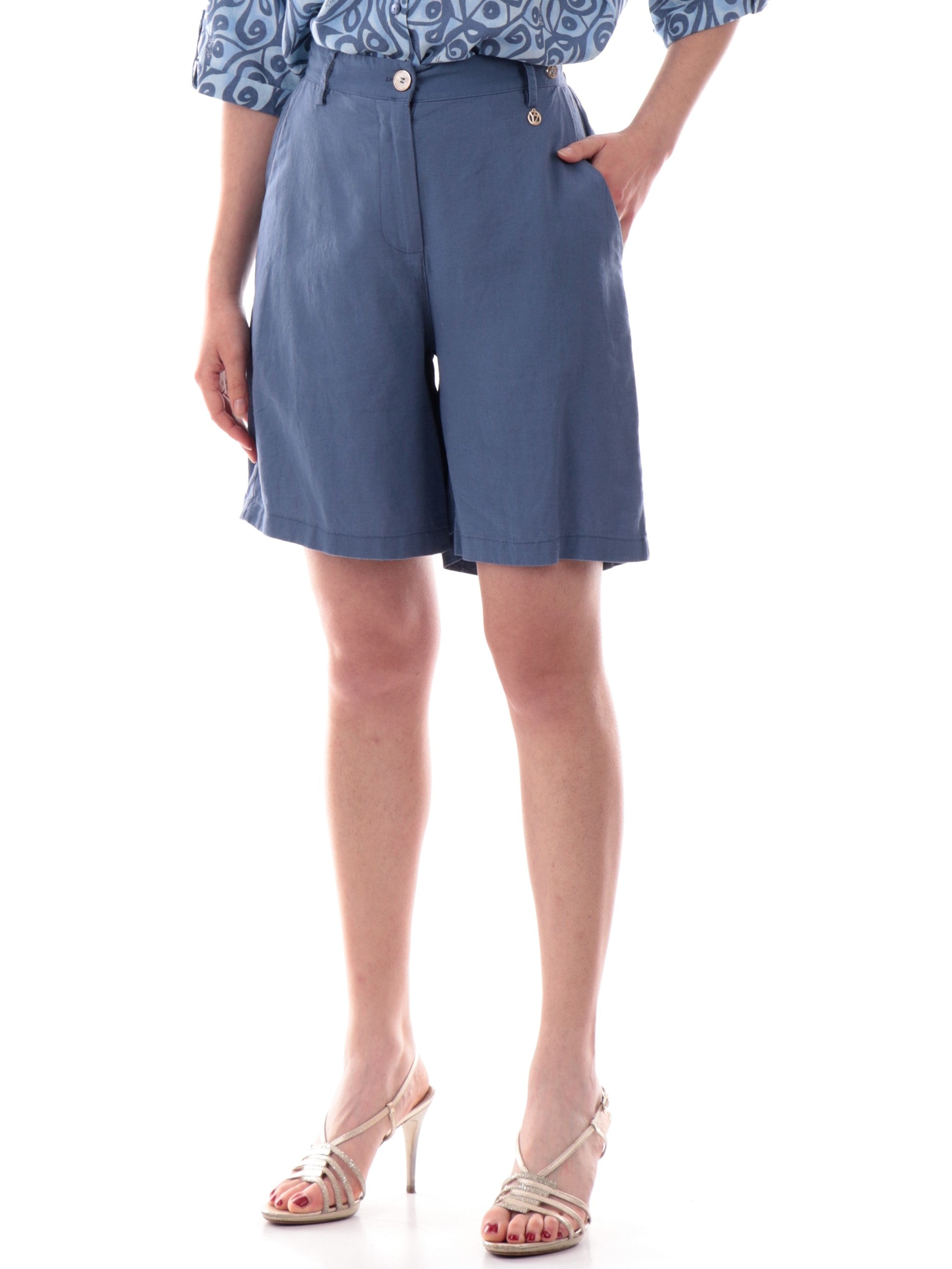 Bermuda lino Yes Zee blu da donna con banda elastica P247V600