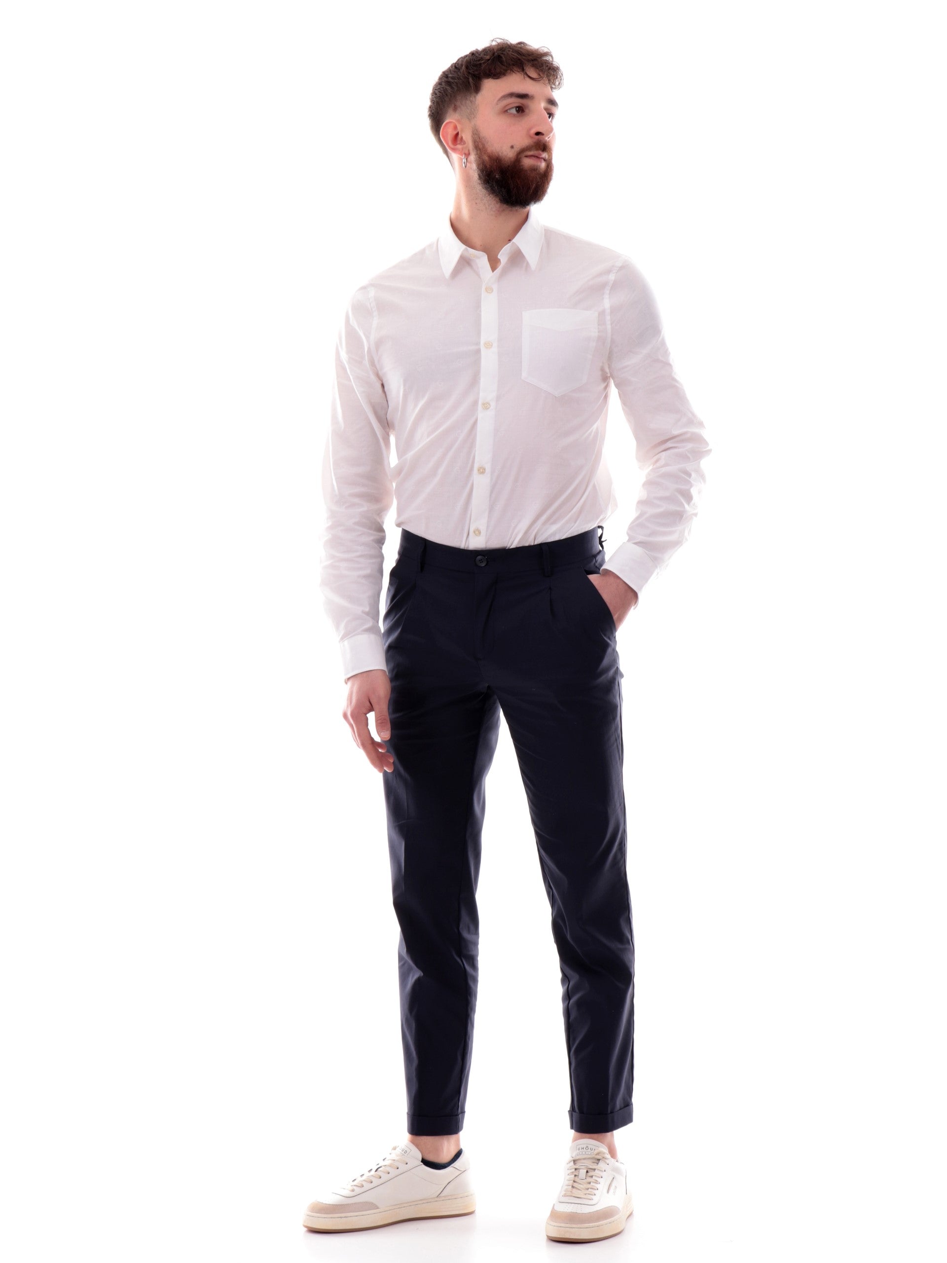 Pantaloni eleganti Chinos Yes Zee blu da uomo con risvolto P660KD00