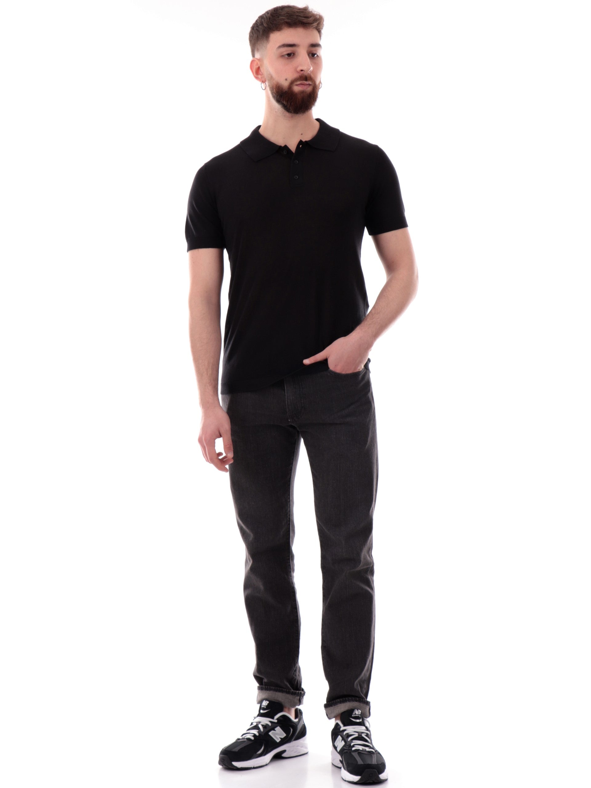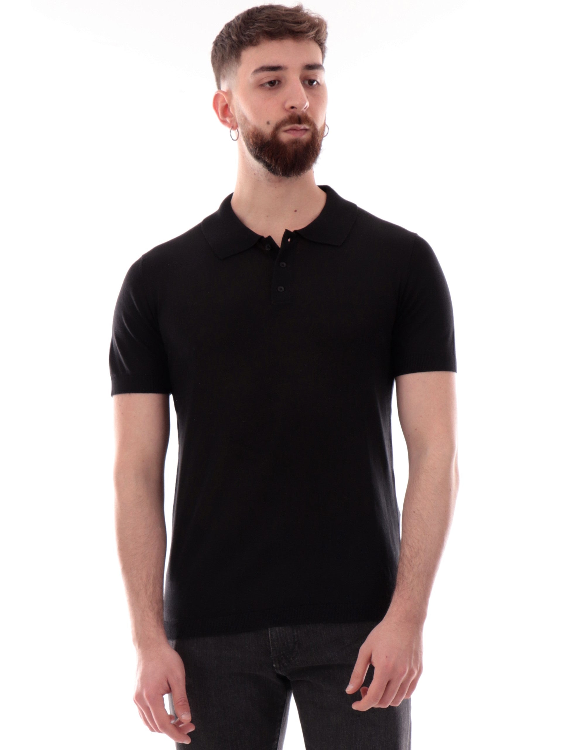 Polo Yes Zee maniche corte nera da uomo logo ricamato M718DH00