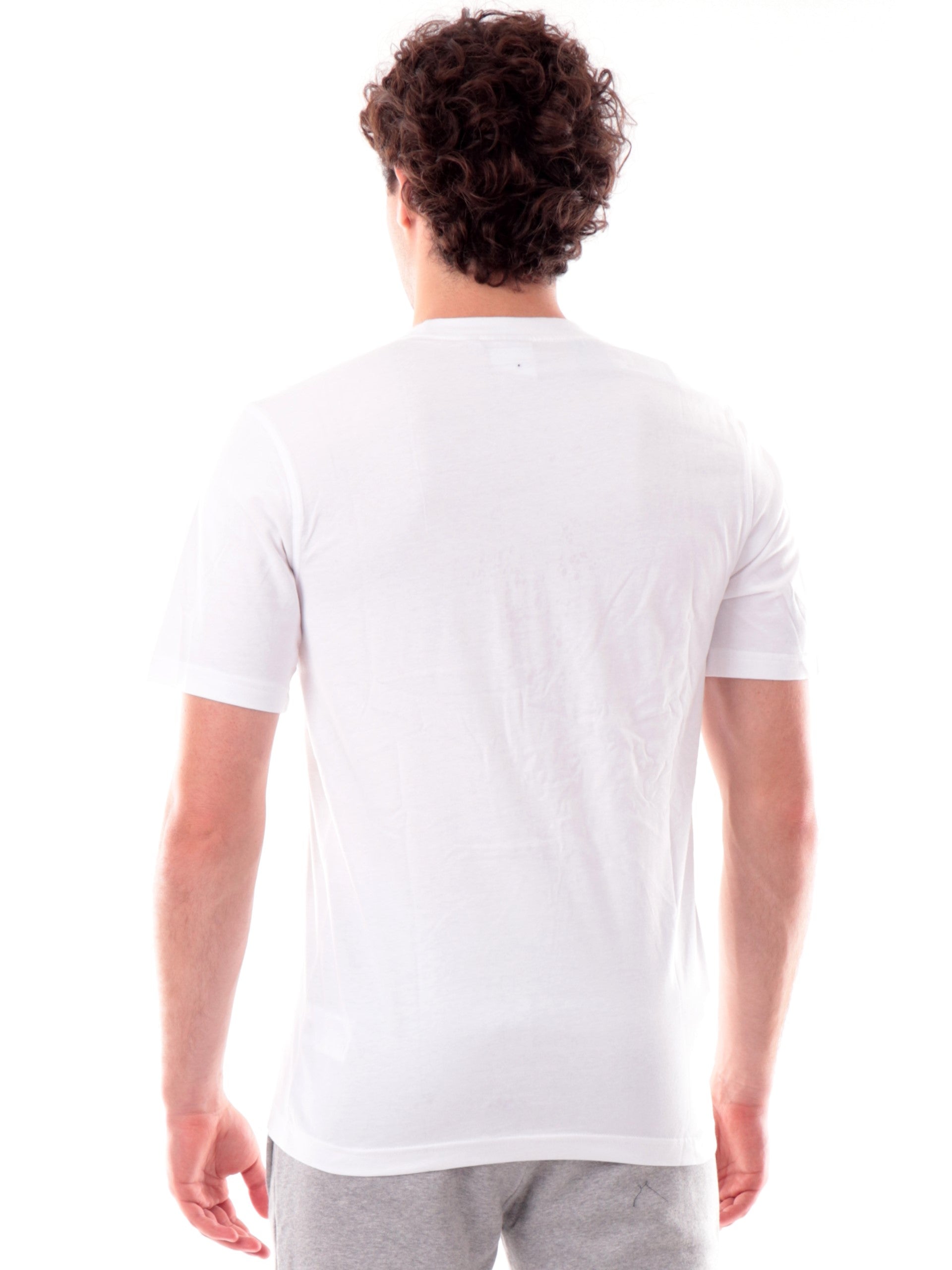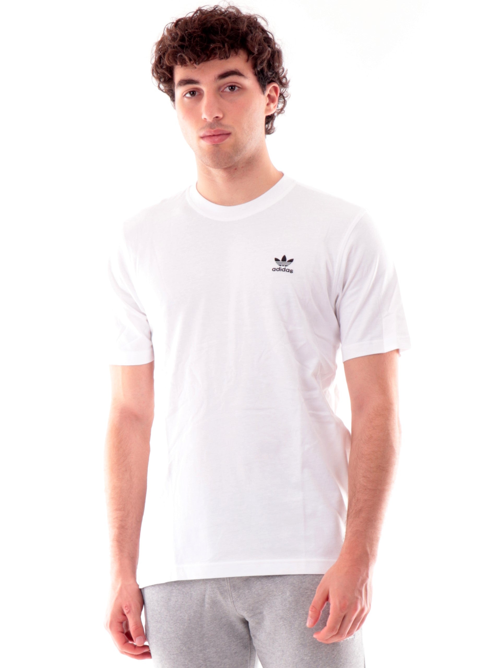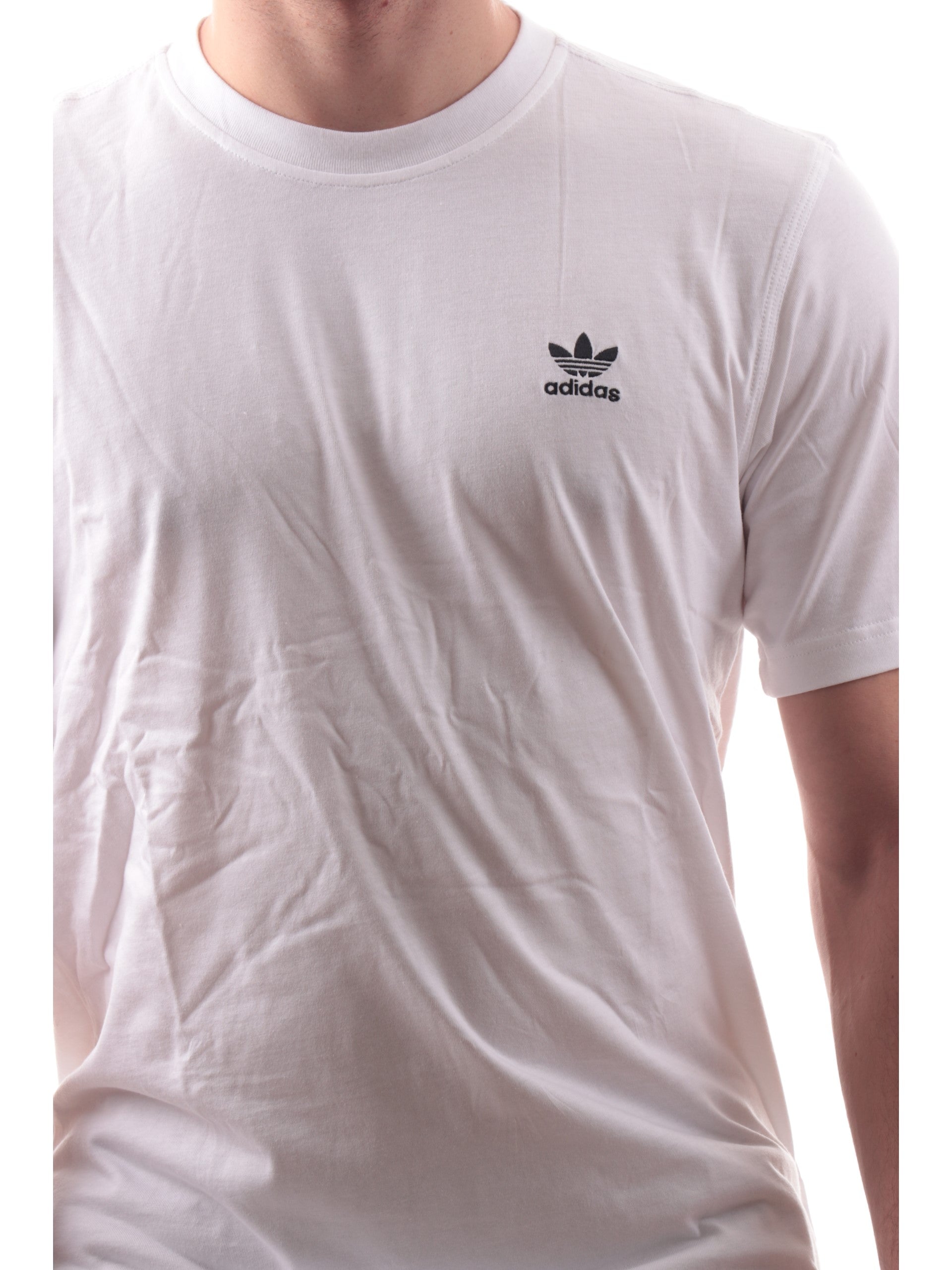 Maglia Adidas bianca da uomo girocollo logo Adidas ricamato JI8544, realizzata in 100% cotone. Questa t-shirt Adidas bianca girocollo ha le maniche corte e il logo Adidas ricamato lato cuore.