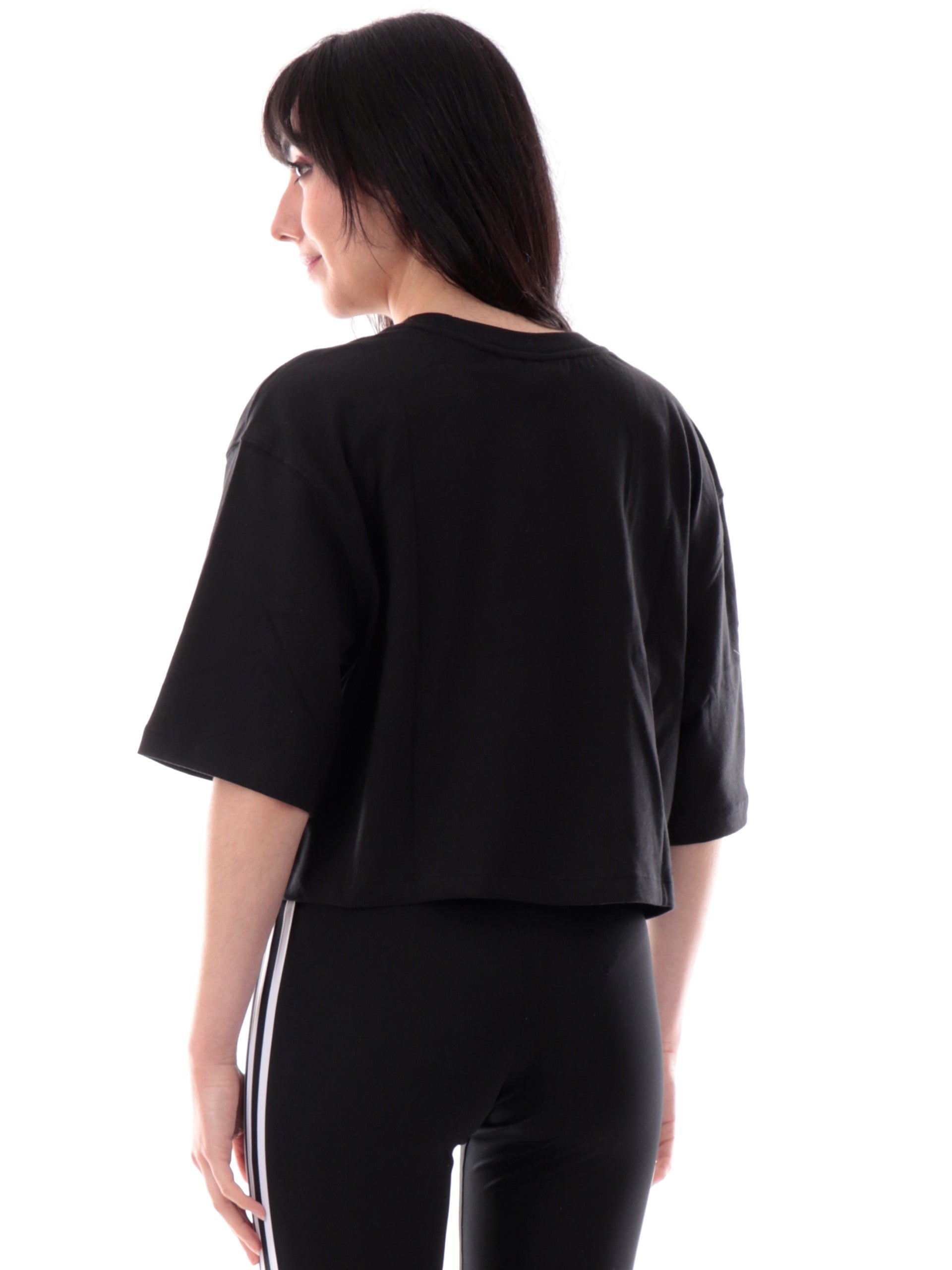 T-shirt Adidas crop nera da donna con trifoil IW5706