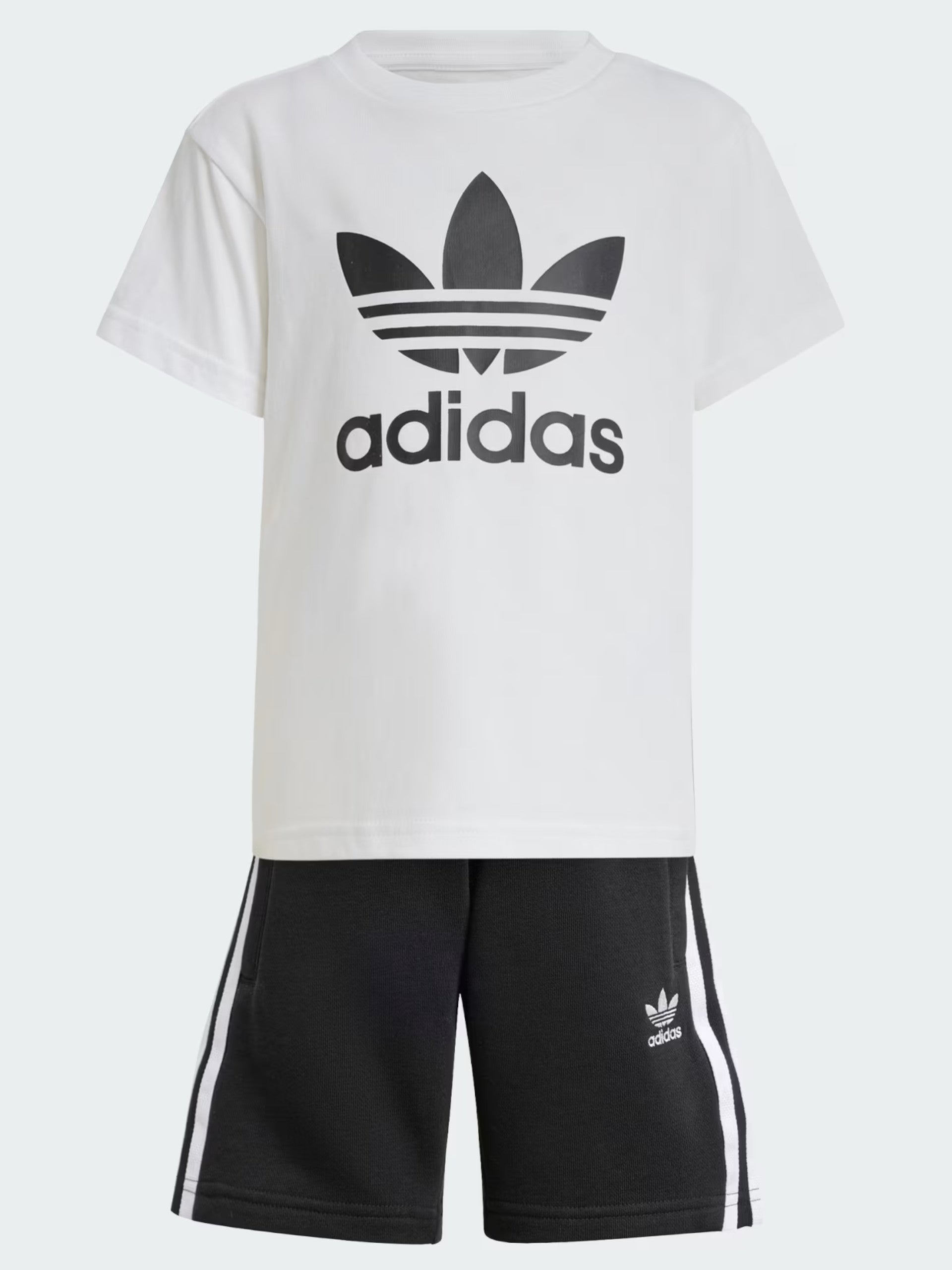 Completo Adidas bianco e nero da bambino con bermuda Originals JE1613