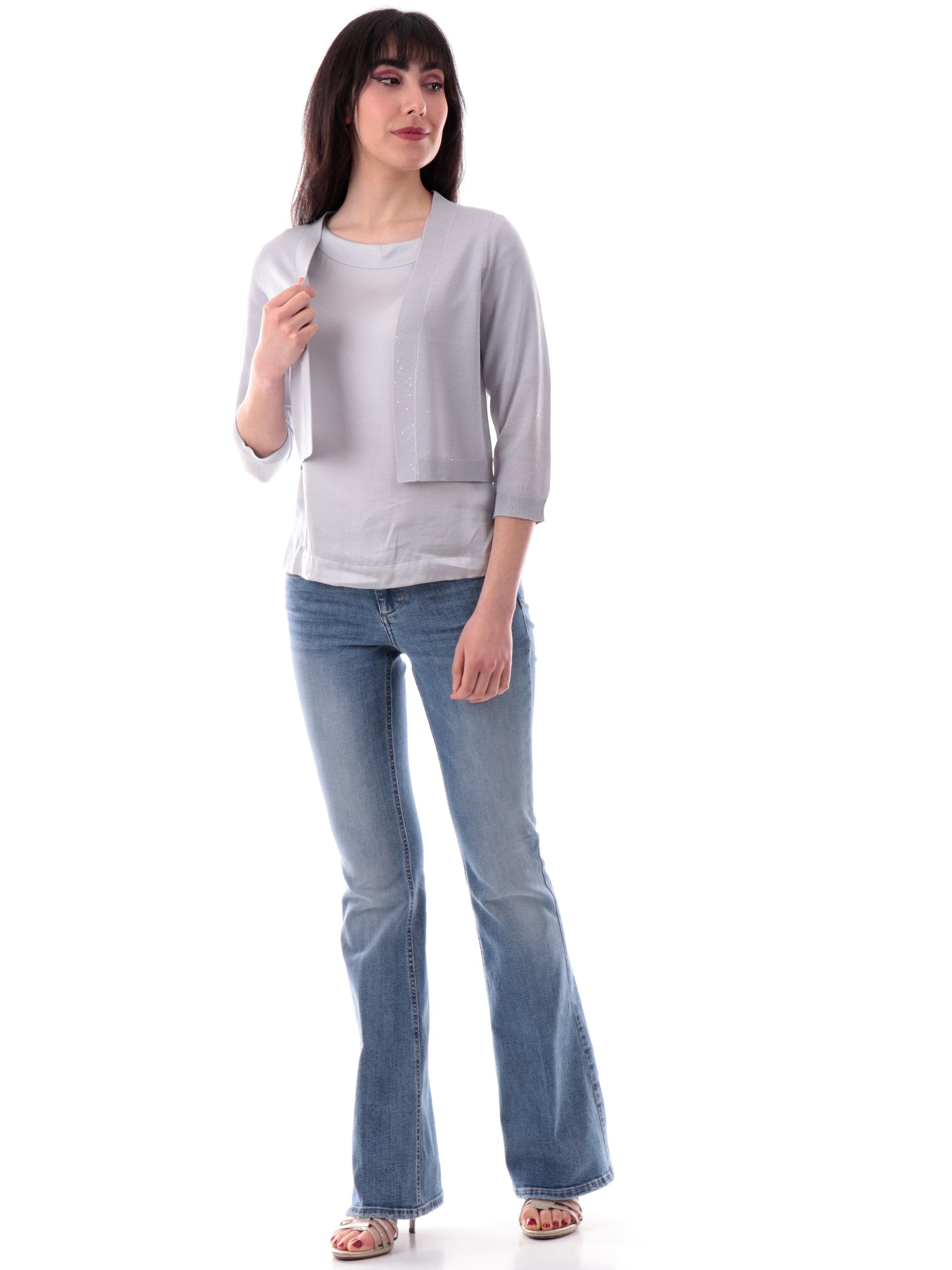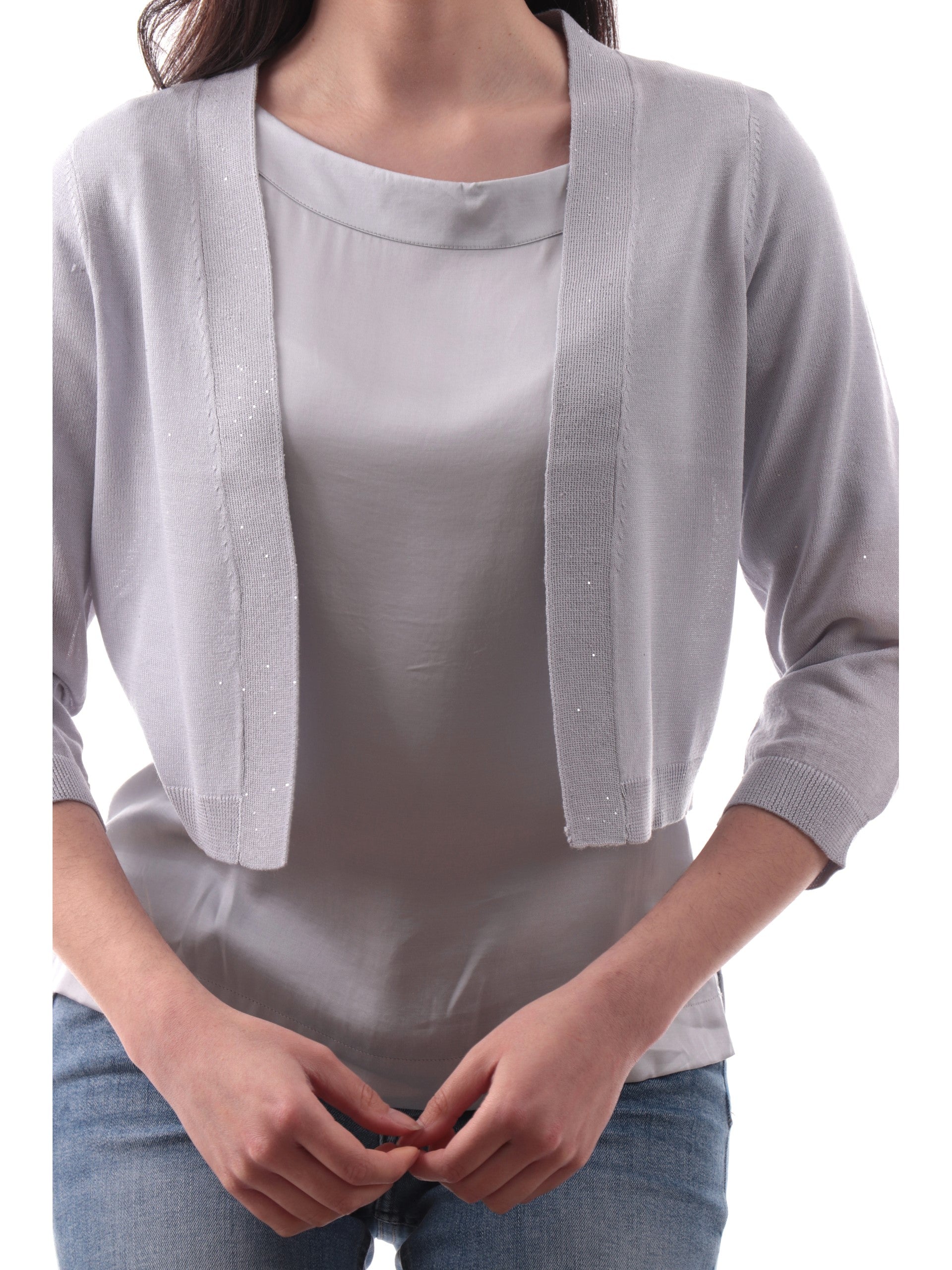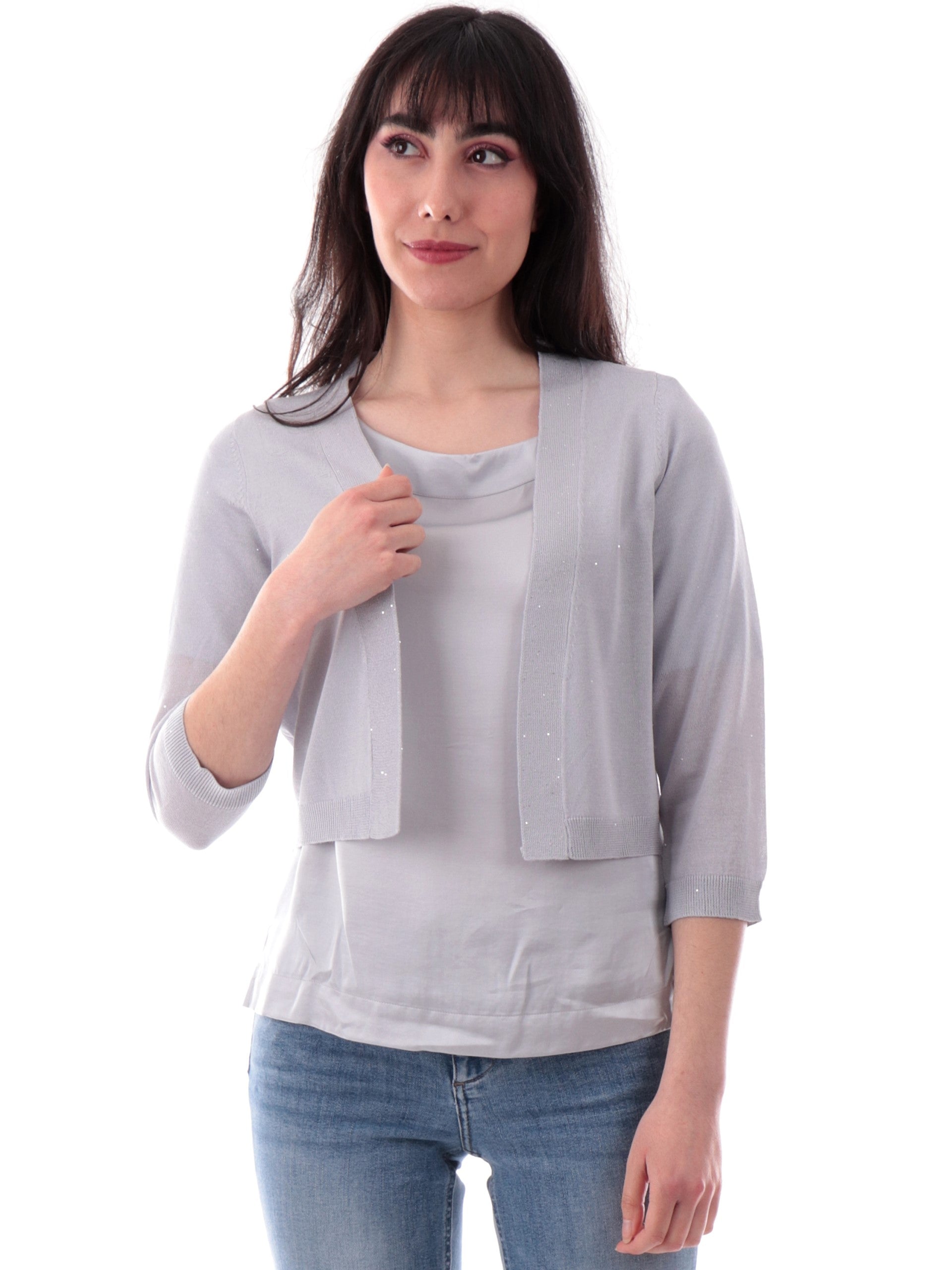 Coprispalle Anis celeste con paillettes da donna maniche tre quarti 251W4004