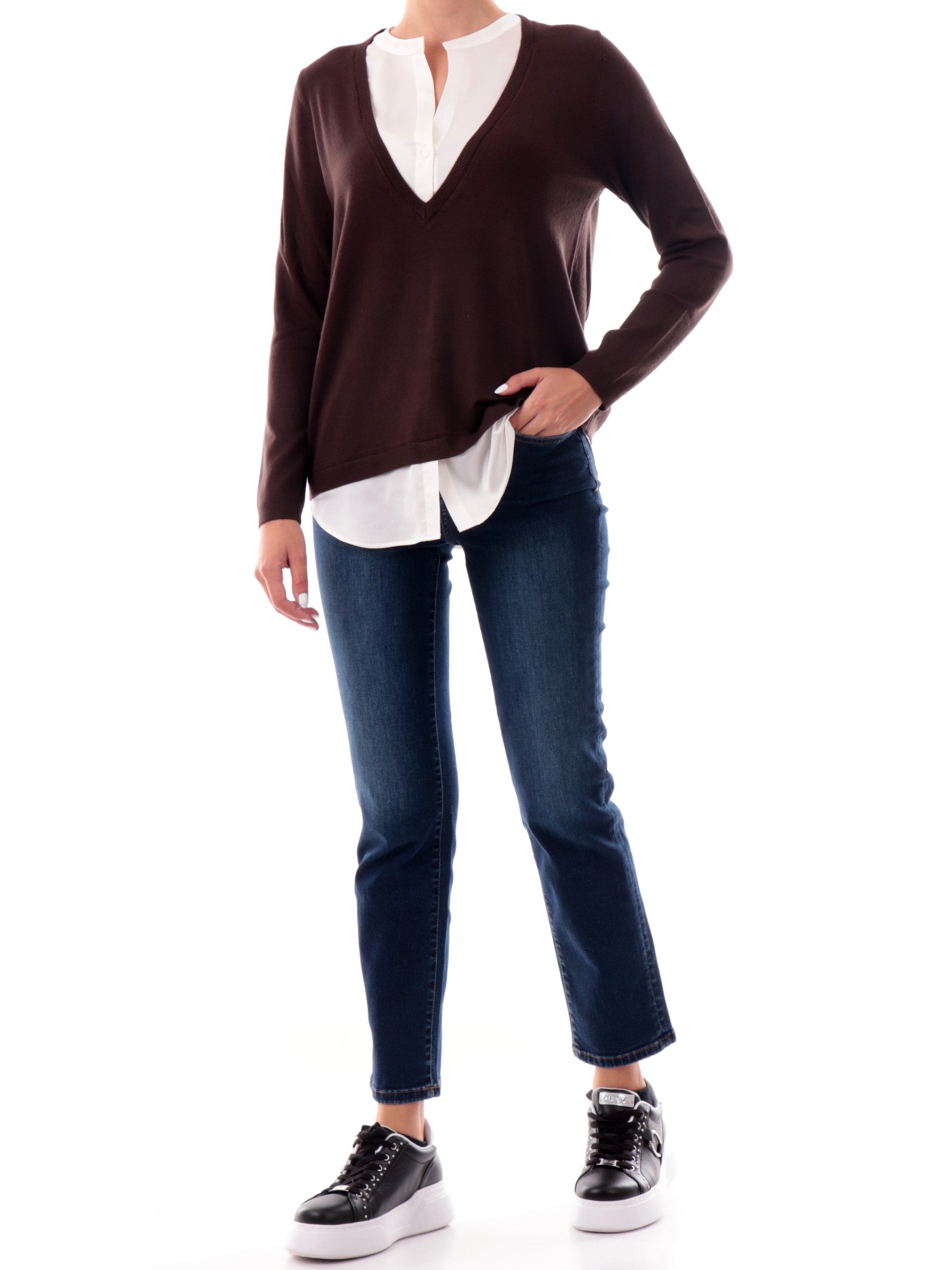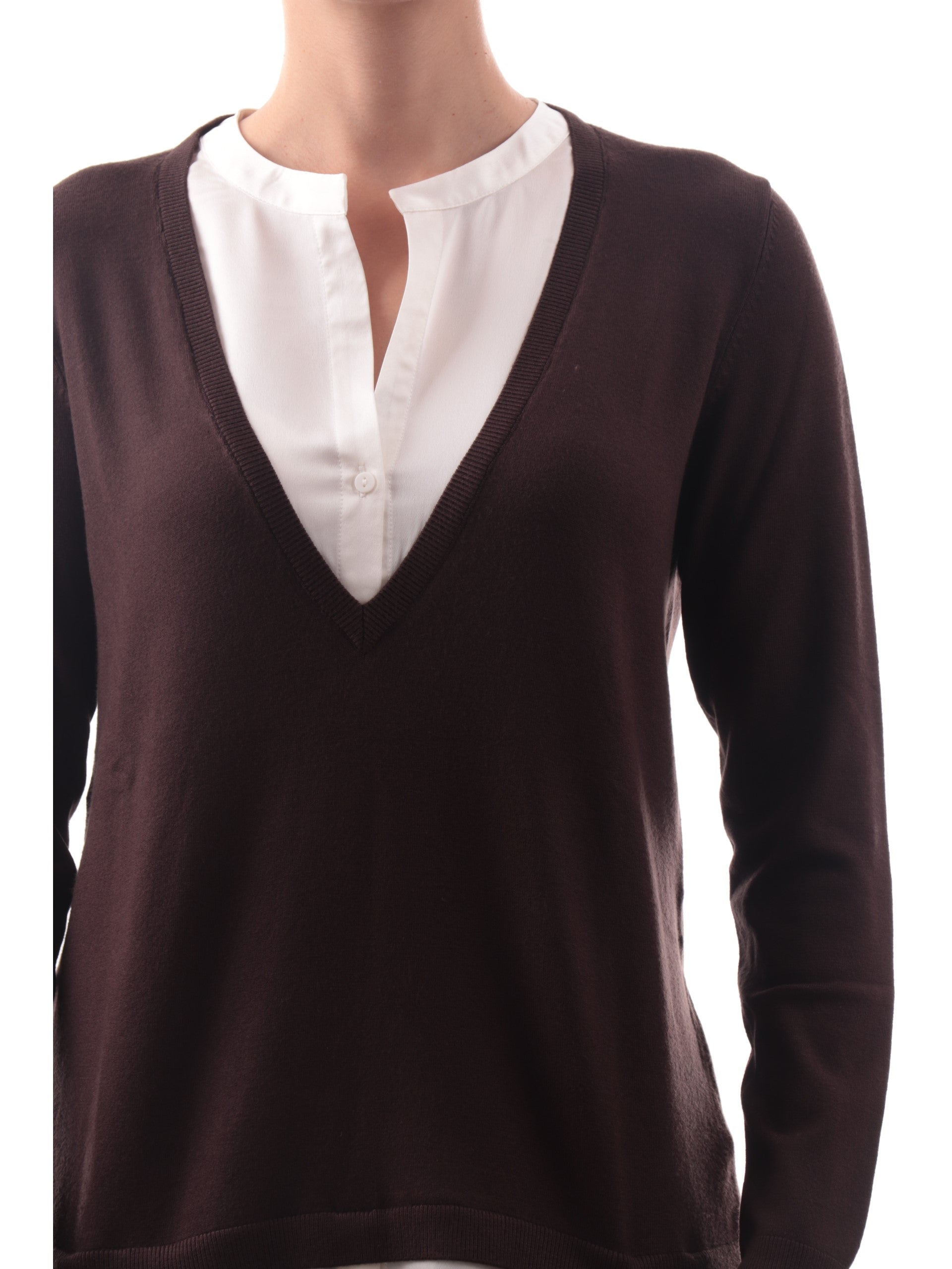 Maglione Anis marrone da donna inserto serafino 255W1000