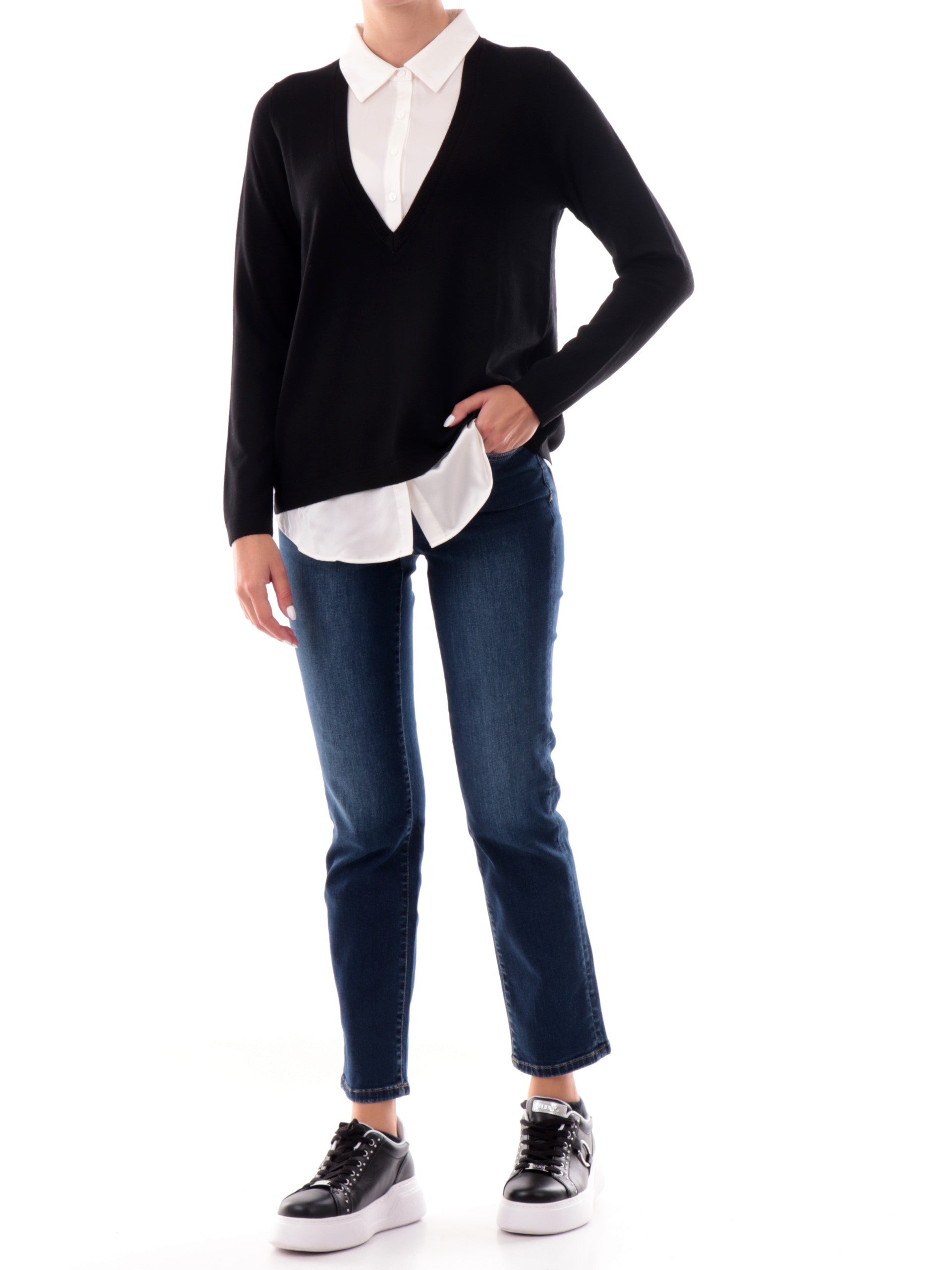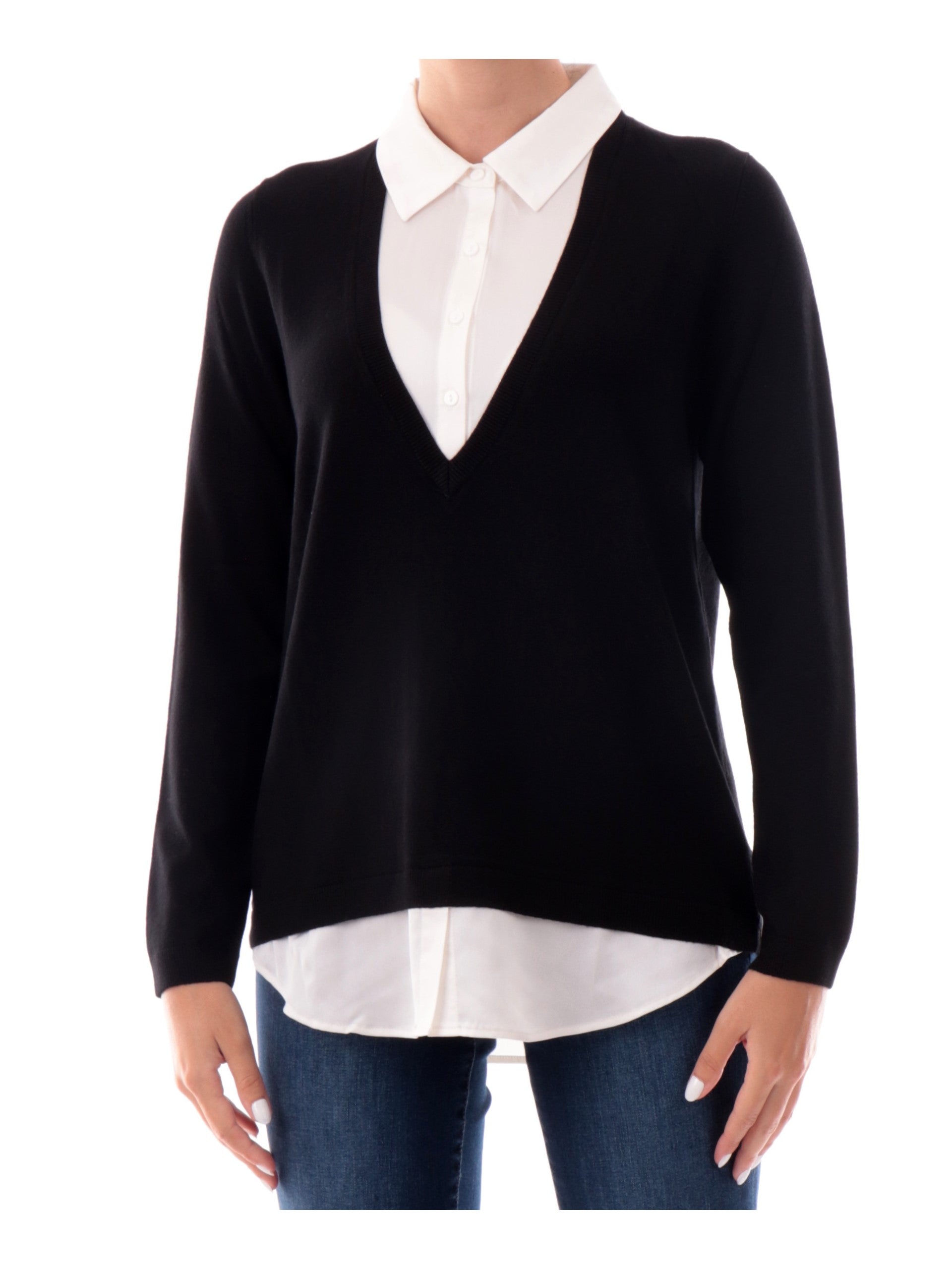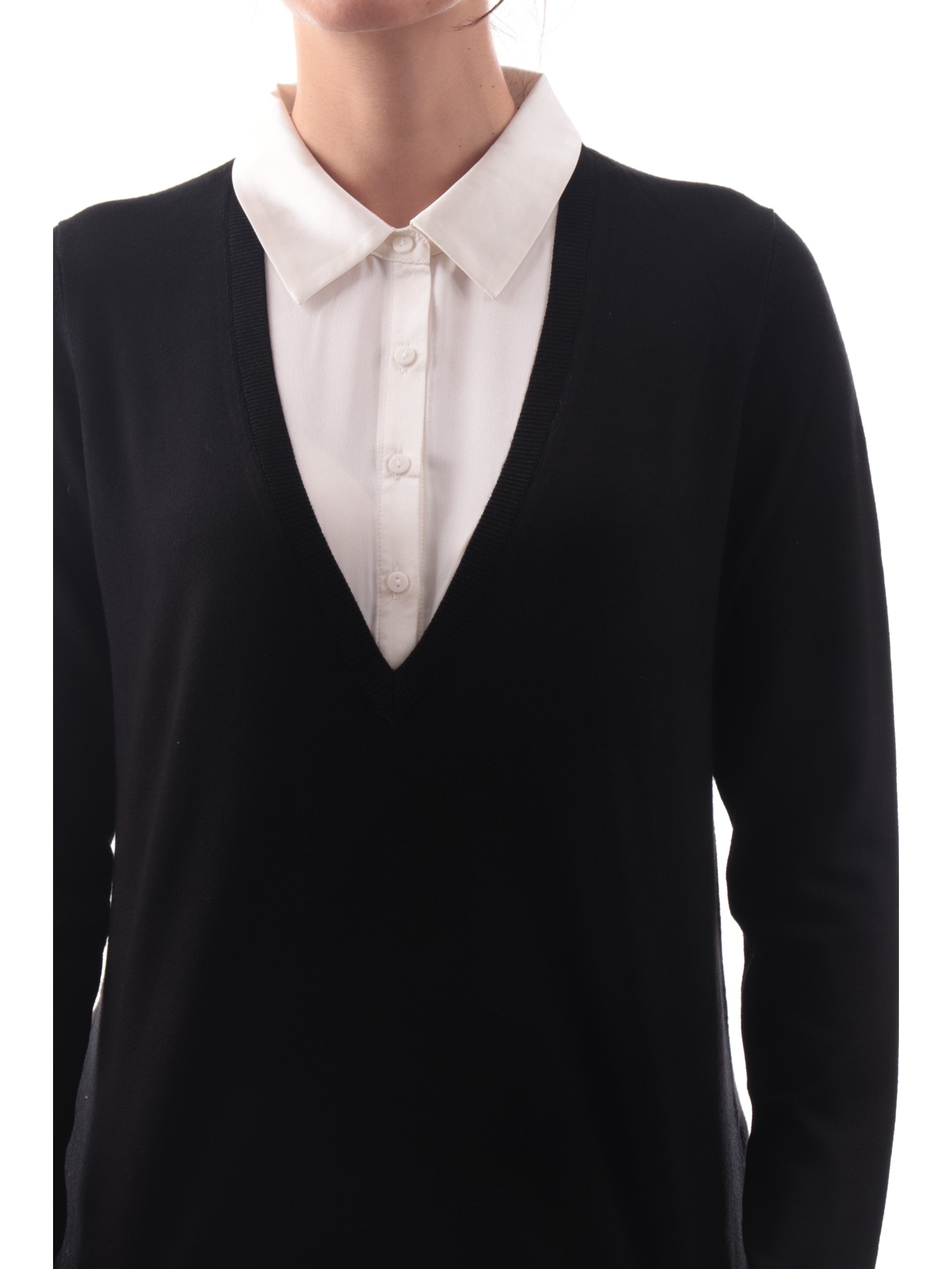 Maglione Anis nero da donna inserto camicia raso 255W1001